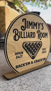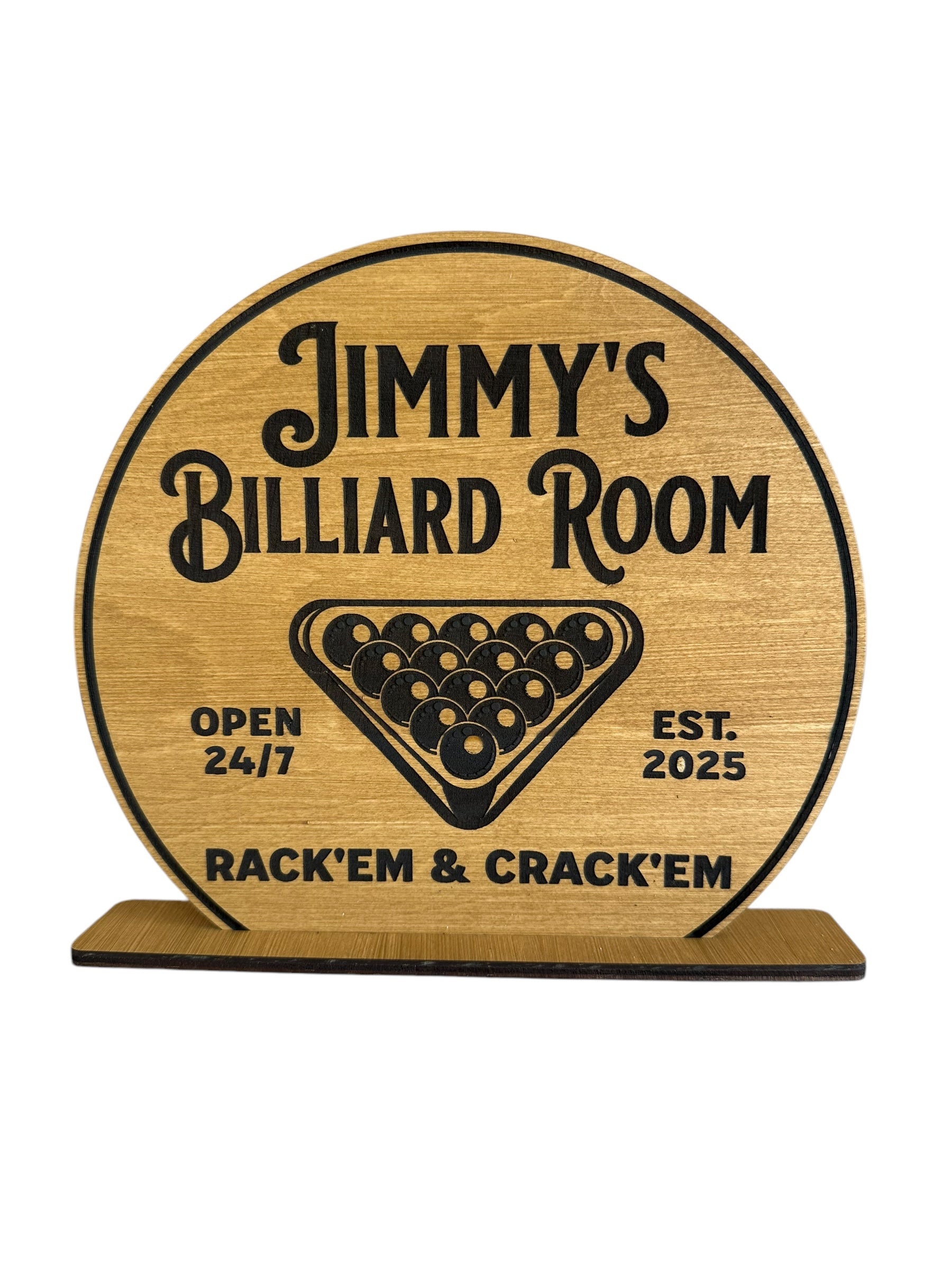 Perfect for welcoming friends to your game space, this round self-standing Billiard Room sign is fully customizable with your family’s last name or a unique phrase. Crafted from 100% real birch wood, it adds character and personality to any pool hall, man cave, or entertainment area. Whether it’s a centerpiece for your own game room or a thoughtful gift for the billiards lover in your life, this durable and stylish piece is made to stand proudly on its own—a timeless touch for any space where good games and great memories are made.