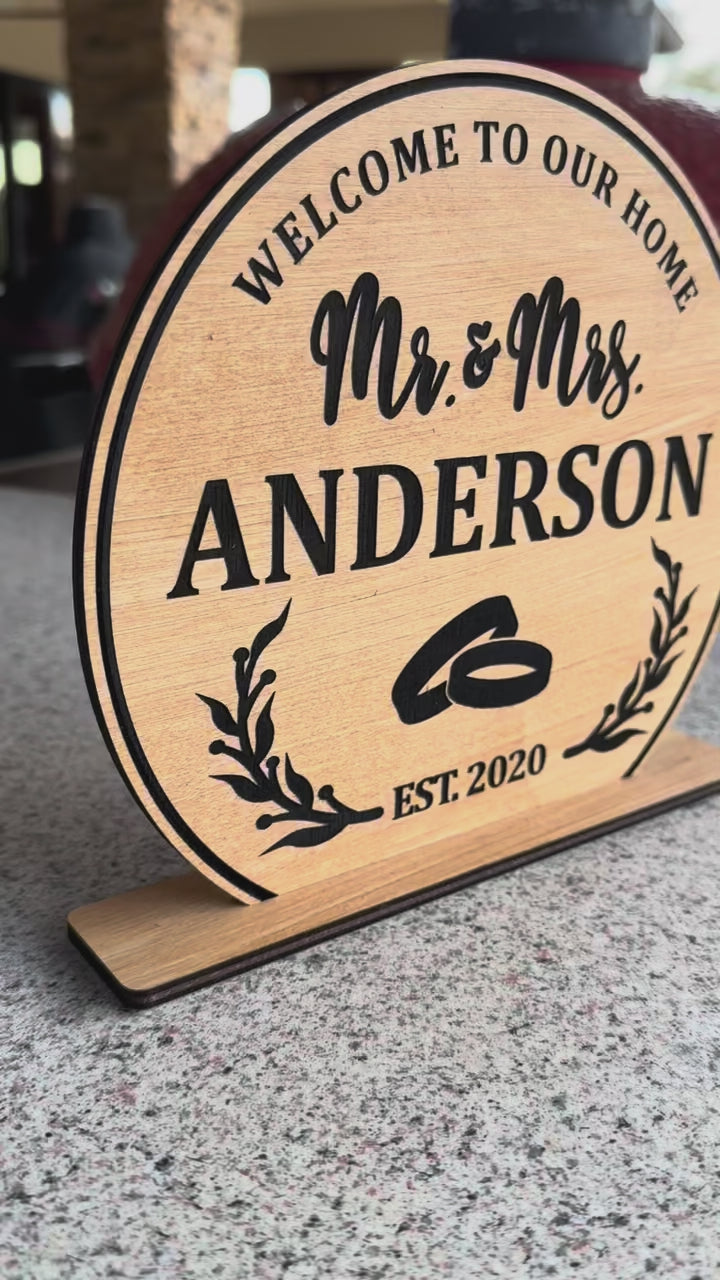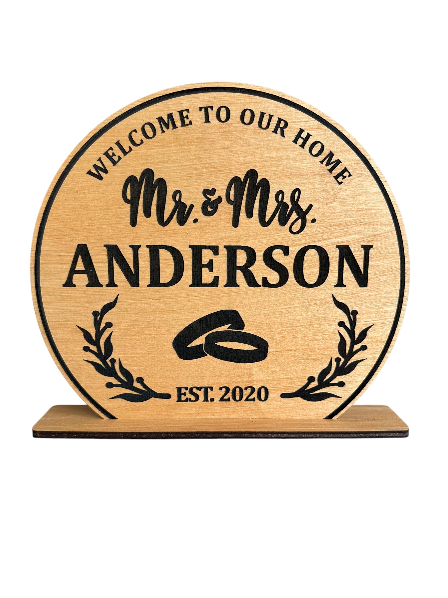 Perfect for welcoming guests or adding a personal touch to your space, this round self-standing "Our Home" sign is fully customizable with your family’s last name or a special phrase. Crafted from 100% real birch wood, it brings warmth and character to any room—whether it’s your entryway, living room, or a thoughtful gift for a housewarming, wedding, or anniversary. Durable, stylish, and made to stand proudly on its own, it’s a timeless piece that celebrates the heart of your home.