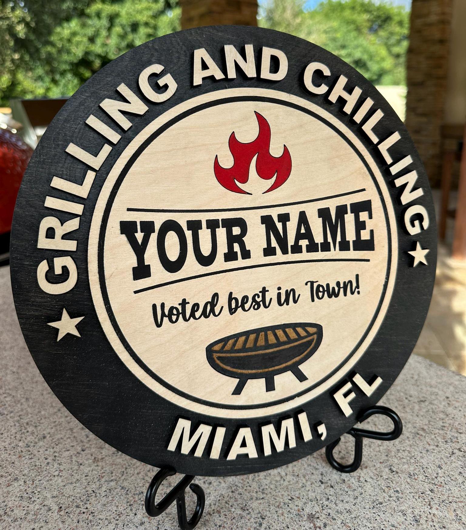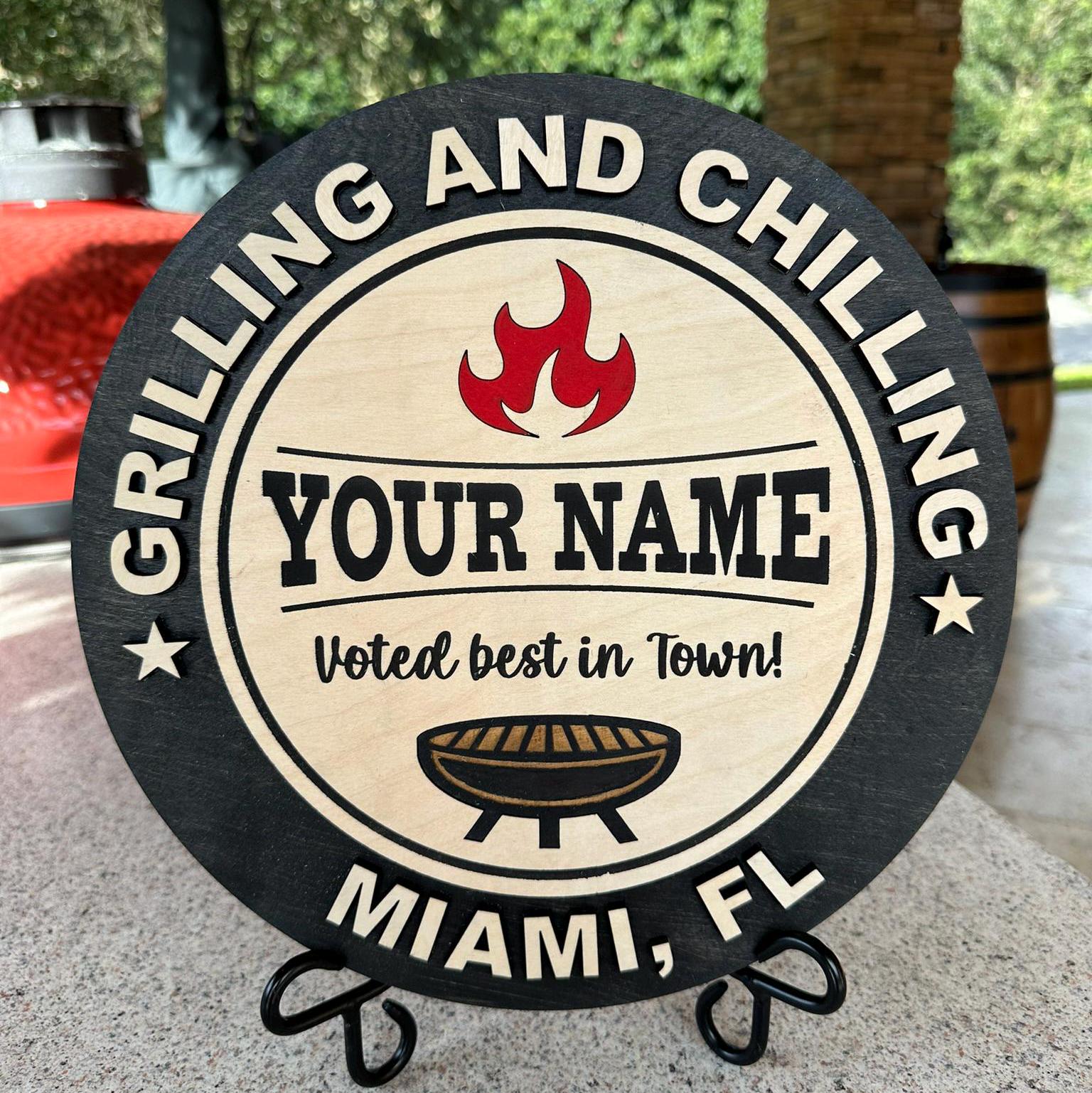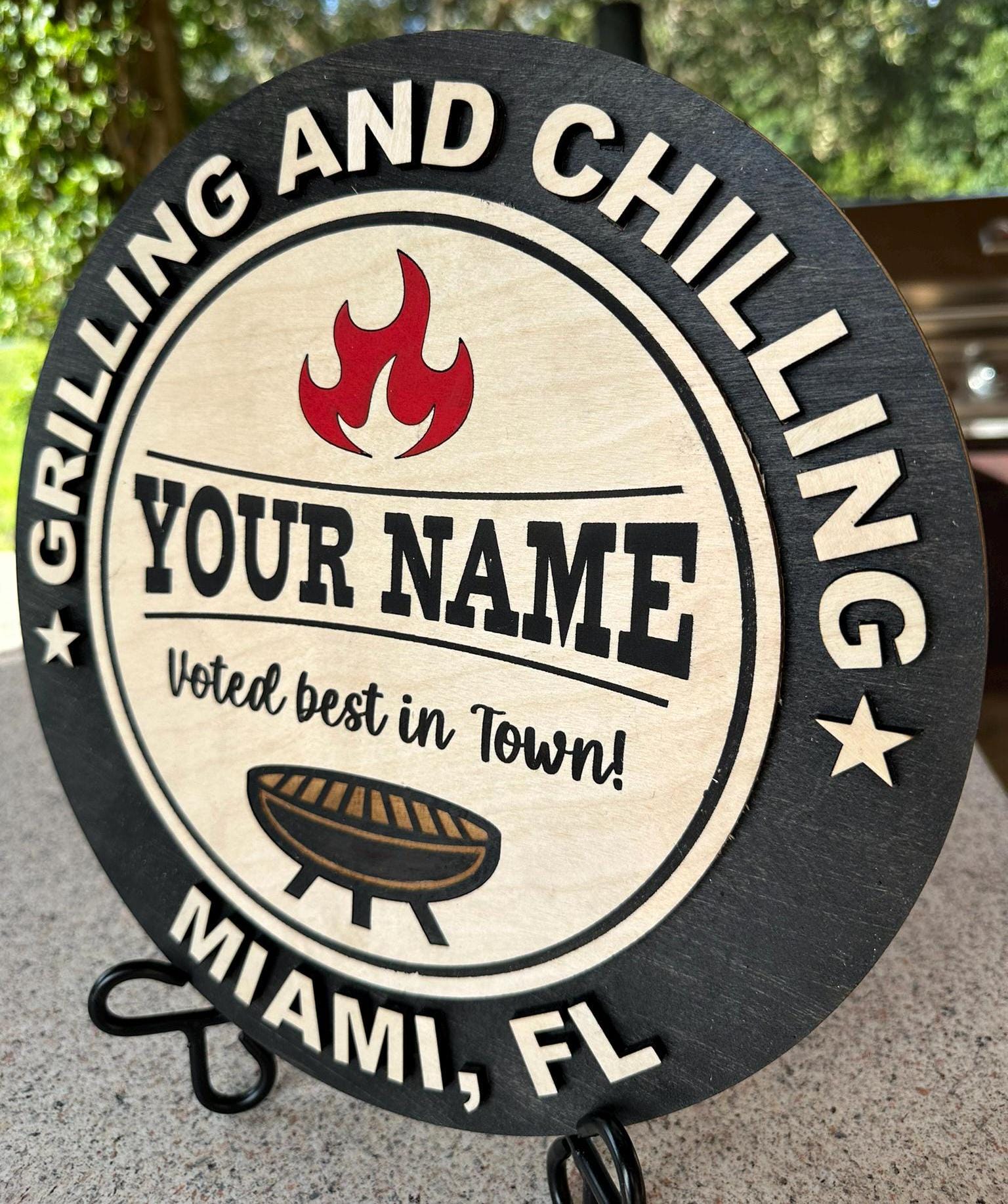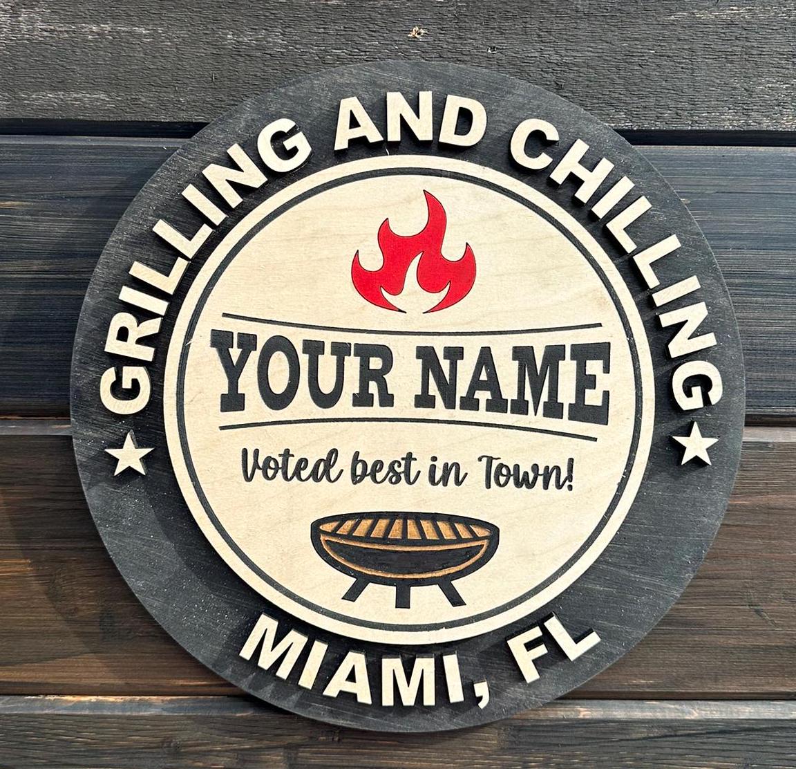 Personalized "Grilling and Chilling" BBQ Wooden Sign, Custom Grill Decor
