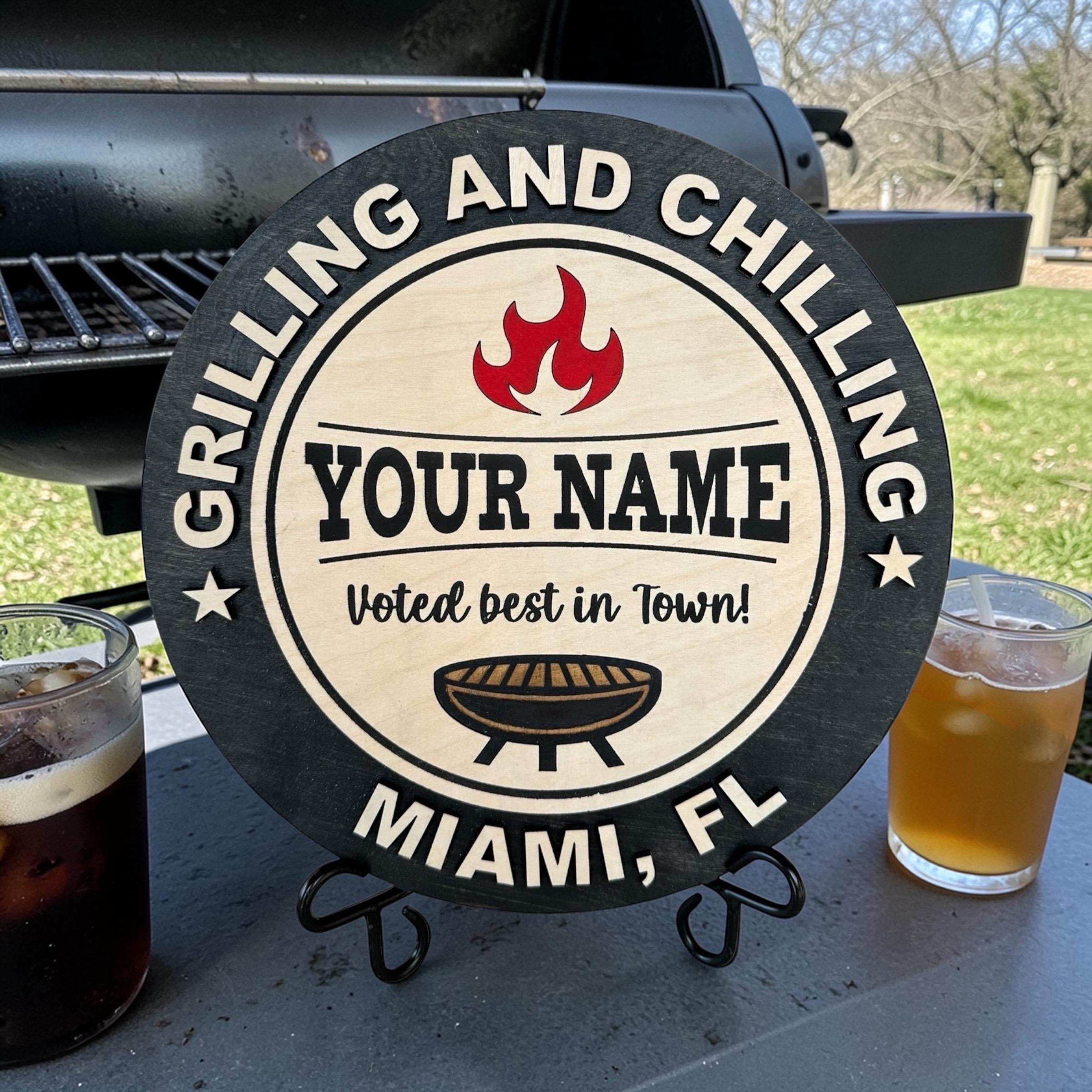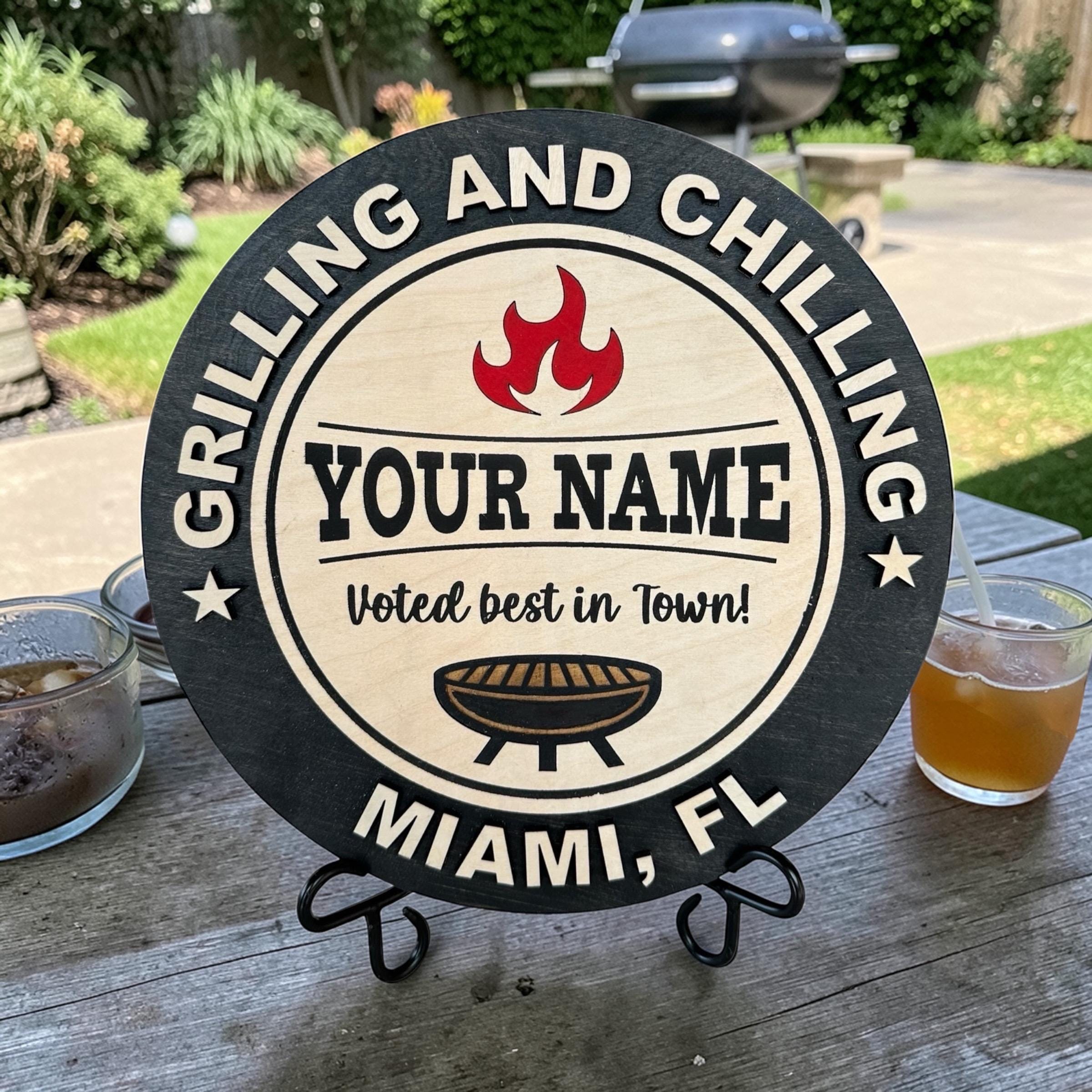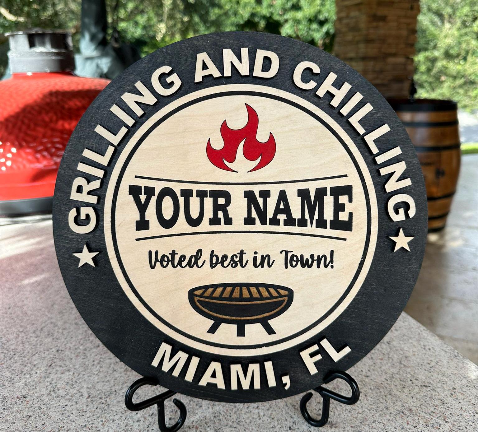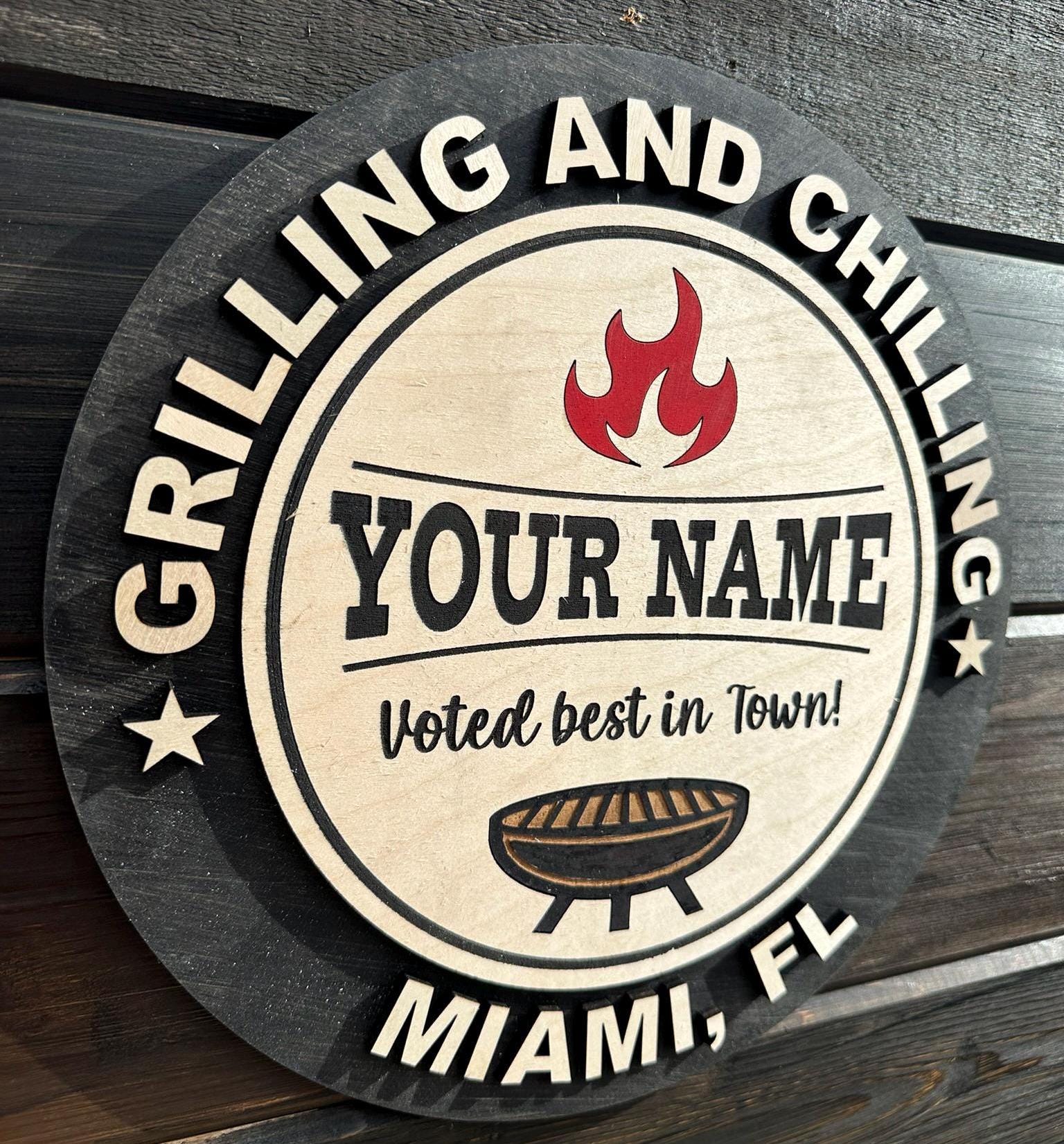 Personalized "Grilling and Chilling" BBQ Wooden Sign, Custom Grill Decor