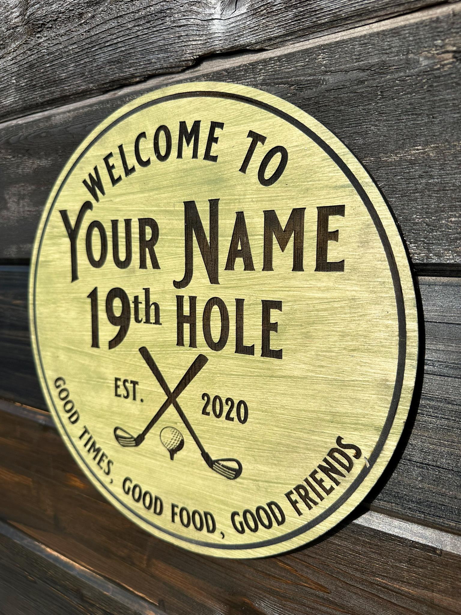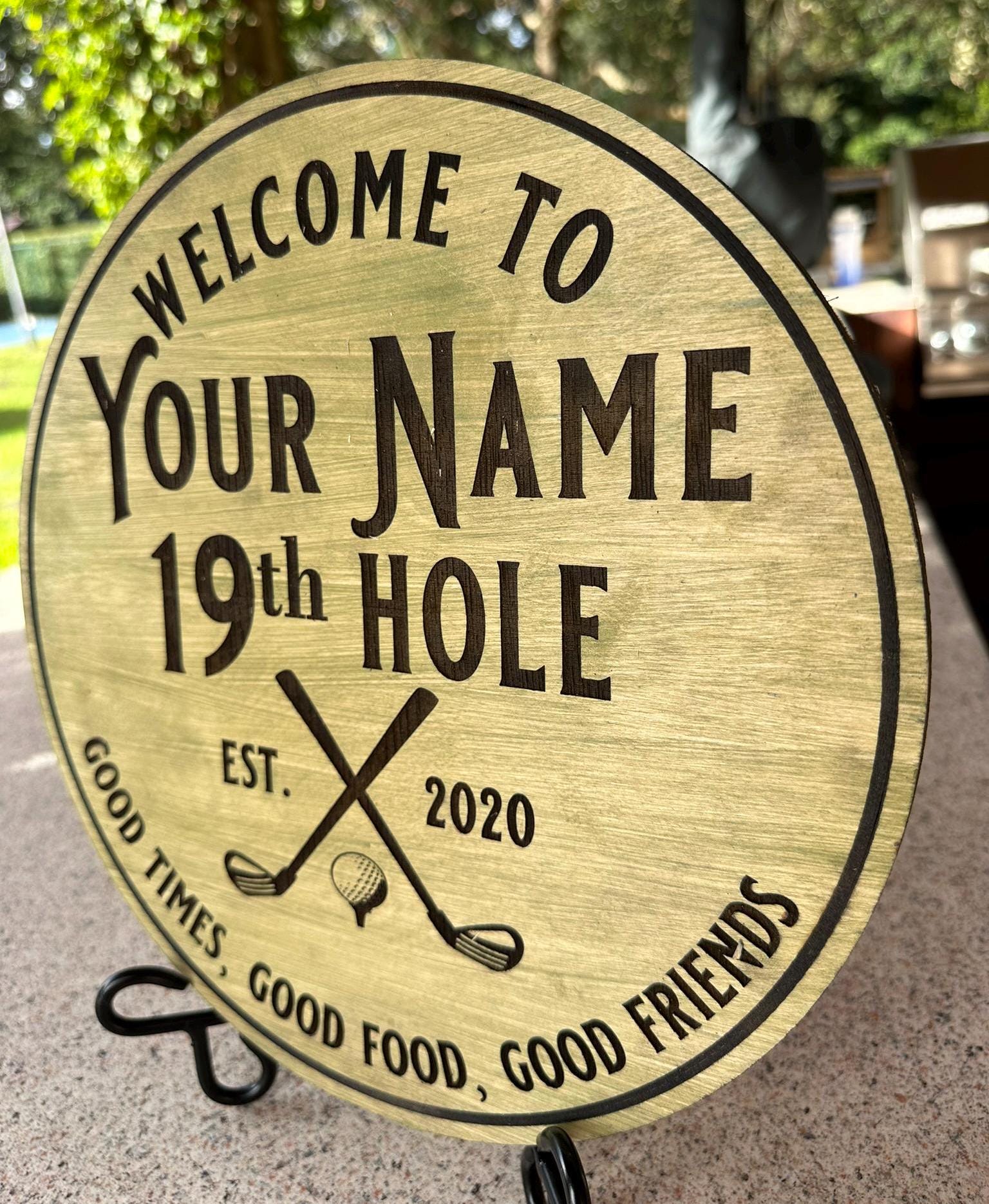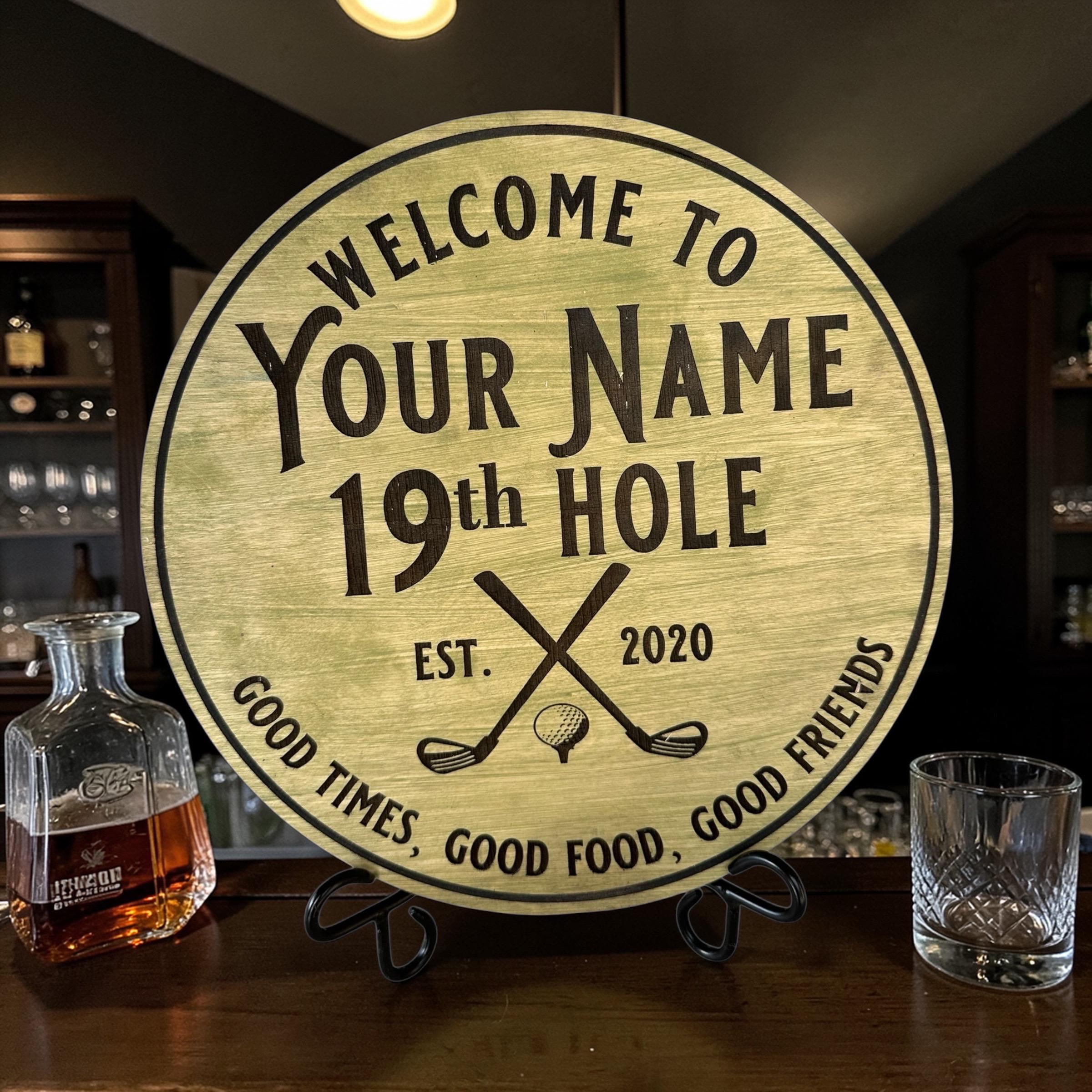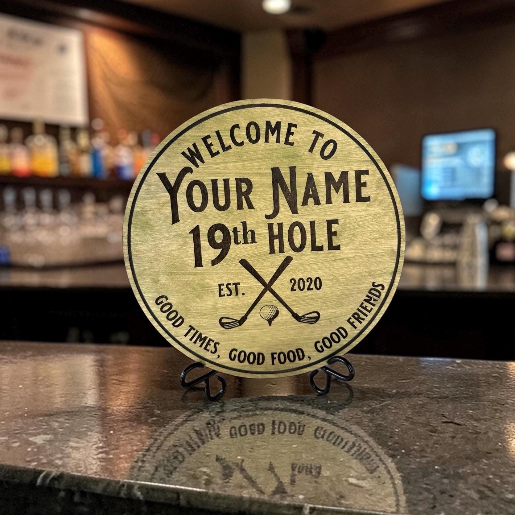 Personalized 19th Hole Bar Sign, Custom Golf Decor, Birch Wood