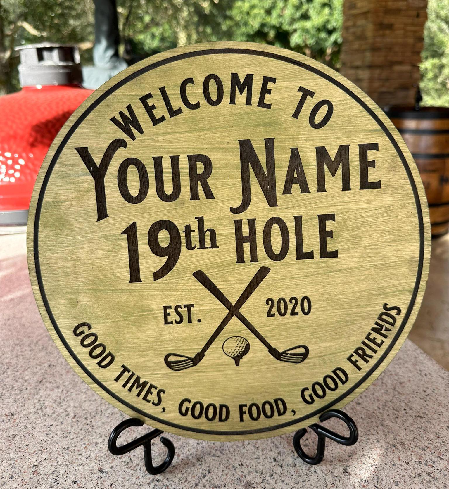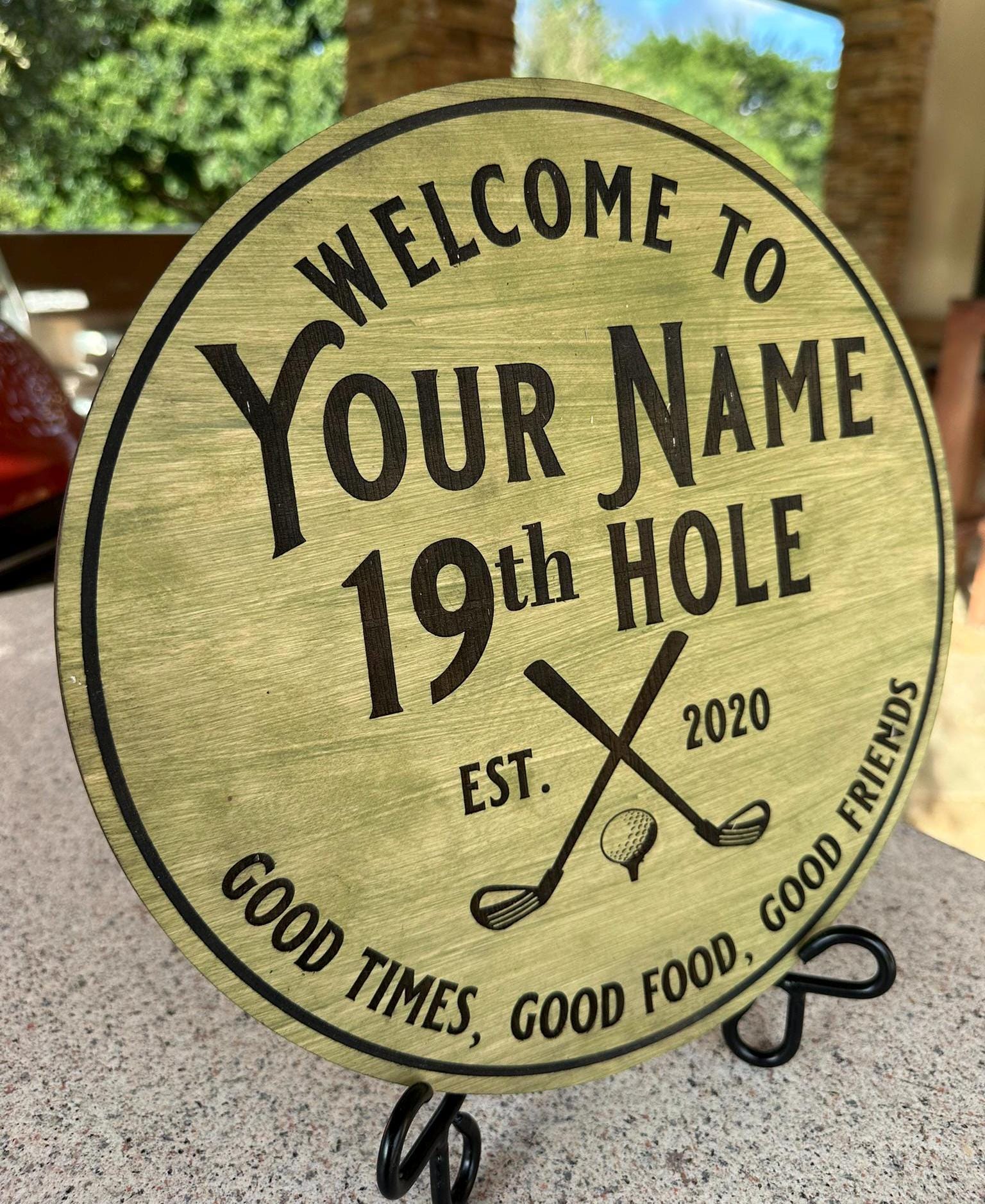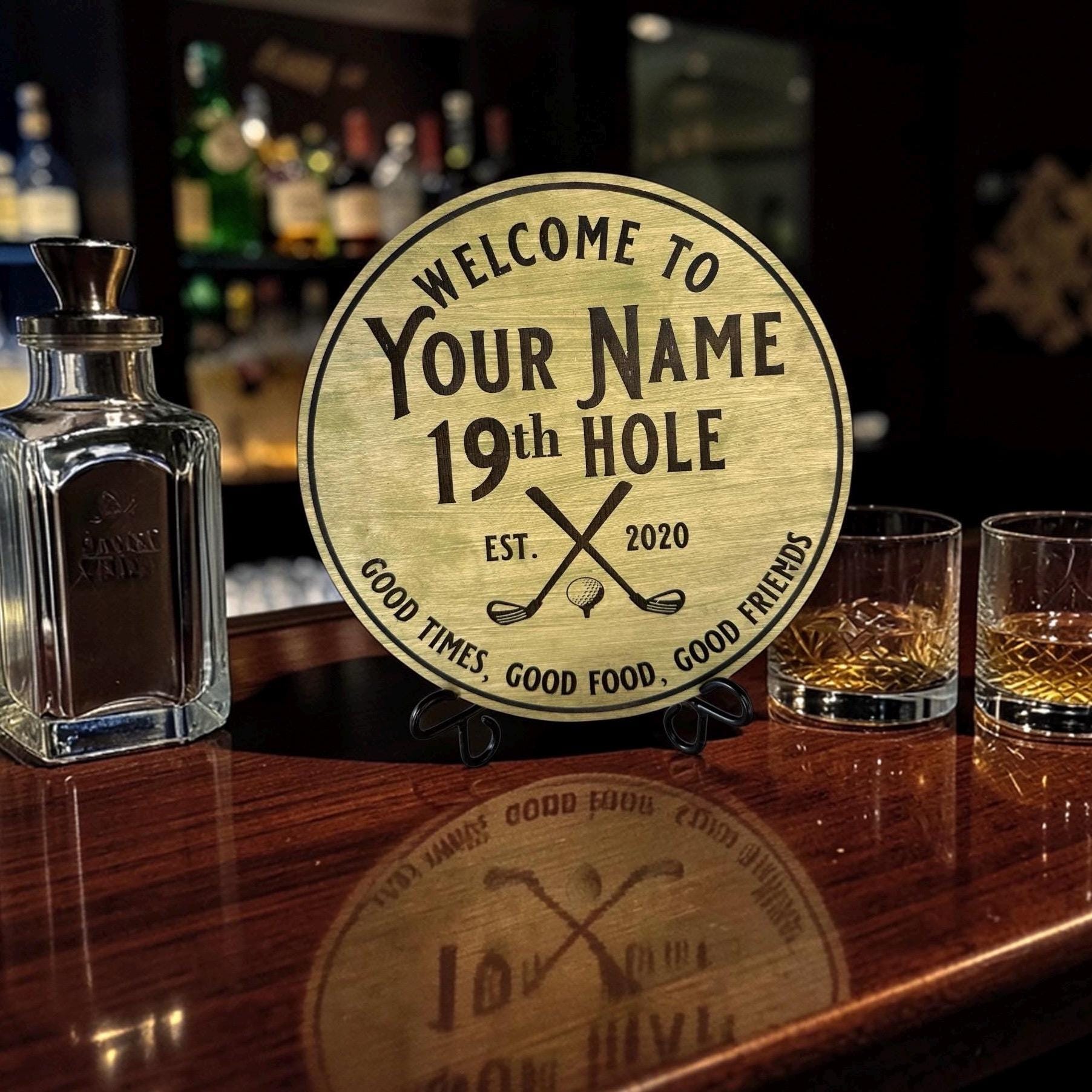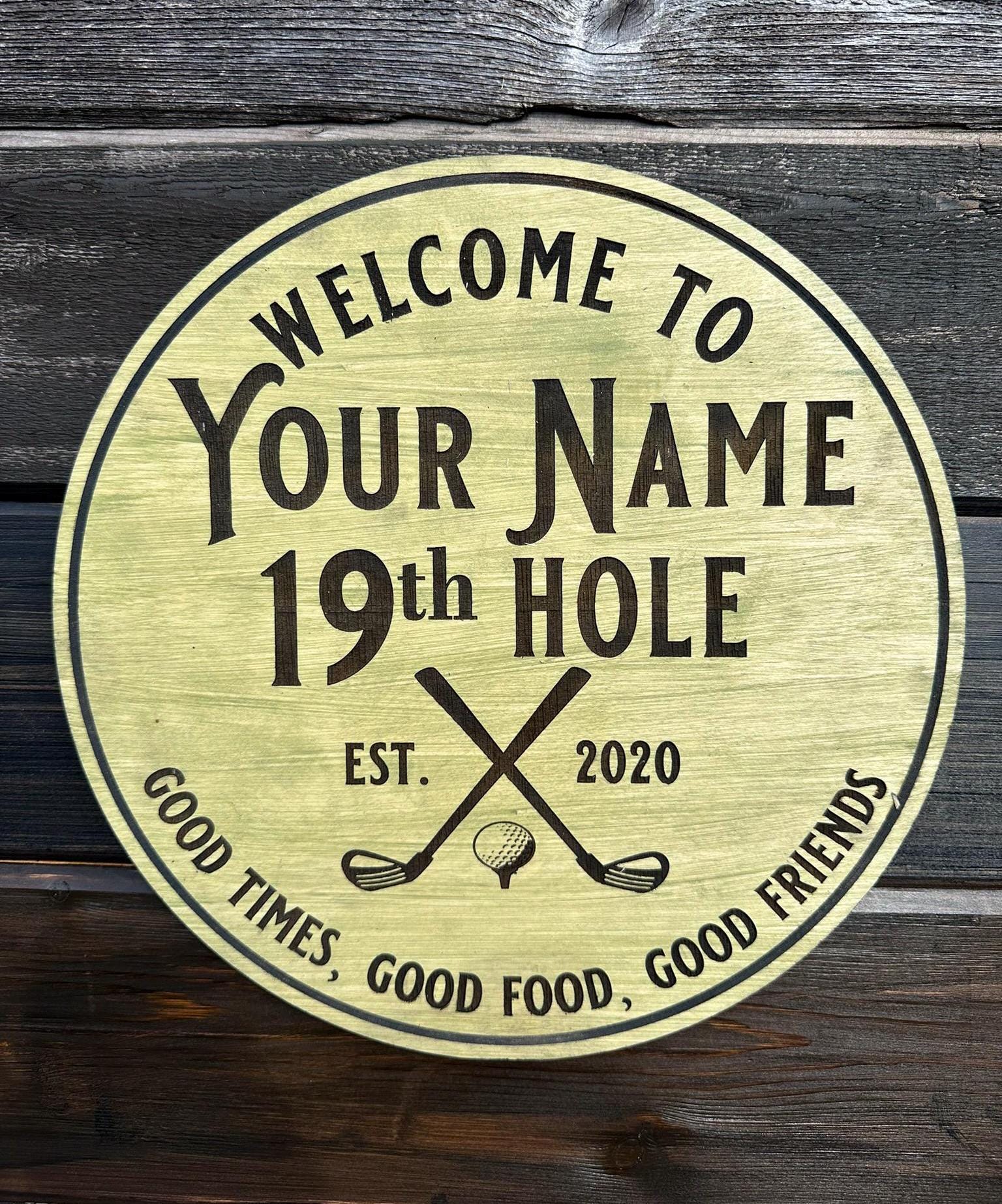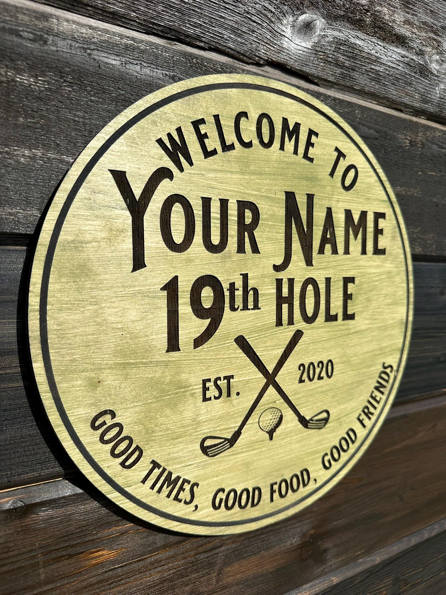 Personalized 19th Hole Bar Sign, Custom Golf Decor, Birch Wood