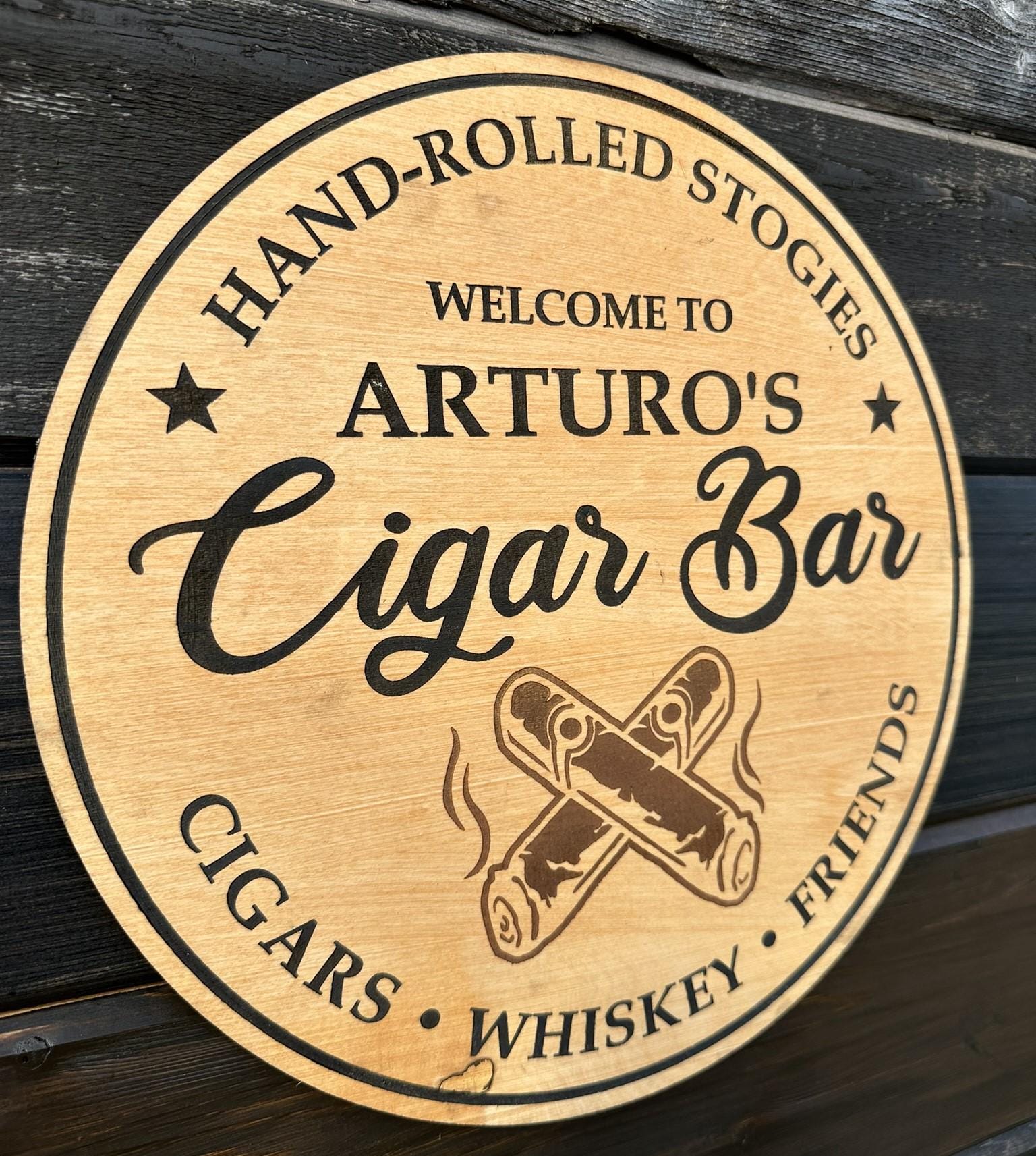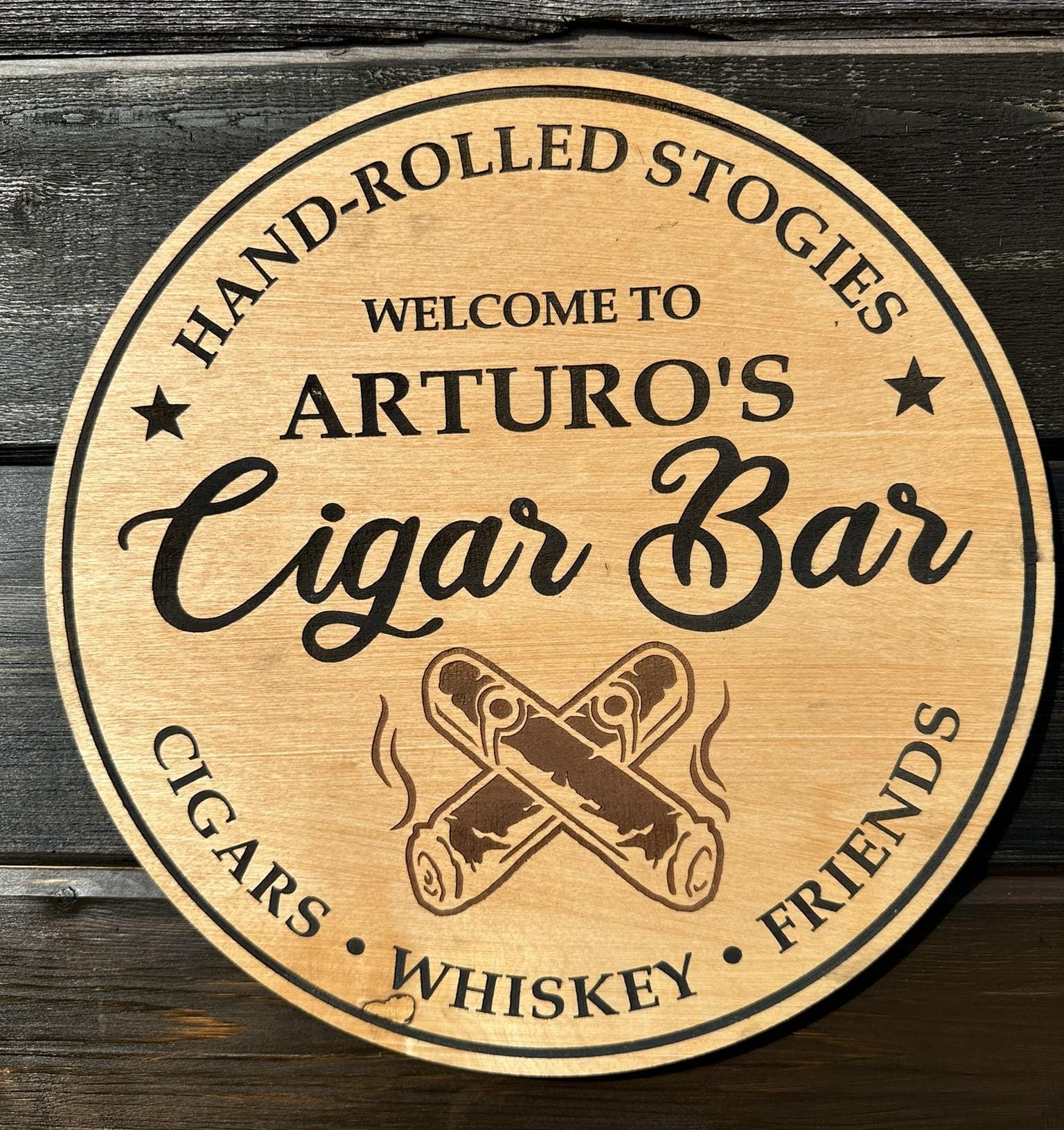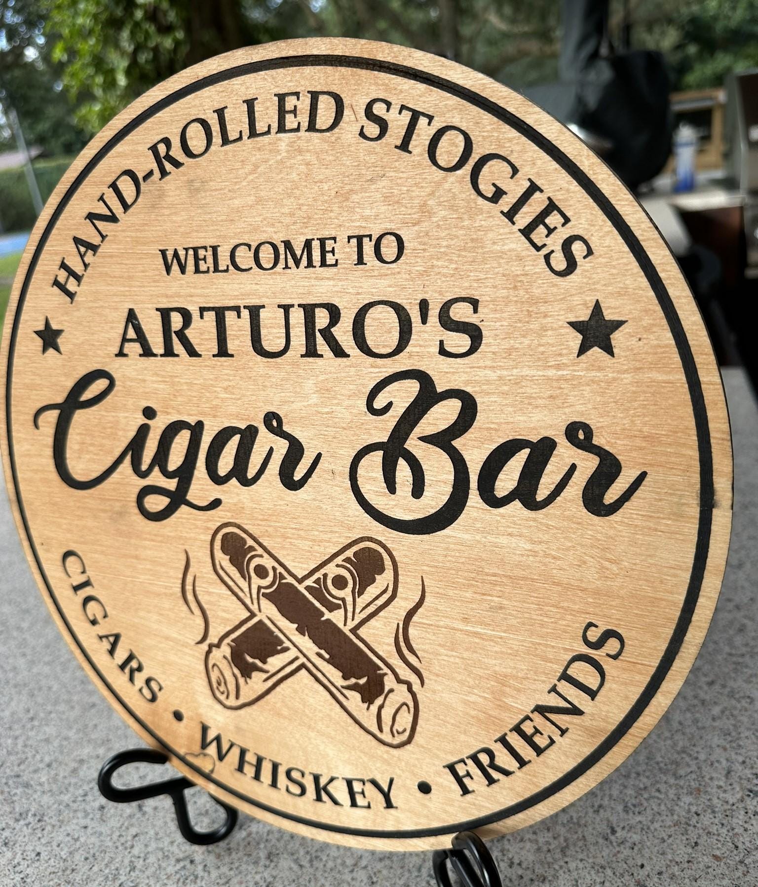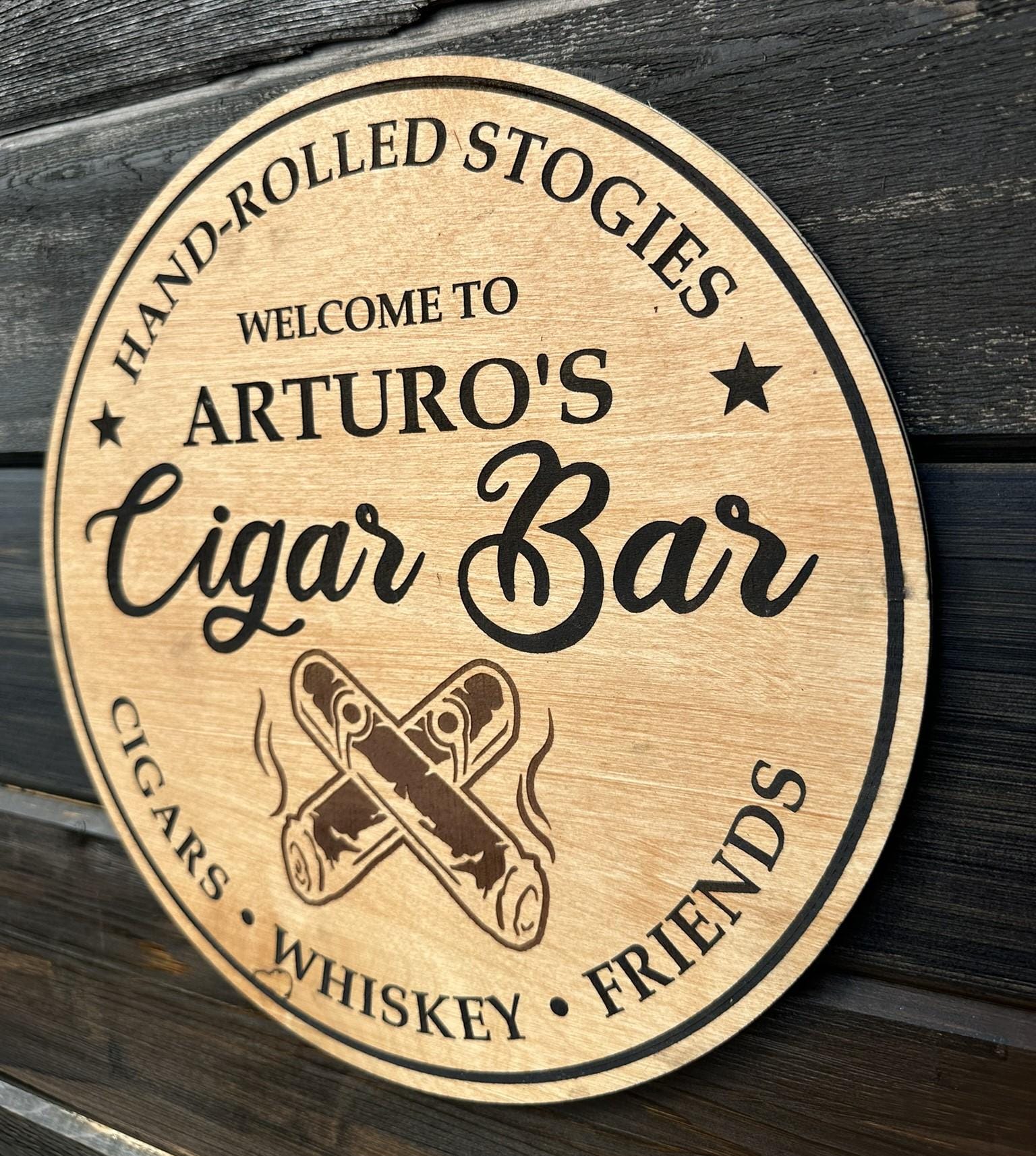 Personalized Wooden Cigar Bar Sign, Custom Man Cave Decor