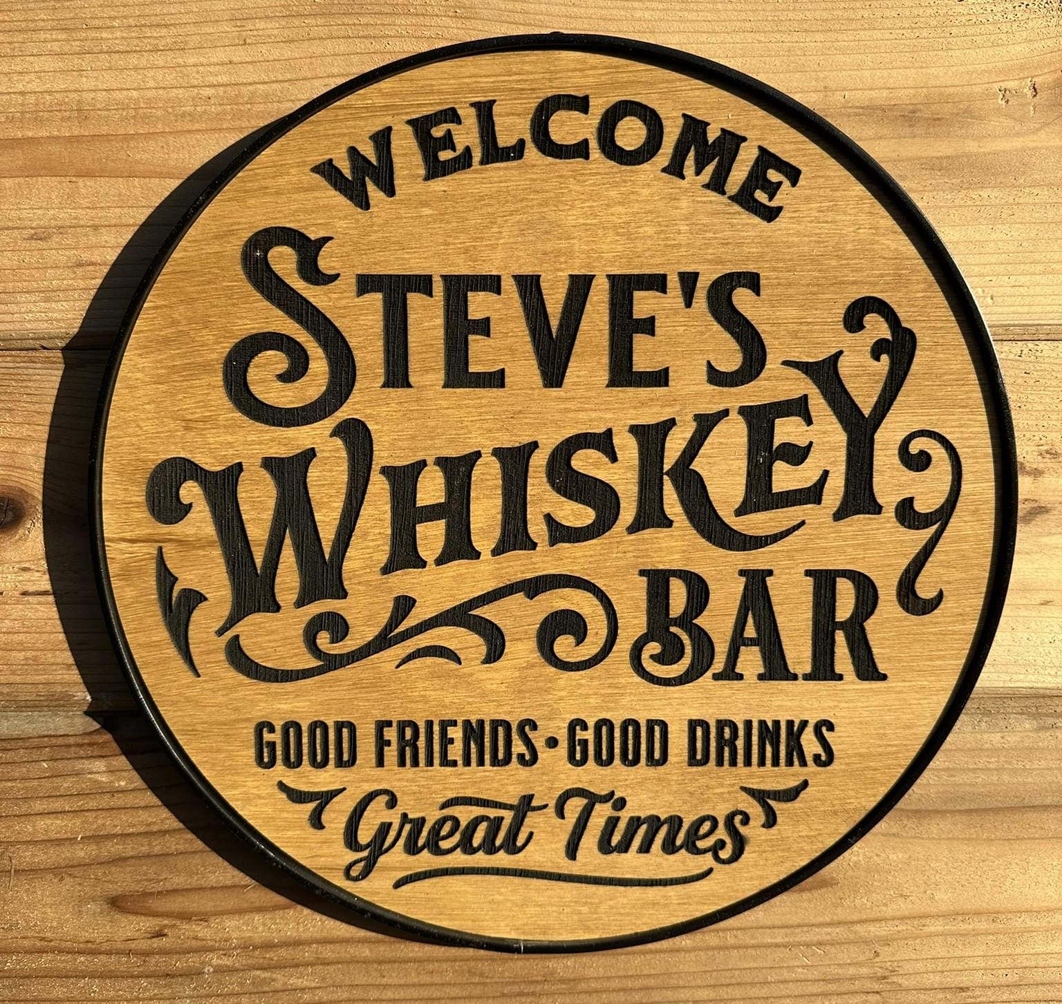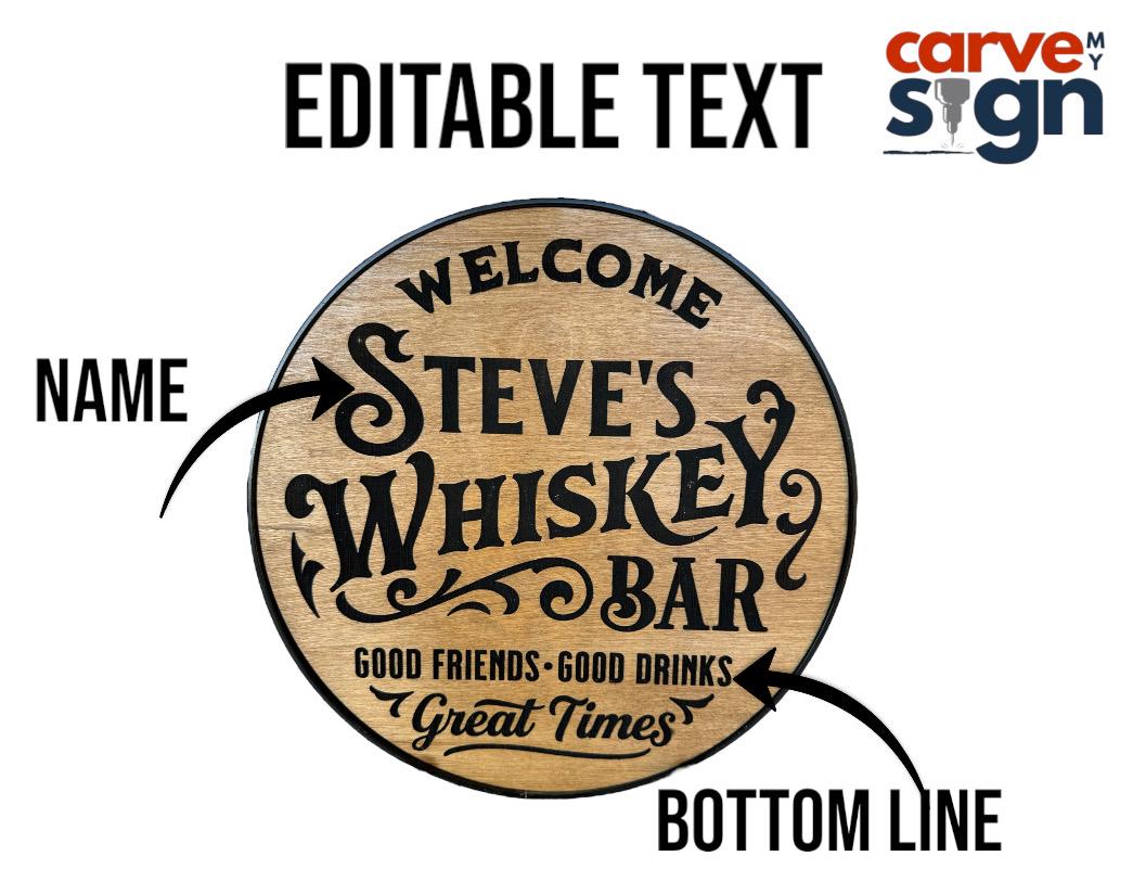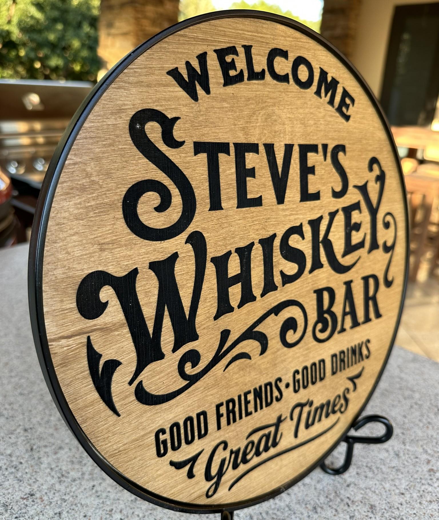 Personalized Whiskey Bar Sign, Custom Birch Wood, Man Cave Decor