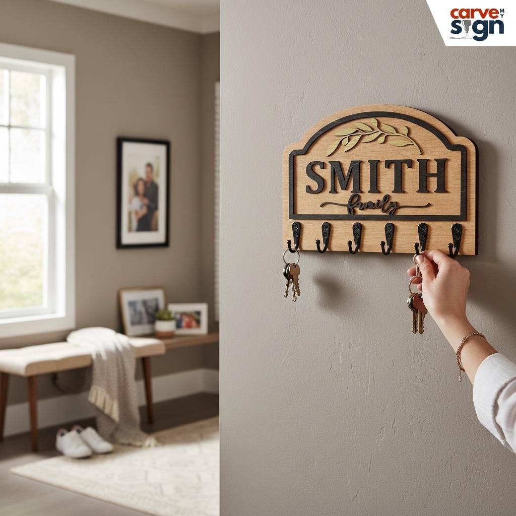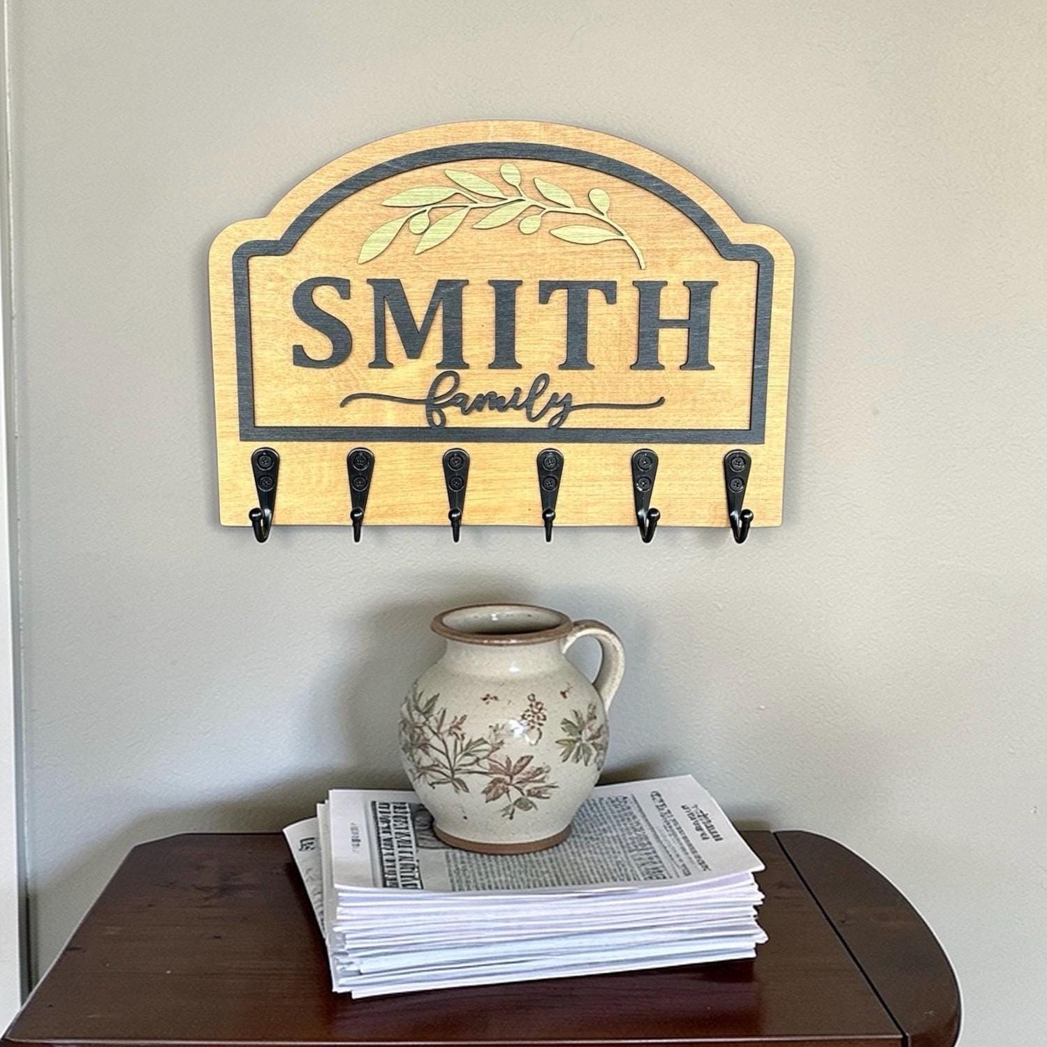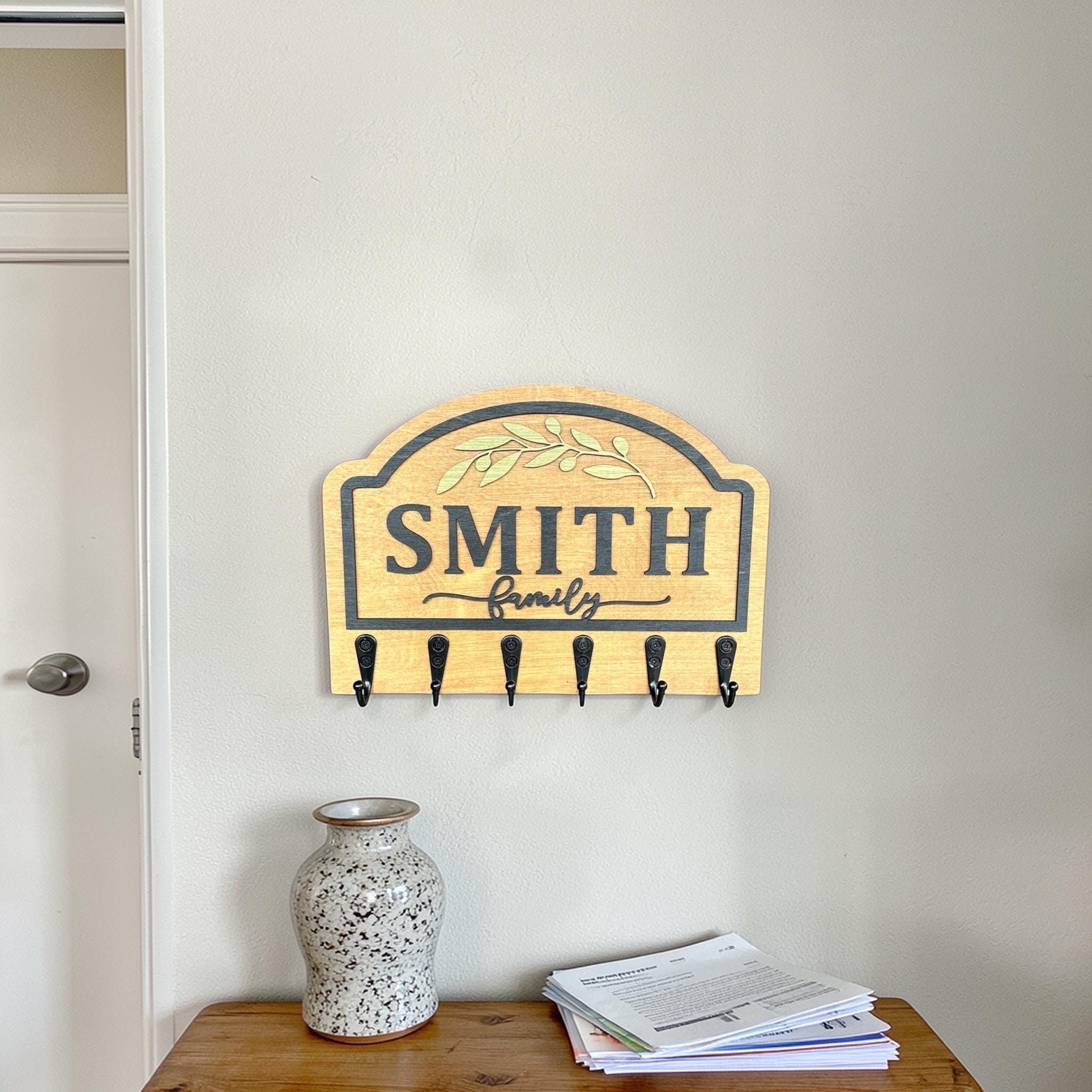Available in various colors, you can choose the perfect finish to match your decor. This custom last name sign isn't just a practical solution for keeping your space organized; it’s also a heartfelt way to celebrate family life. It's a standout piece that makes a thoughtful housewarming gift for friends and loved ones, adding a personal touch to their new home.