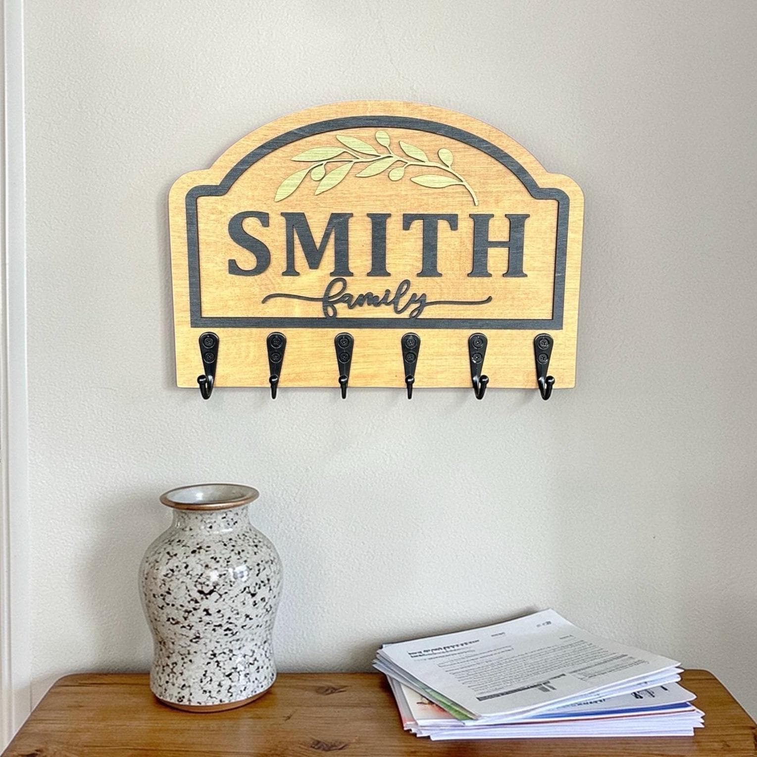 Ready to hang and easy to install, this key holder is as convenient as it is stylish. Make your entryway a warm welcome for guests and a functional space for your family with this unique, personalized touch. Don’t miss the chance to elevate your home decor—order yours today!