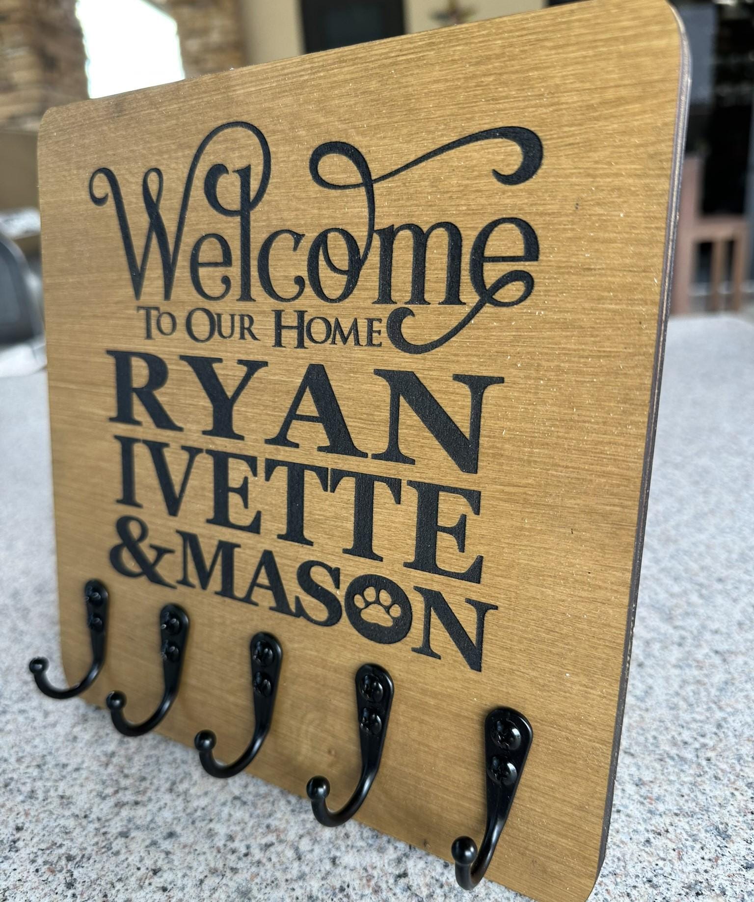 Ready to hang and easy to install, this key holder is as convenient as it is stylish. Make your entryway a warm welcome for guests and a functional space for your family with this unique, personalized touch. Don’t miss the chance to elevate your home decor—order yours today!