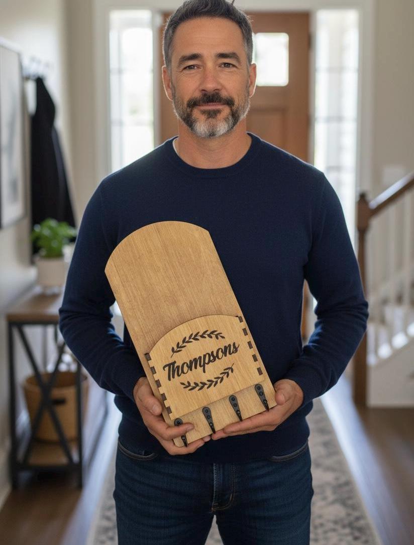 Introducing our Personalized Family Name Key & Mail Holder – the perfect blend of style and functionality! Handcrafted from real birch wood, this wall-mounted letter holder and key organizer adds a rustic charm to your entryway. Custom engravings make it uniquely yours, showcasing your family's name. Keep your keys and mail in one sleek spot while enhancing your home decor. Makes a perfect wedding gift, home warming gift or personal use! Transform your space with this beautiful addition that's as practical as it is elegant.