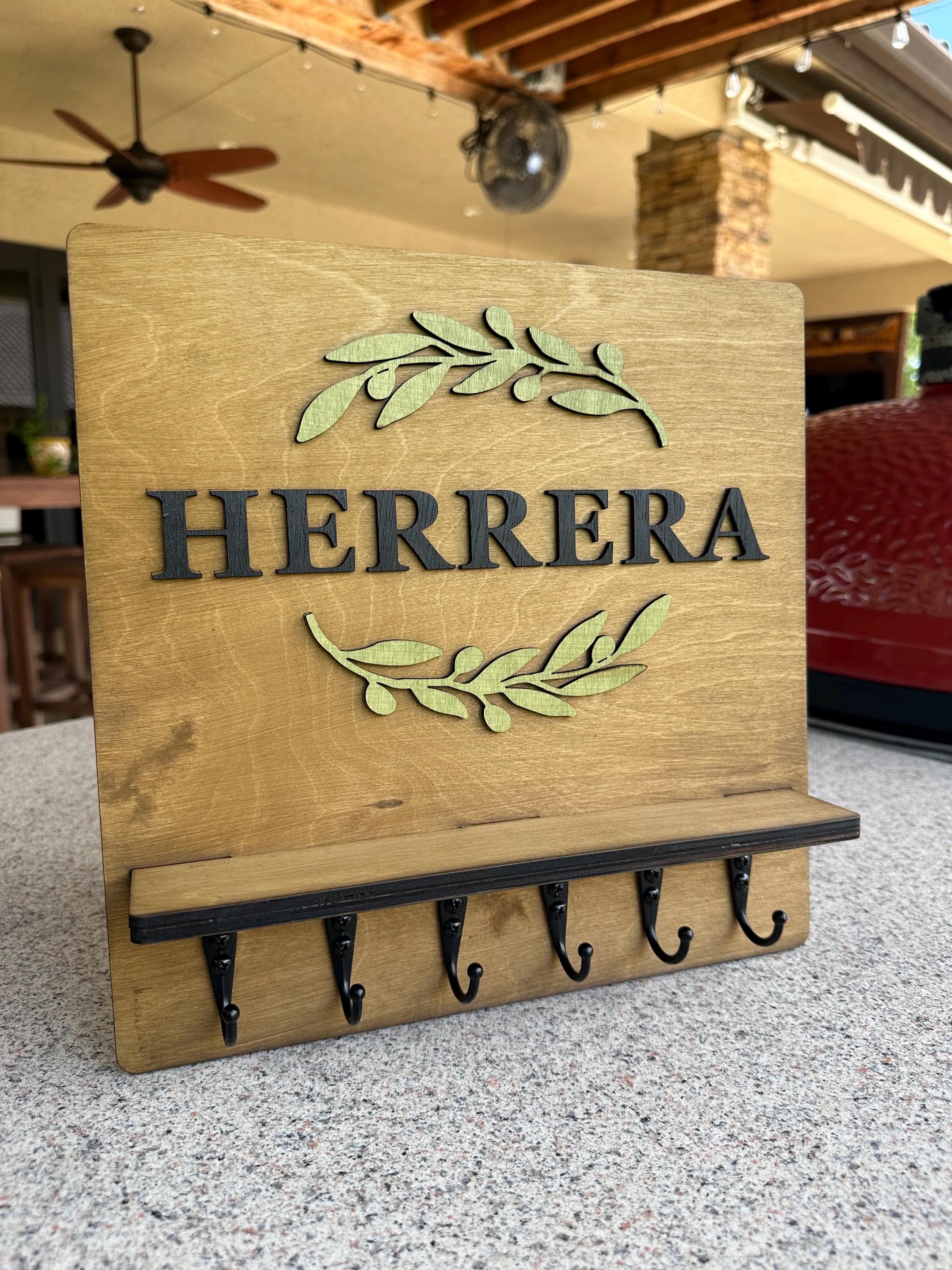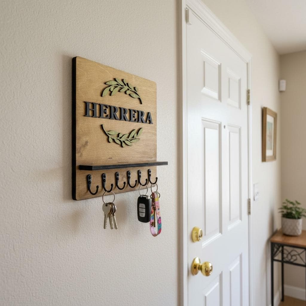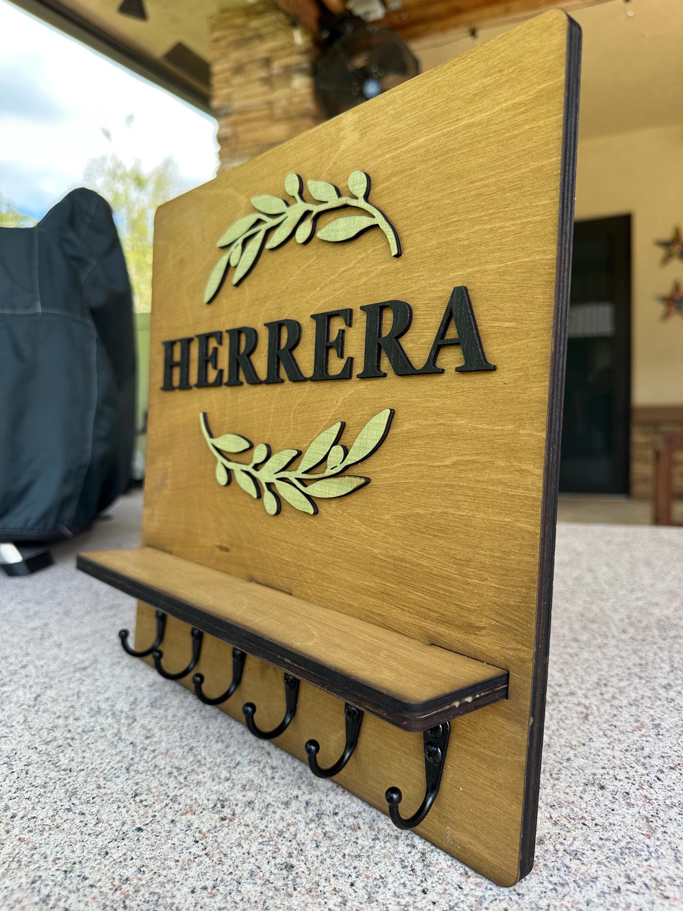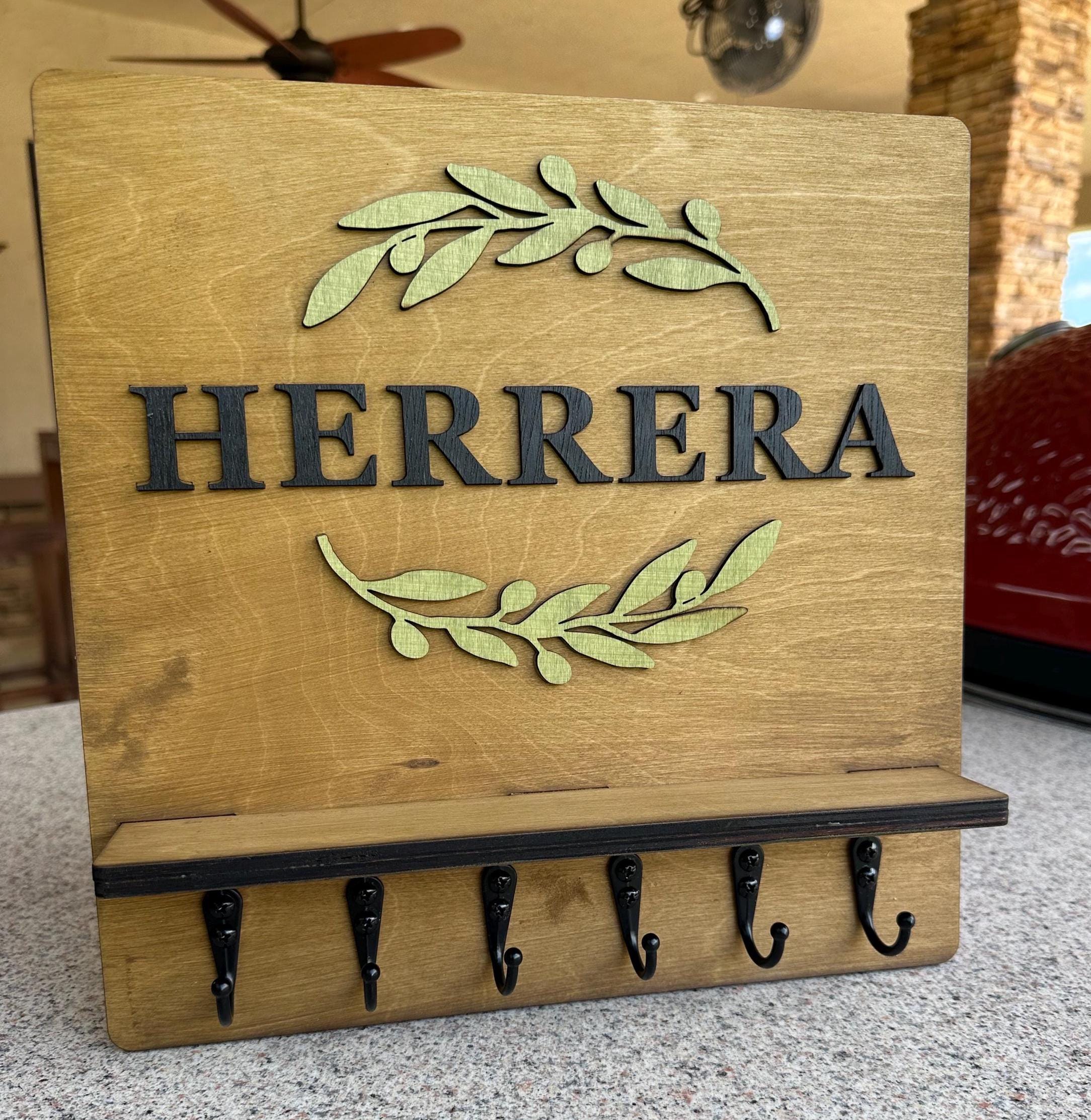Elevate your entryway with our Personalized and Handmade Family Name Key Holder with Shelf. Crafted from real wood, this functional piece features durable metal key hooks, perfect for keeping your keys organized. Choose your preferred stain, size, and customize the text to make it uniquely yours. It’s not just a practical item; it’s a beautiful addition to your home decor! Ideal for family homes or as a thoughtful gift, a rather perfect housewarming gift! Order yours today and enjoy a touch of personalized charm!