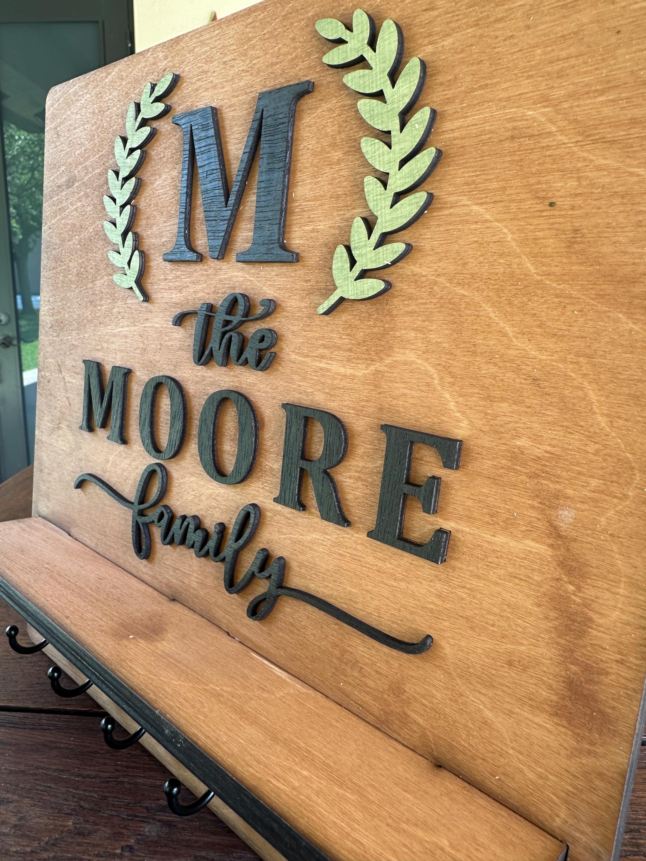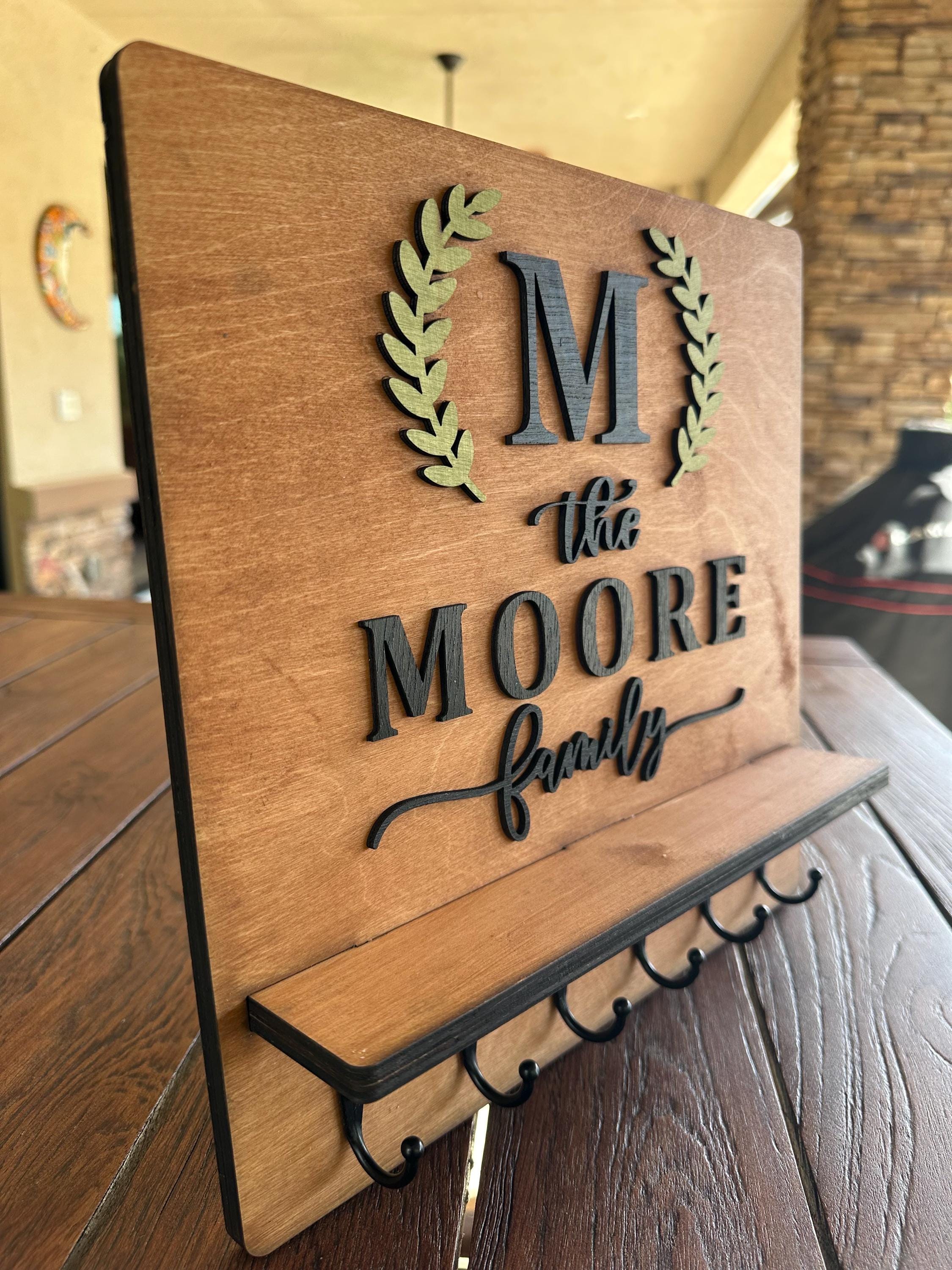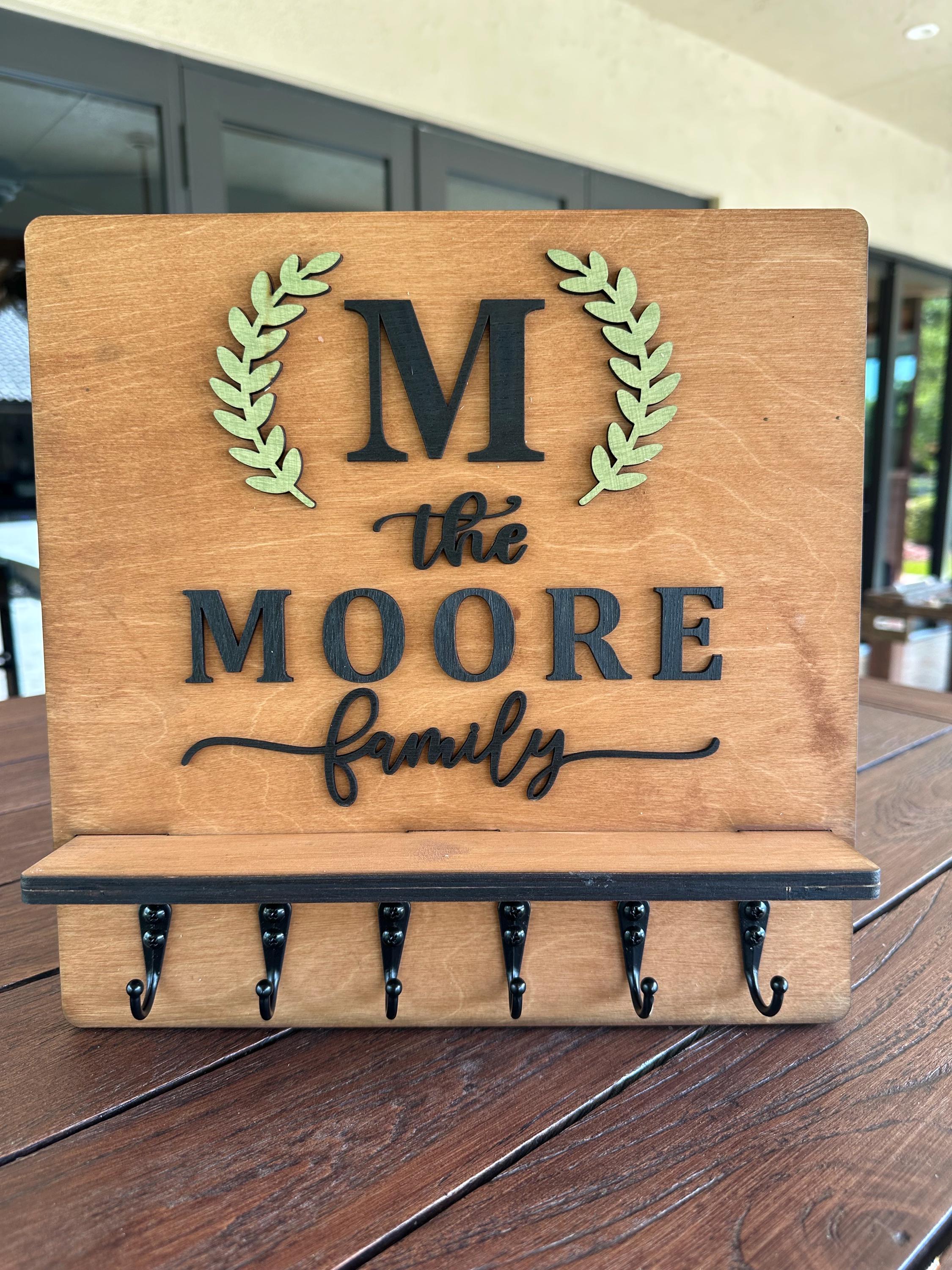 Introducing our Custom Handmade Family Name Key Holder with Shelf! This beautifully crafted piece not only helps you keep all your keys organized in one place but also adds a personal touch to your home decor. Personalize it with your family name for a unique design that showcases your style. Perfect for entryways or mudrooms, it makes a thoughtful gift for housewarmings or family celebrations. Keep your keys handy and celebrate your family's uniqueness with this charming key holder!