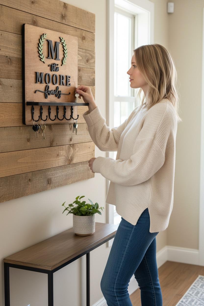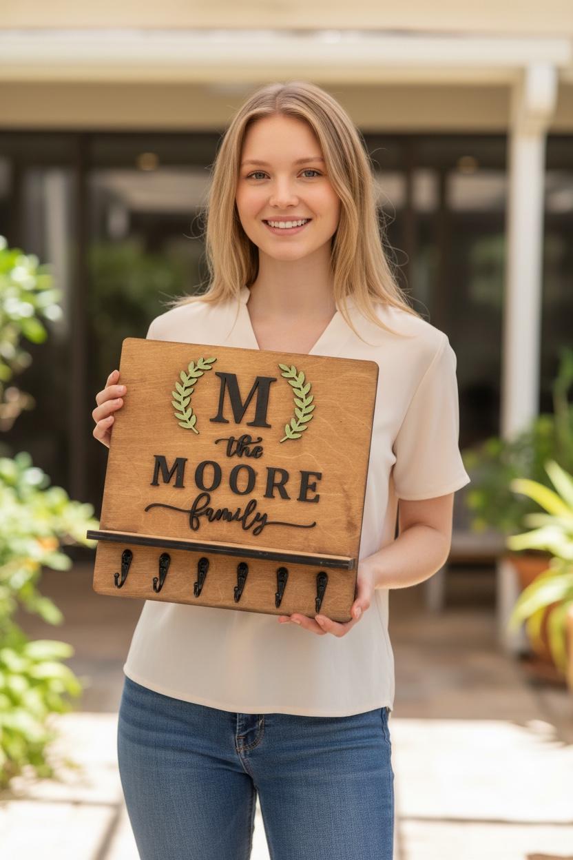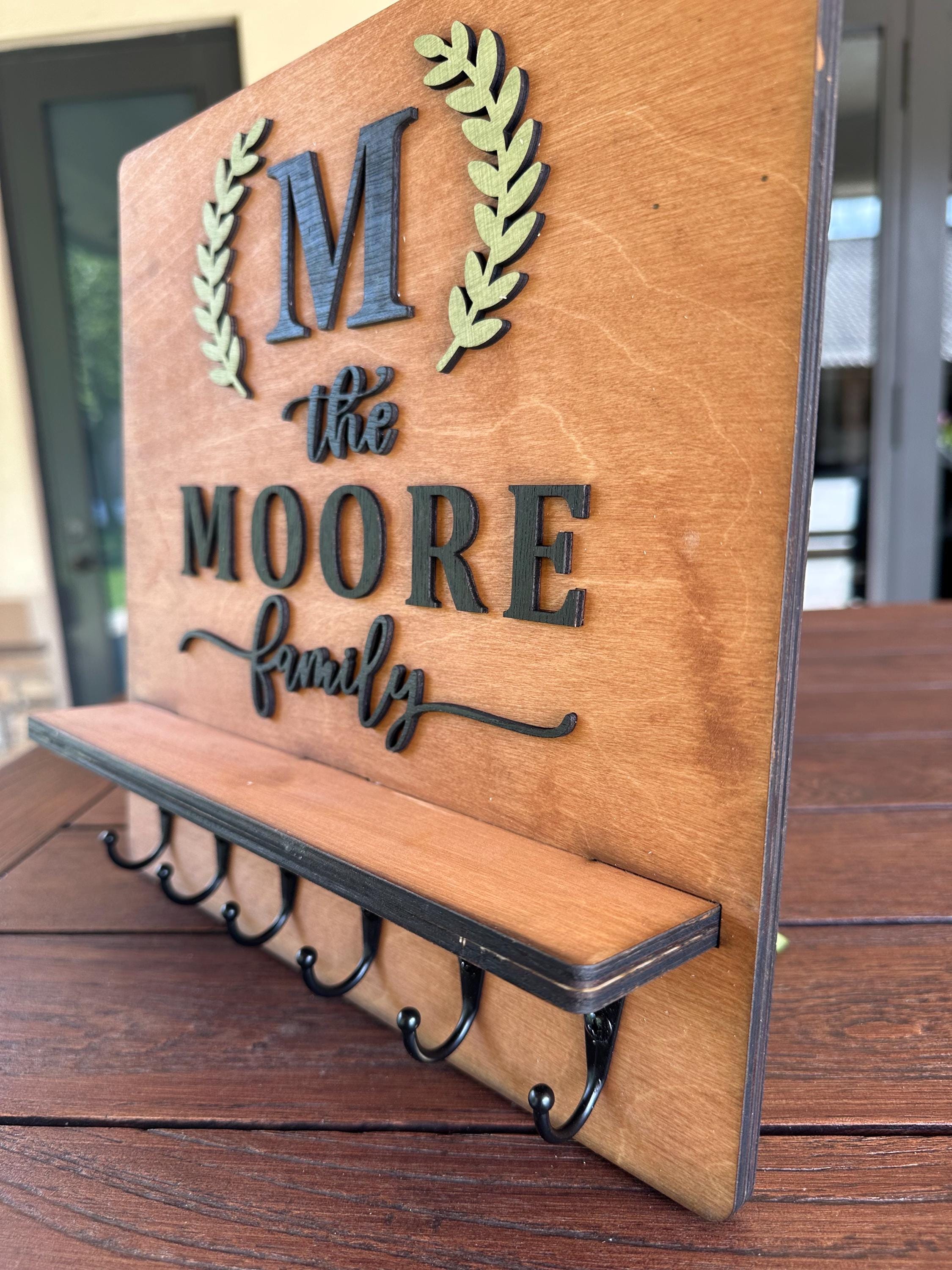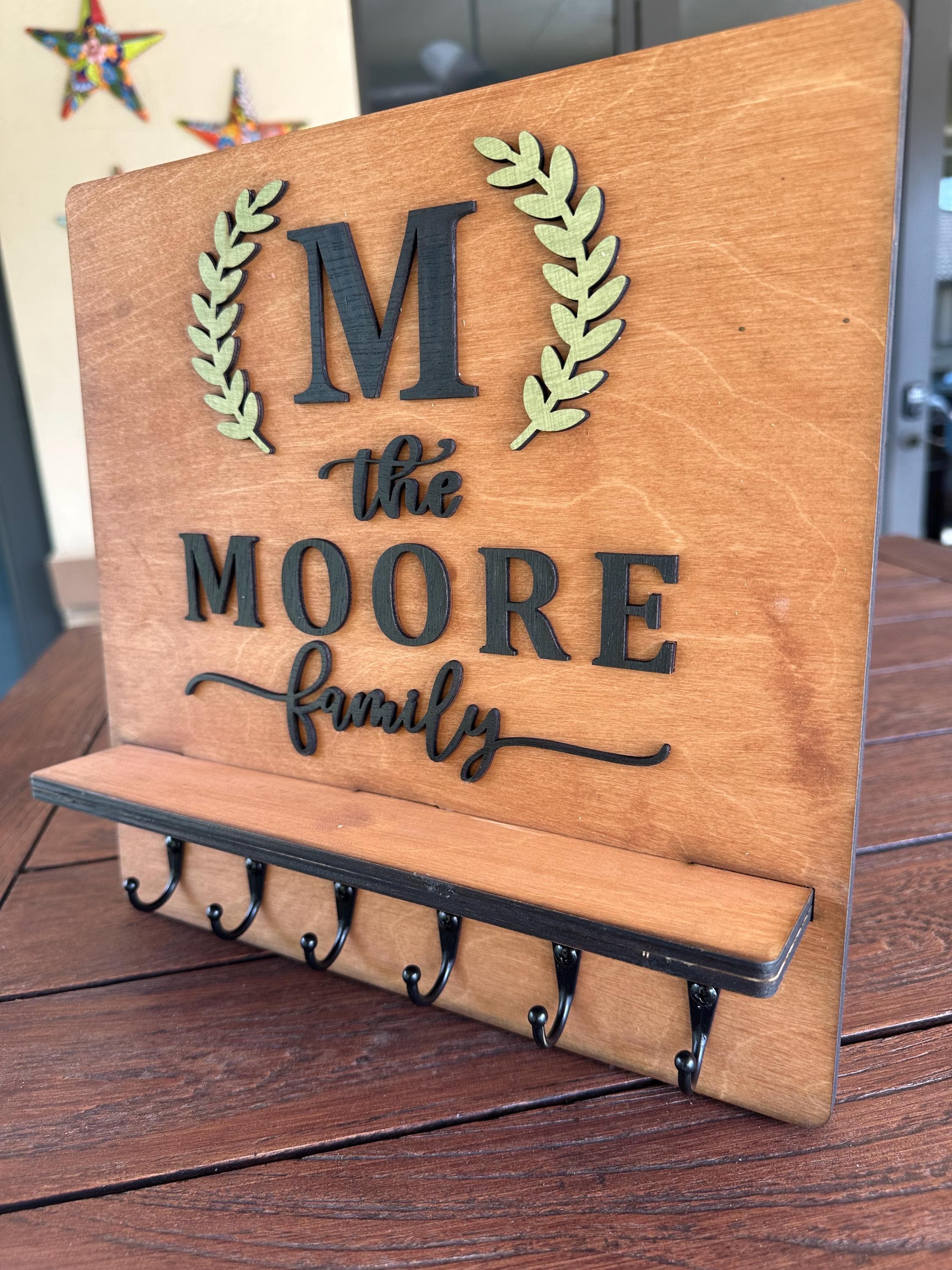 Introducing our Custom Handmade Family Name Key Holder with Shelf! This beautifully crafted piece not only helps you keep all your keys organized in one place but also adds a personal touch to your home decor. Personalize it with your family name for a unique design that showcases your style. Perfect for entryways or mudrooms, it makes a thoughtful gift for housewarmings or family celebrations. Keep your keys handy and celebrate your family's uniqueness with this charming key holder!