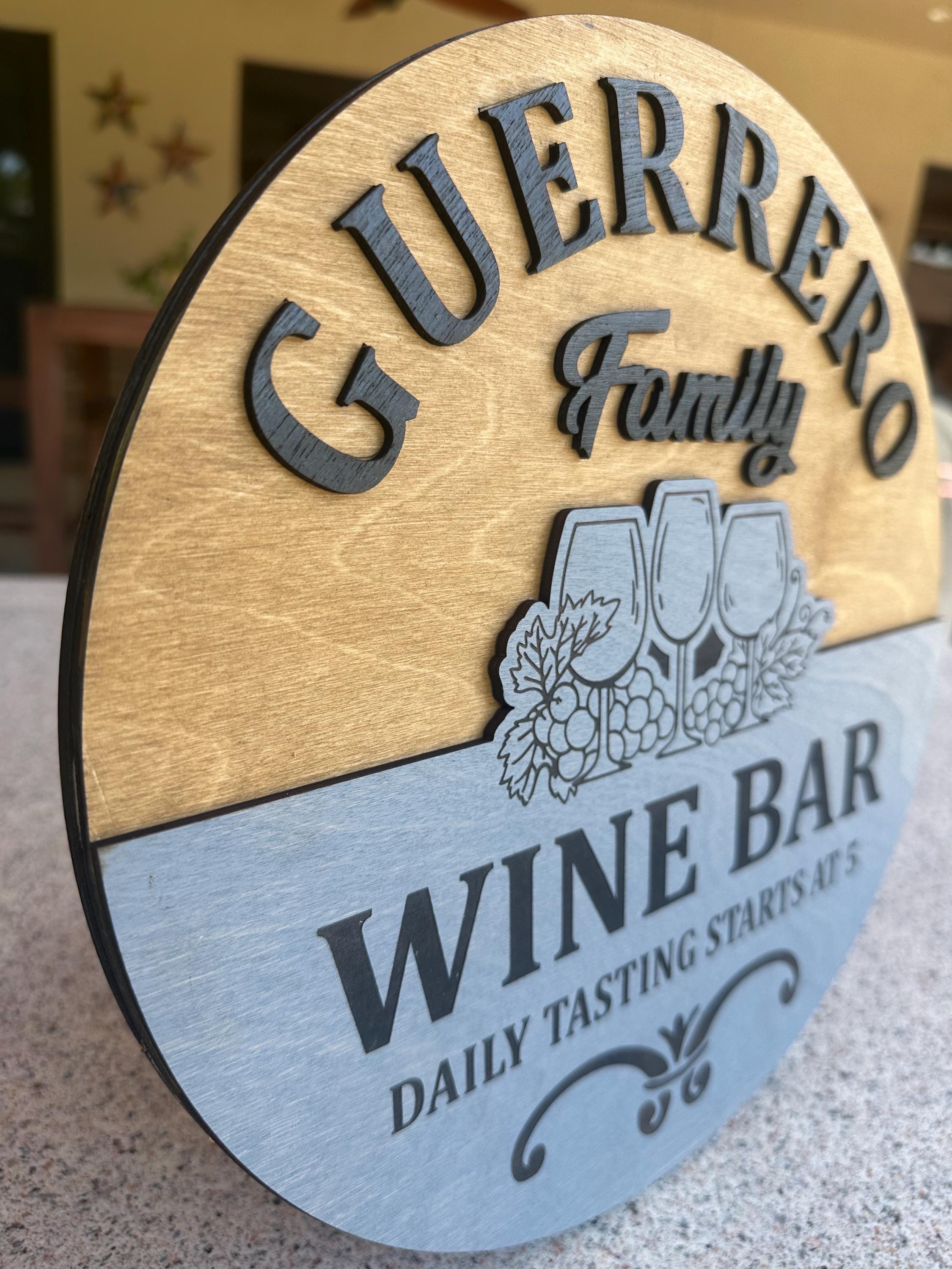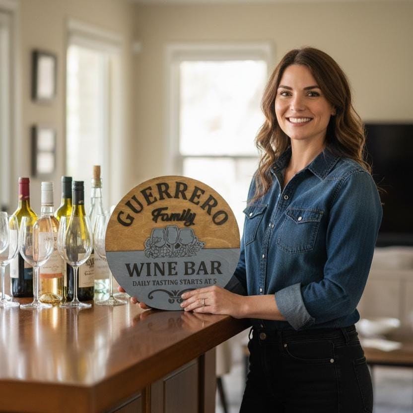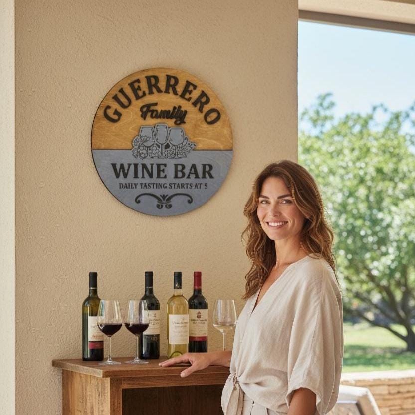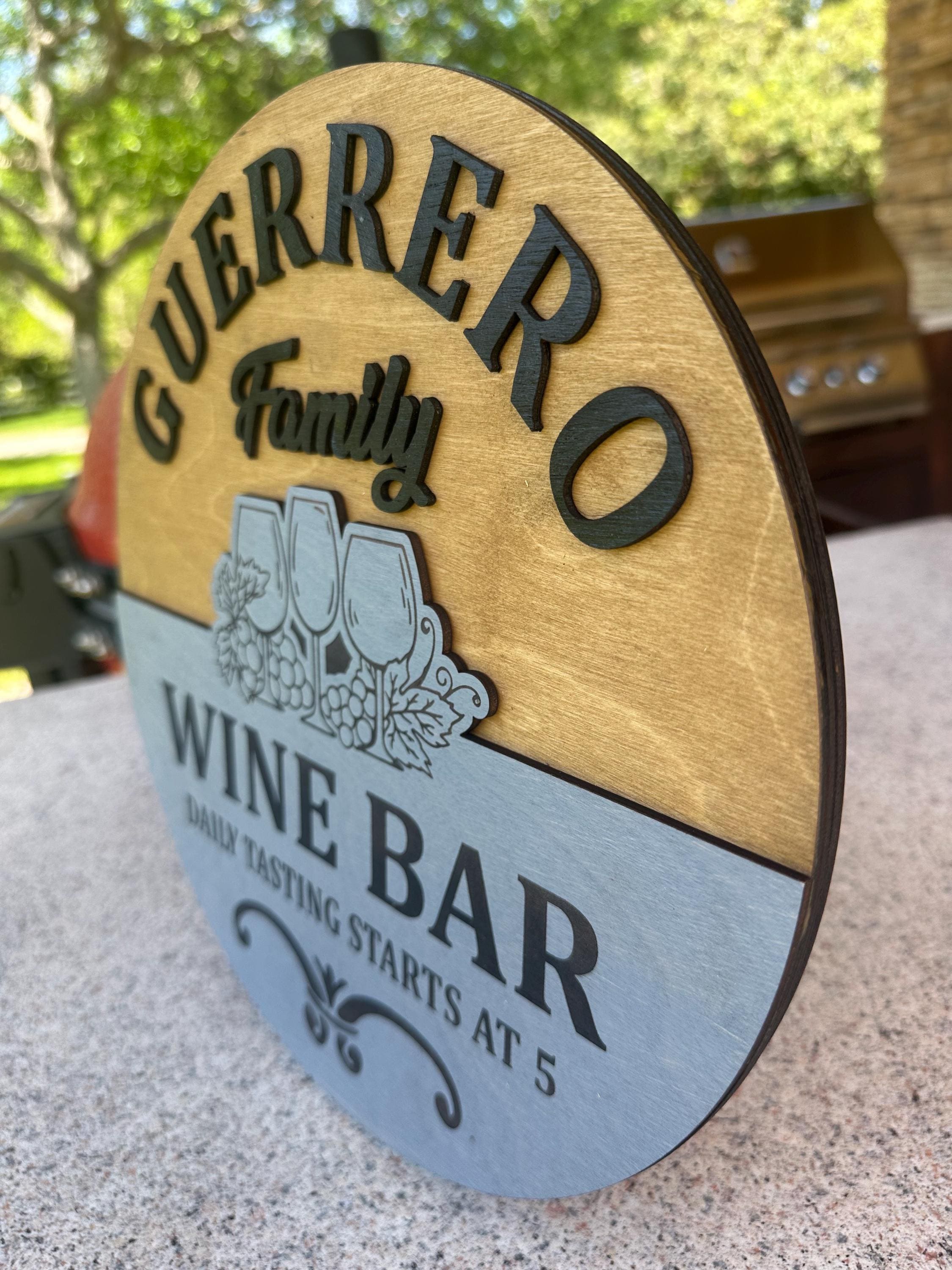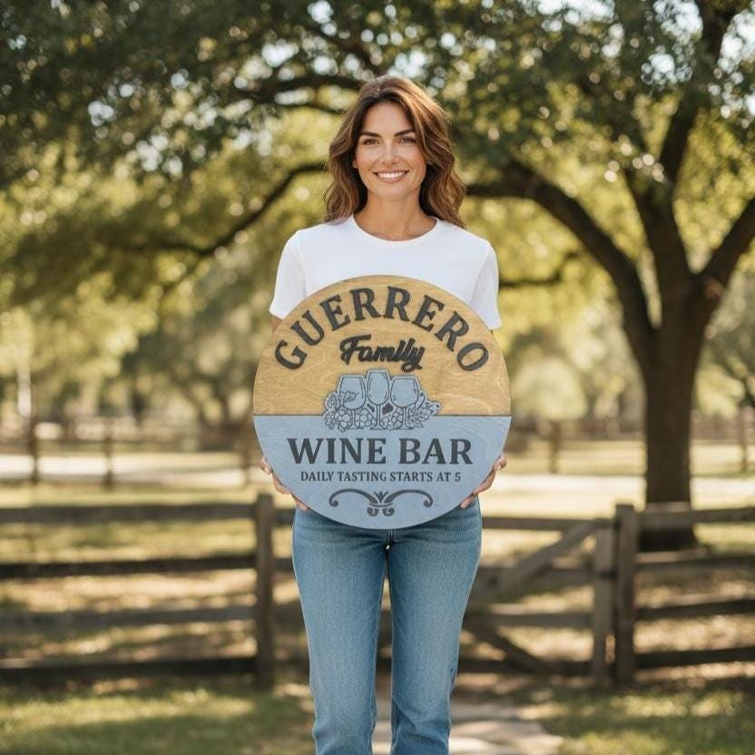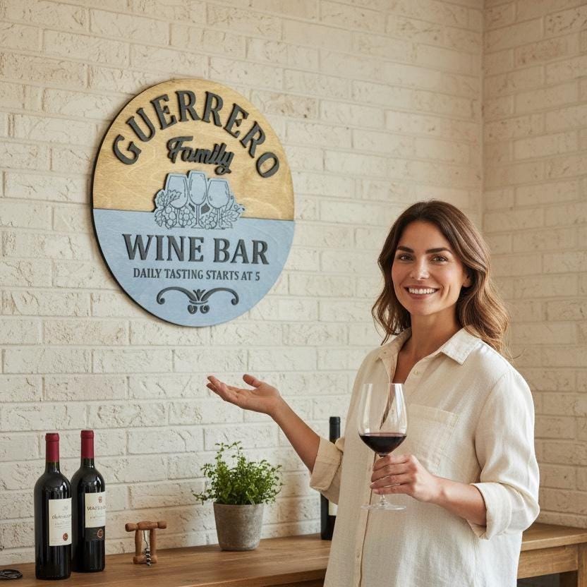 Elevate your home decor with our handcrafted and personalized real wood family wine bar sign! Perfect for wine enthusiasts, this unique piece showcases your family name, making it a delightful addition to any gathering. Available in various sizes and colors, it seamlessly fits your style. Celebrate your family’s love for wine with a custom touch. Ideal for gifts, housewarmings, or your own wine bar. Order now to create a lasting impression in your home! 🍷✨