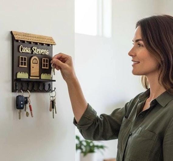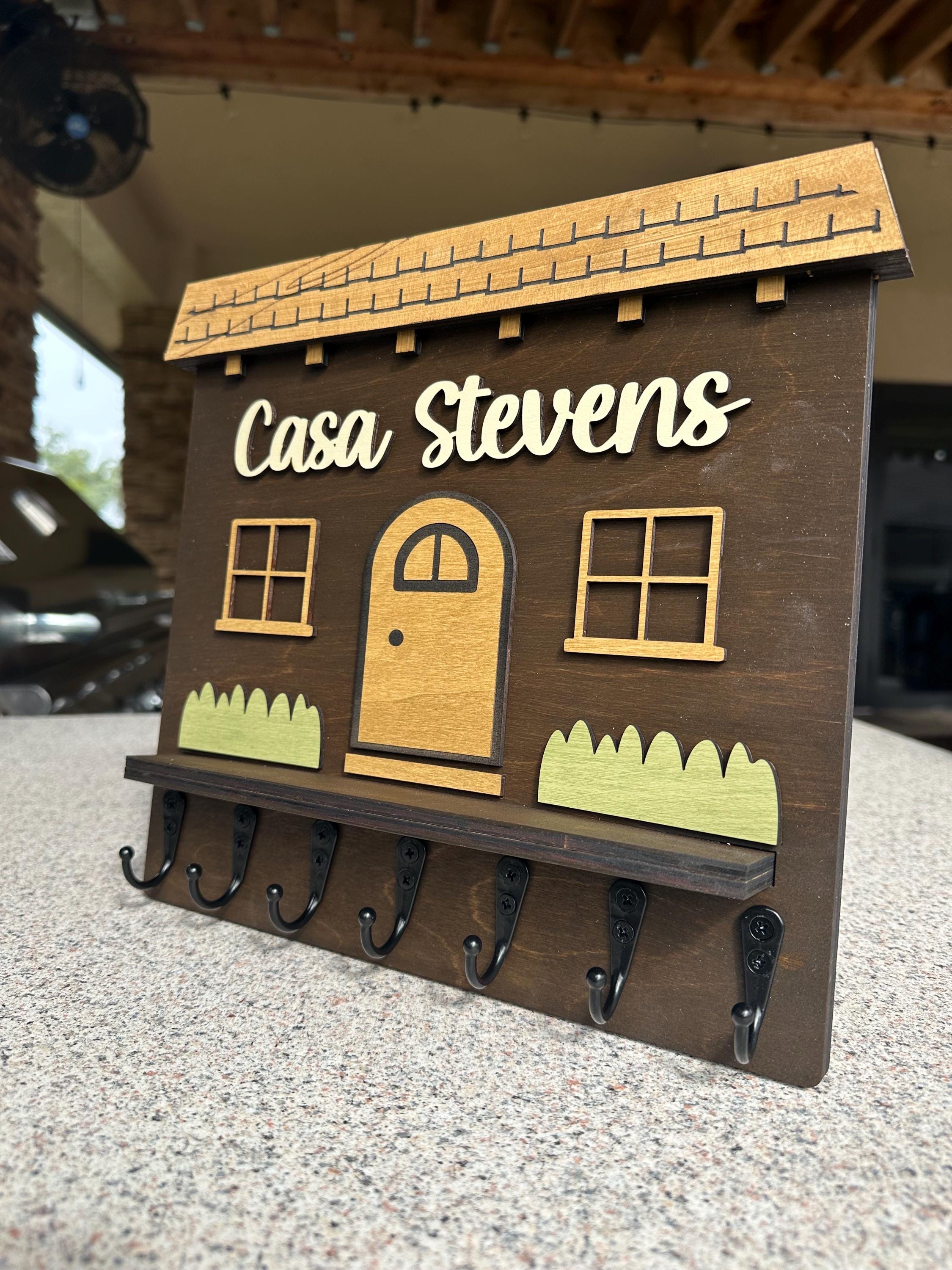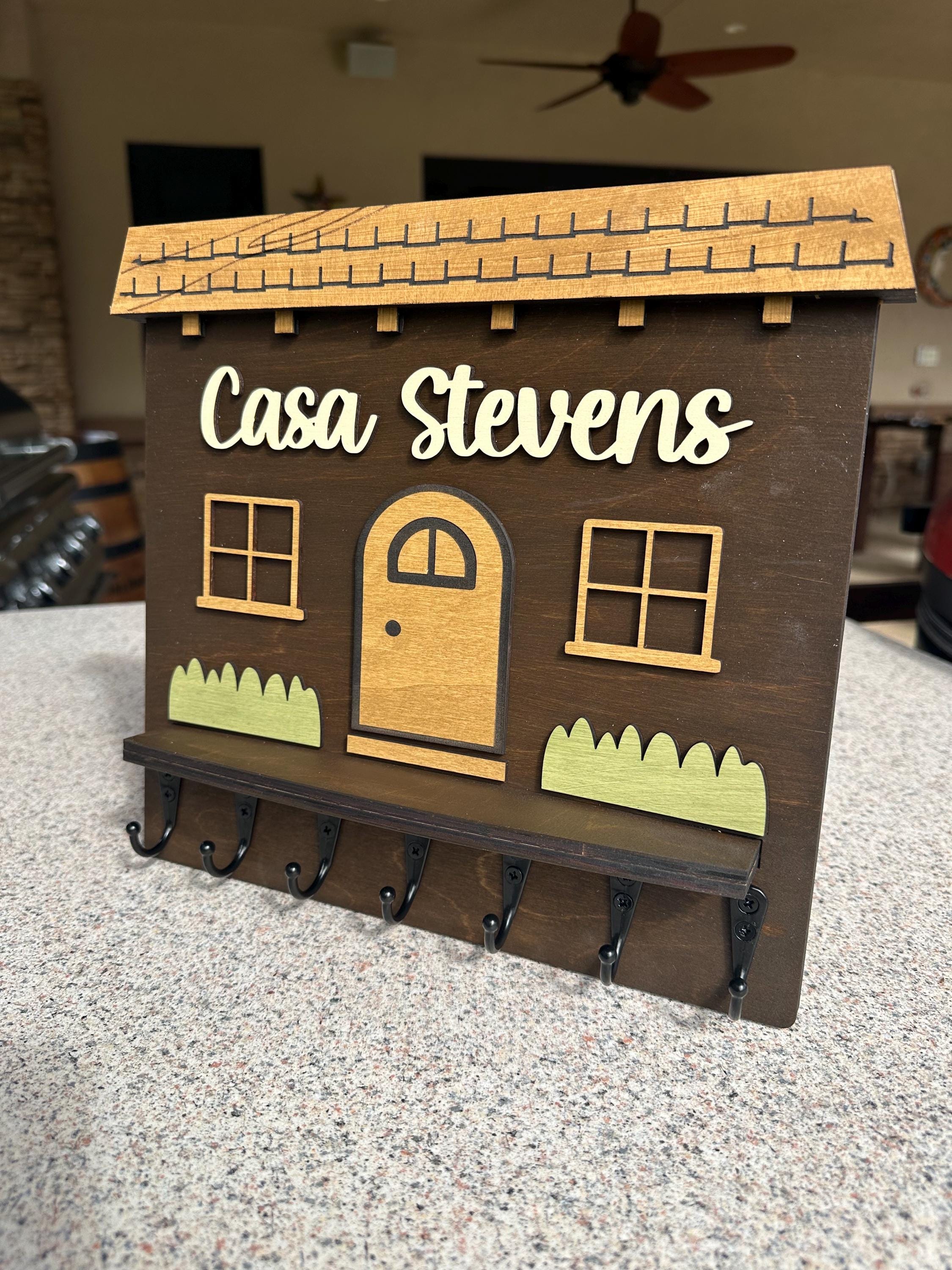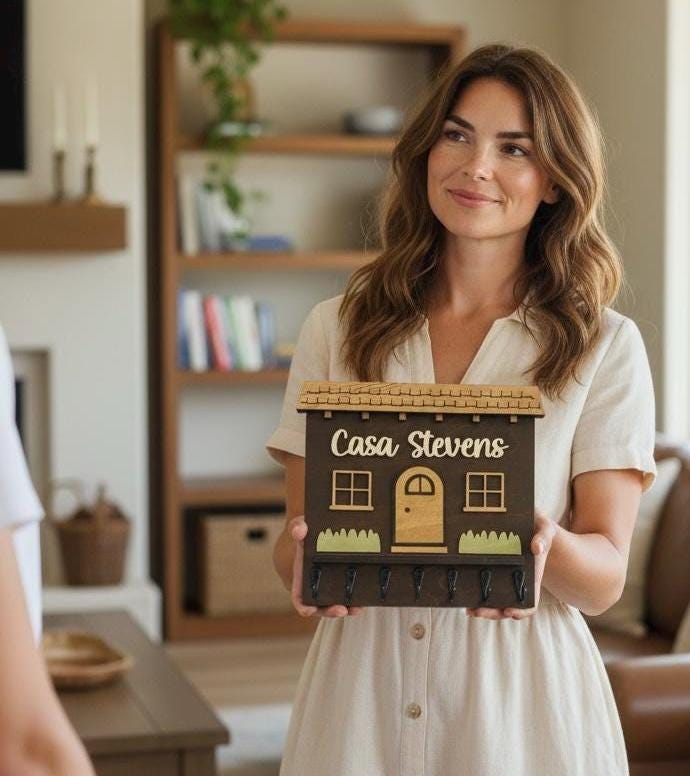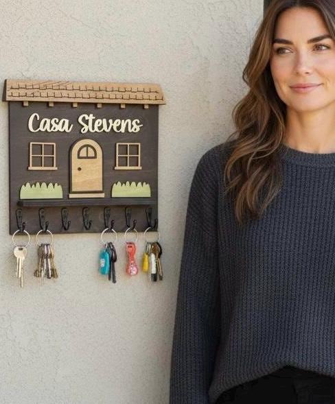 Elevate your home décor with our handcrafted and personalized Spanish house-shaped key holder! Featuring sturdy metal key hooks, this charming piece allows you to proudly display your family name. Available in various colors and sizes, it’s perfect for any entryway. Not only does it keep your keys organized, but it also adds a unique touch to your space. Ideal as a thoughtful gift or a stylish addition to your own home. Order yours today to blend functionality with personal flair!
