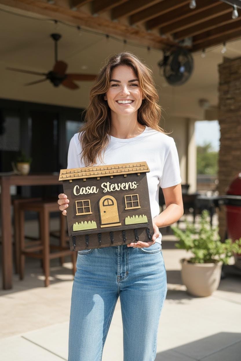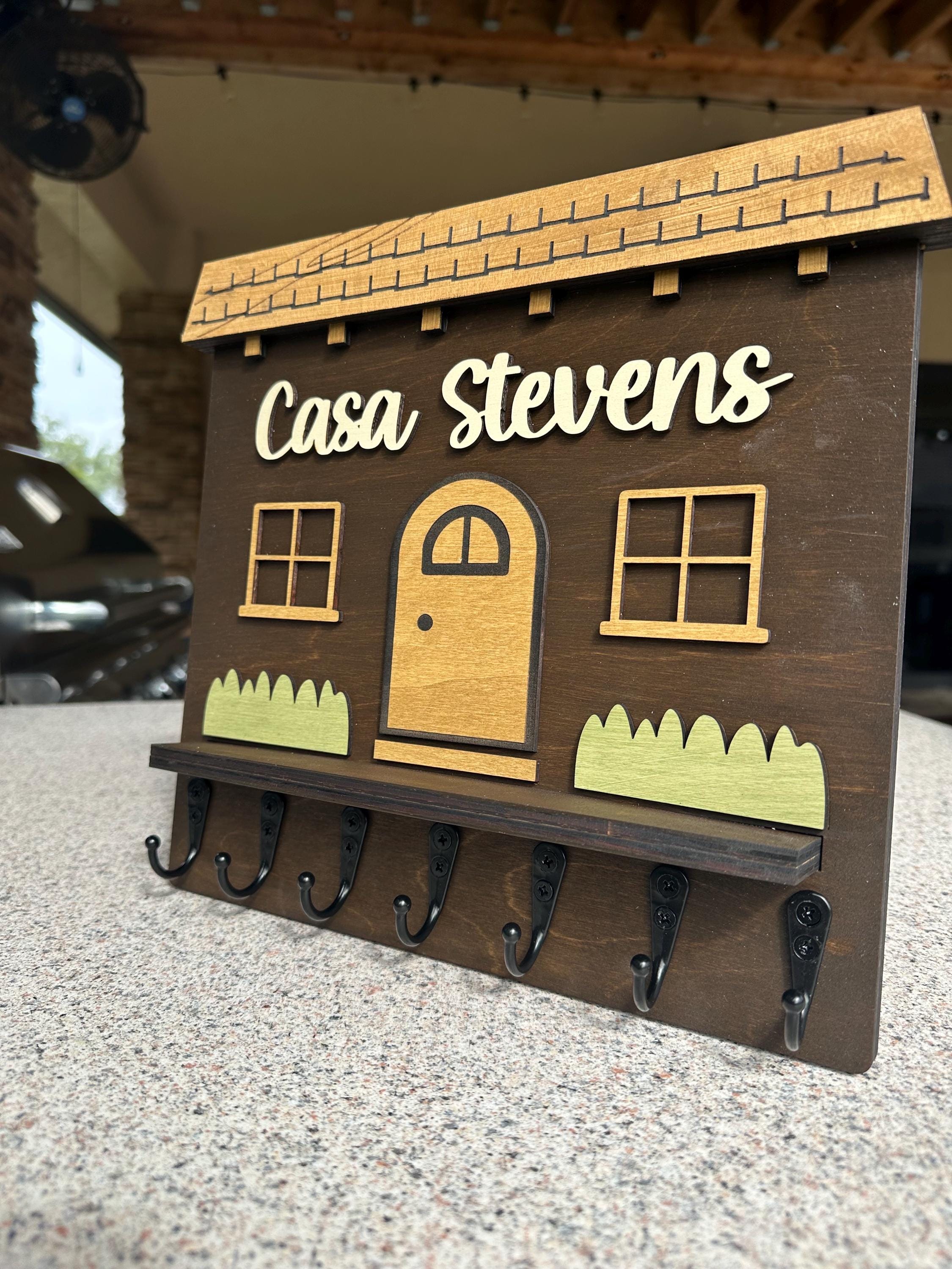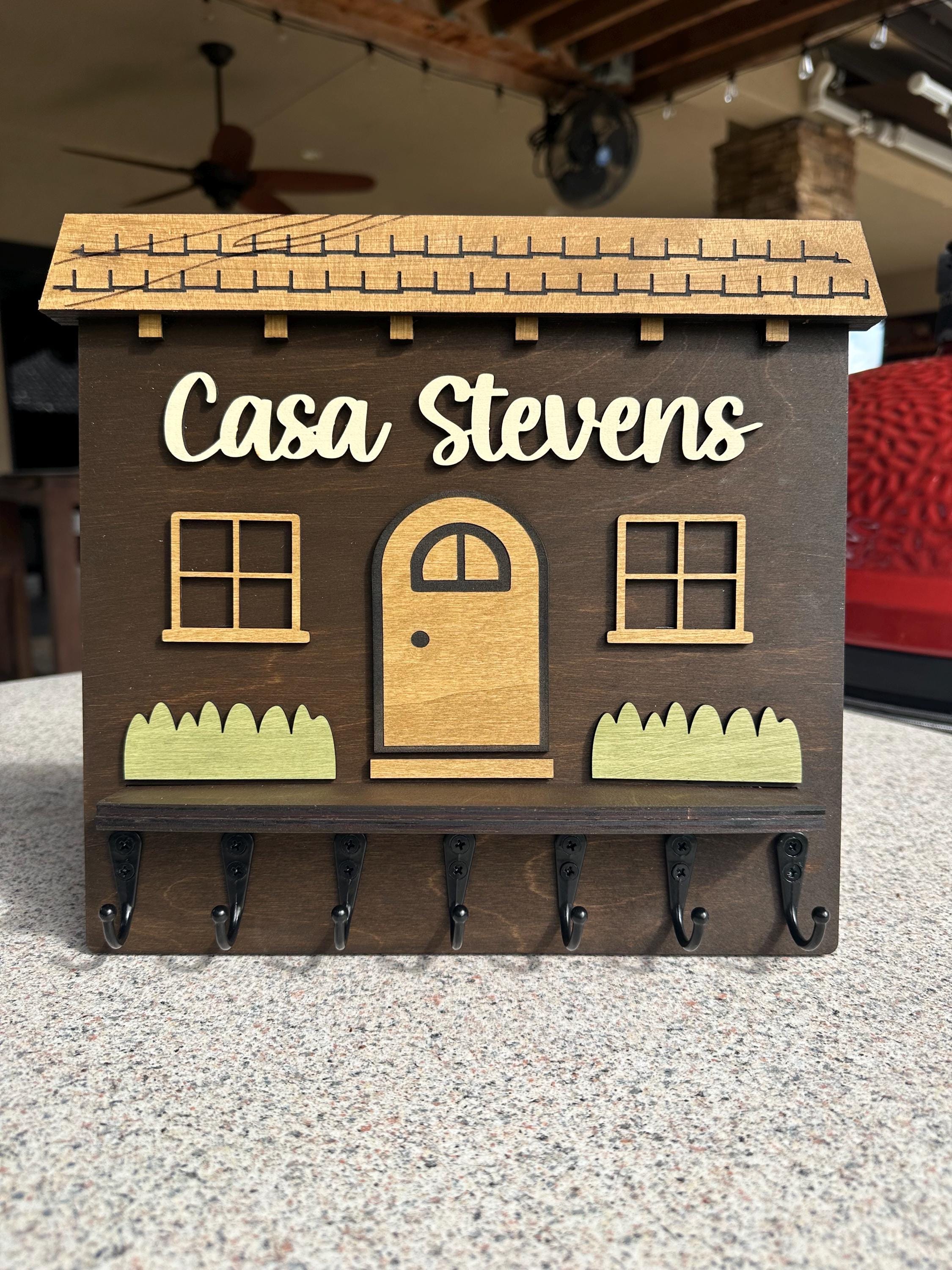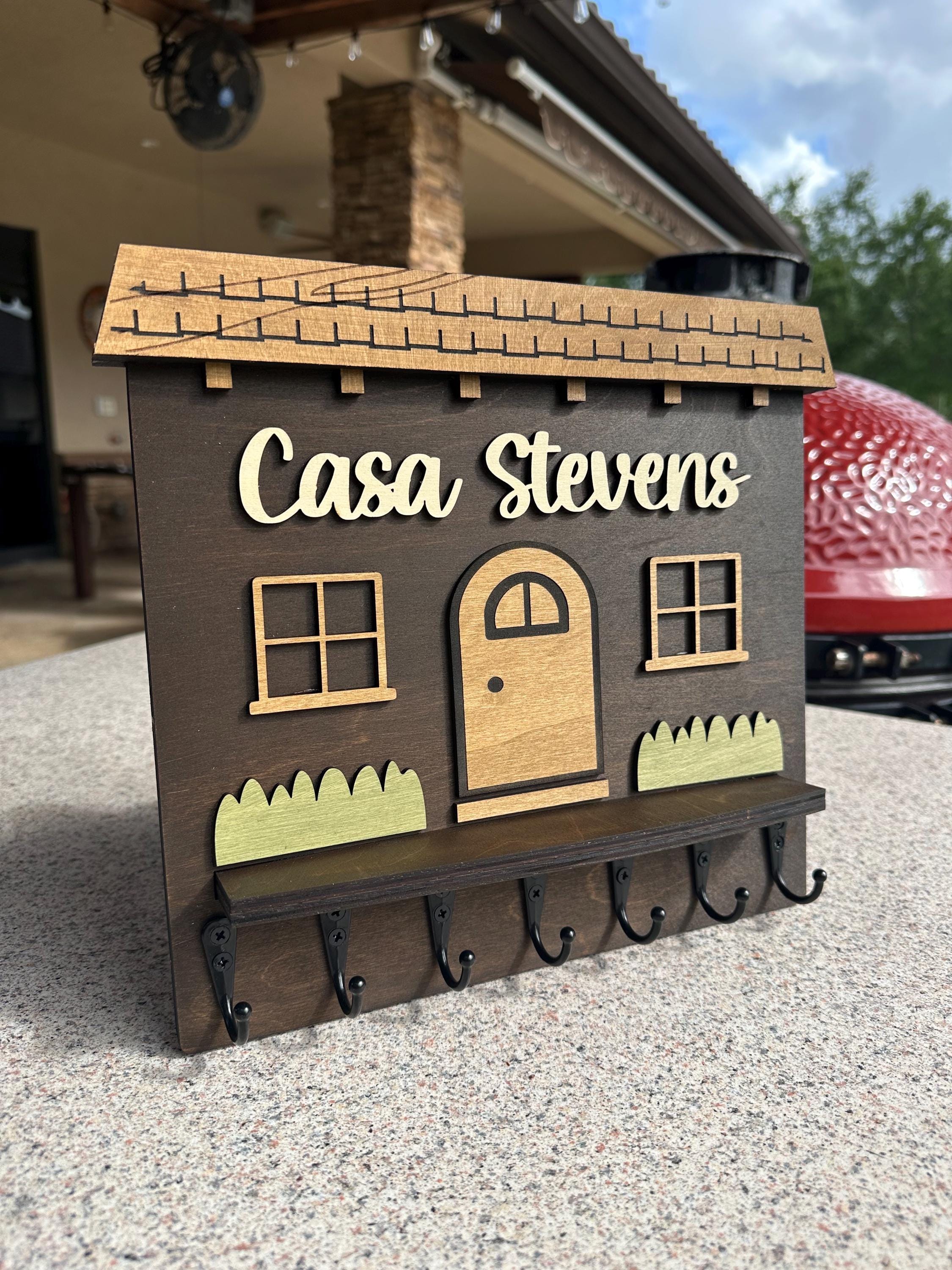 Elevate your home décor with our handcrafted and personalized Spanish house-shaped key holder! Featuring sturdy metal key hooks, this charming piece allows you to proudly display your family name. Available in various colors and sizes, it’s perfect for any entryway. Not only does it keep your keys organized, but it also adds a unique touch to your space. Ideal as a thoughtful gift or a stylish addition to your own home. Order yours today to blend functionality with personal flair!