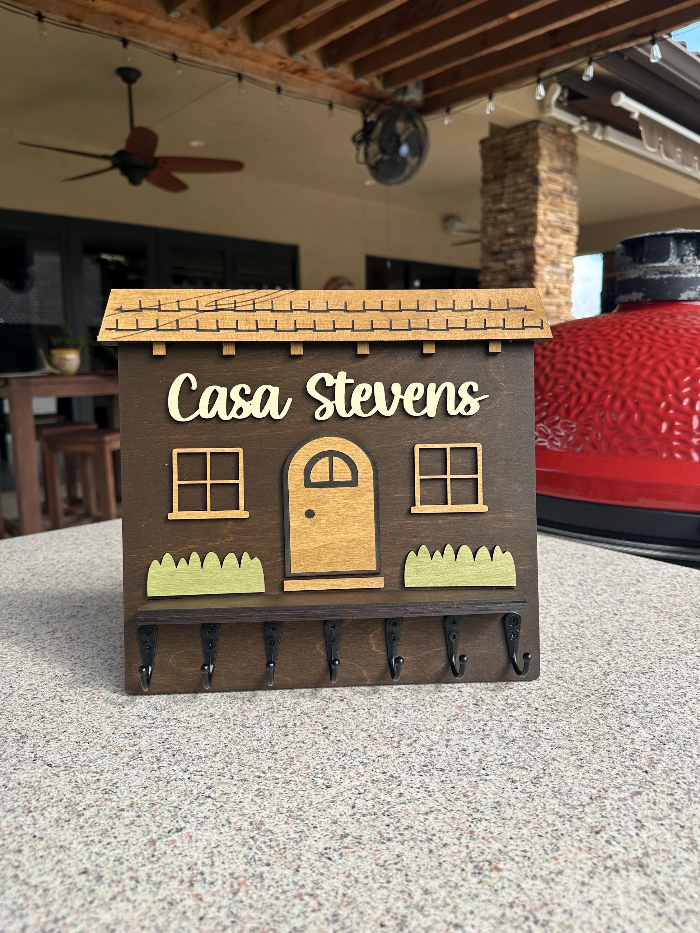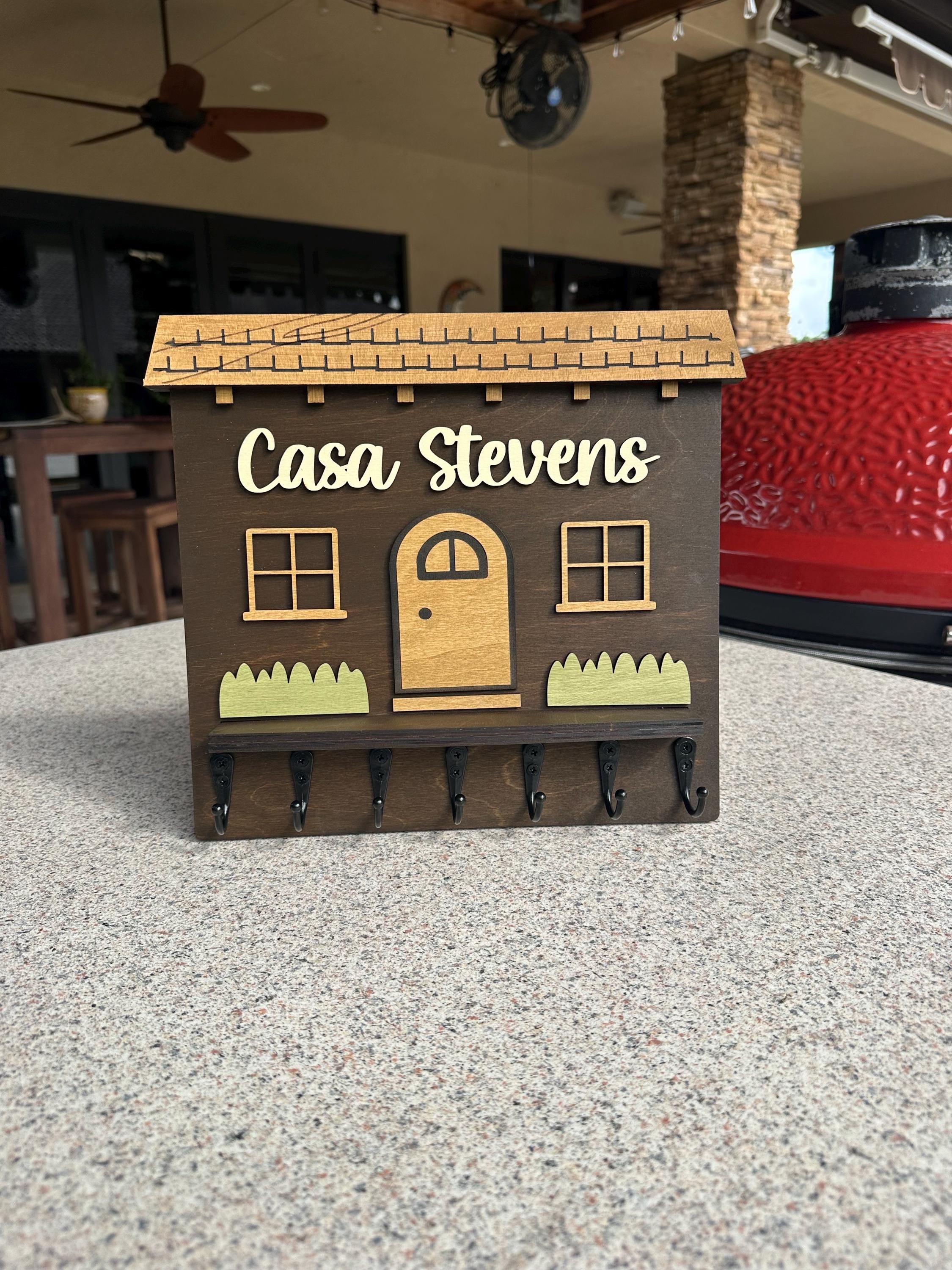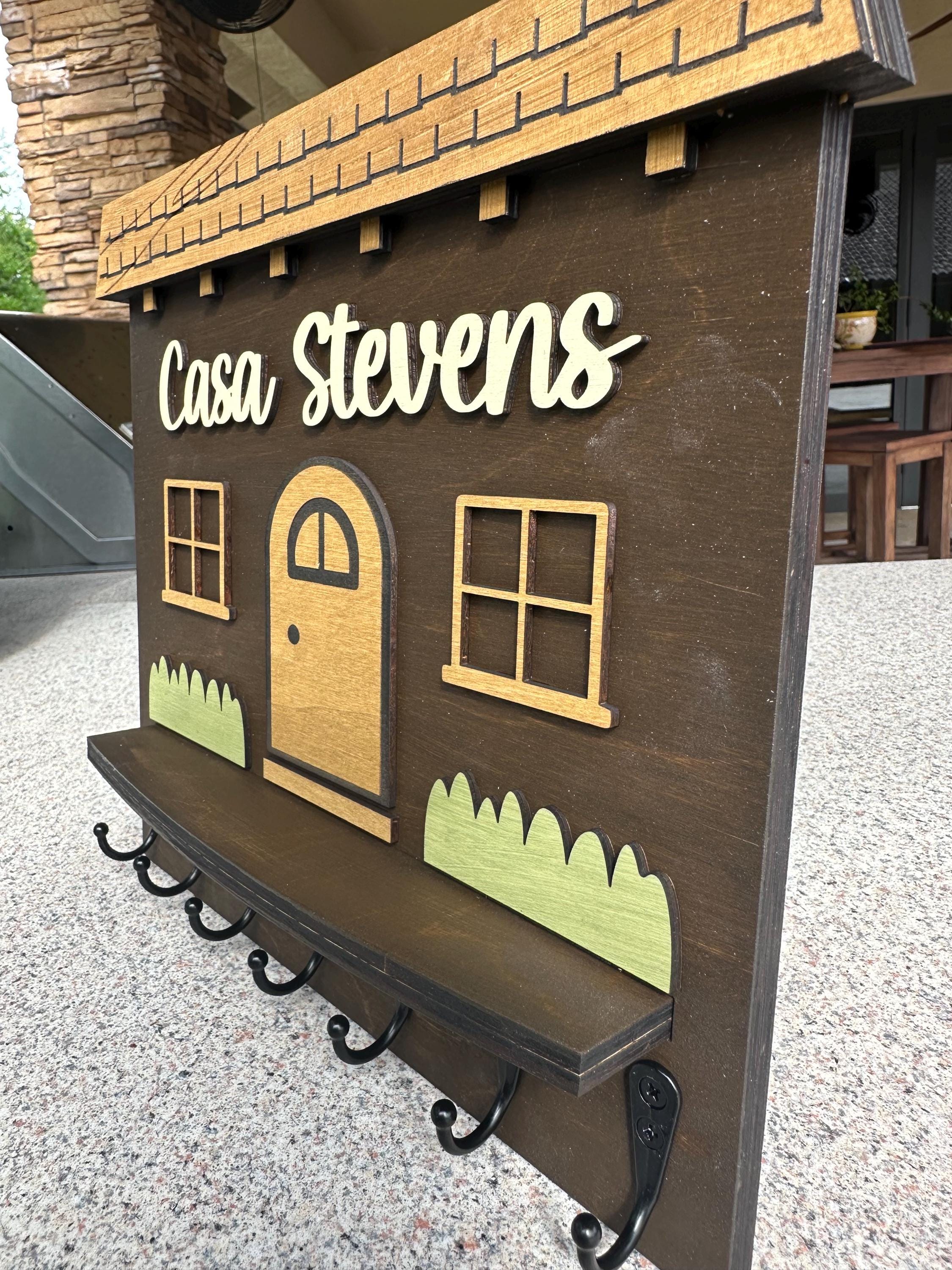 Personalized Metal Hook Key Holder - Handcrafted Spanish House Design, Display Your Family Name, Custom Sizes & Colors
