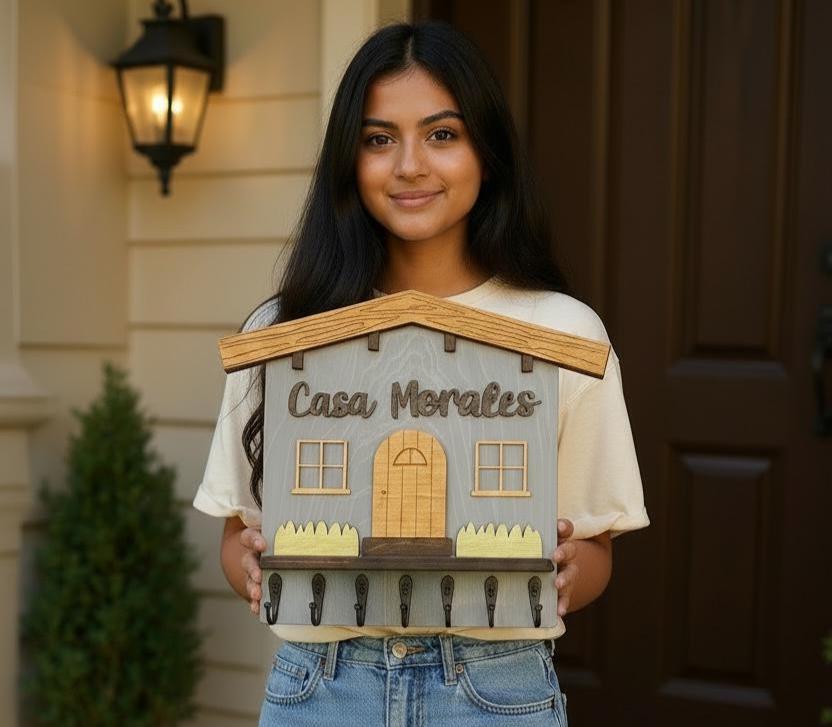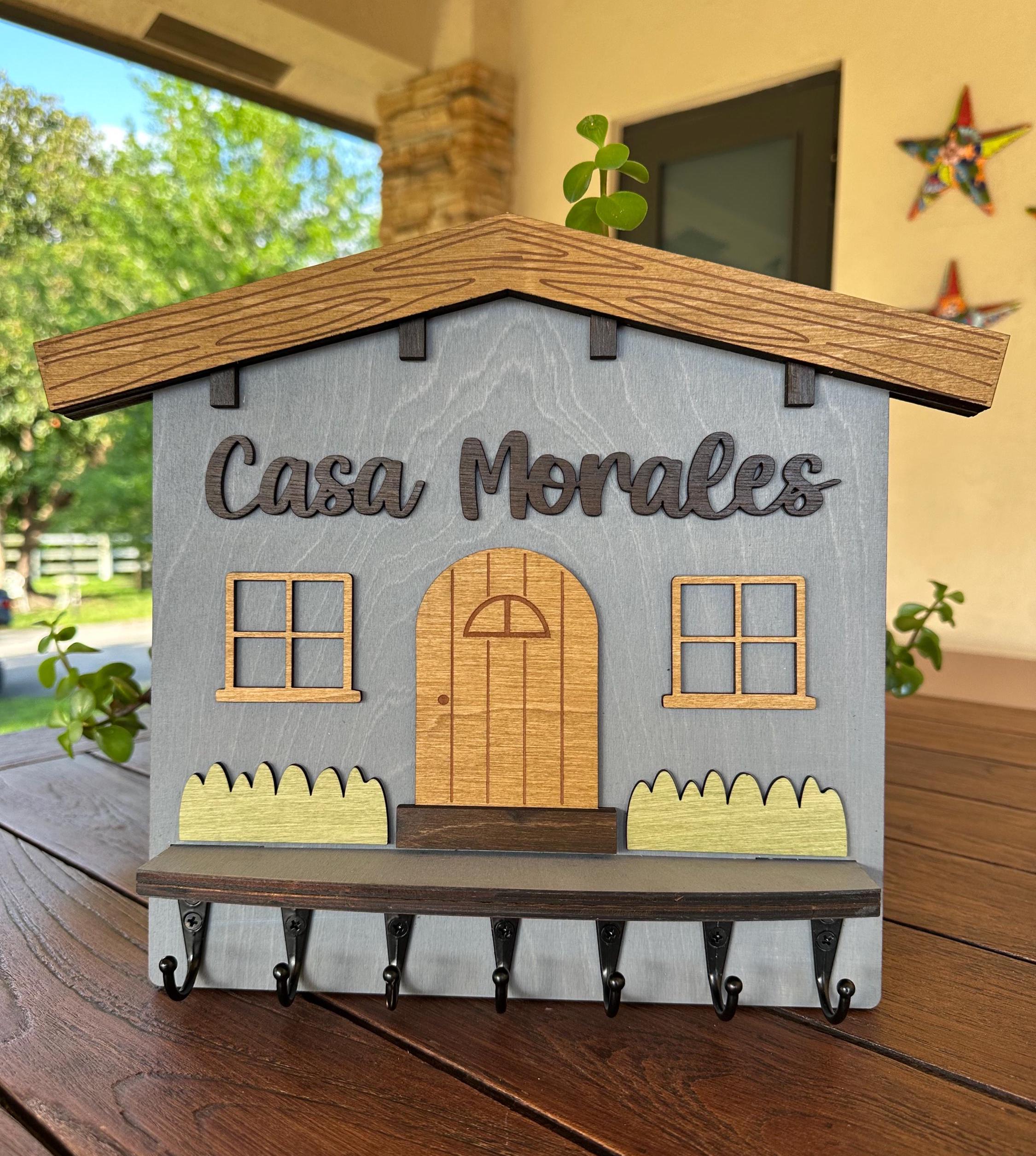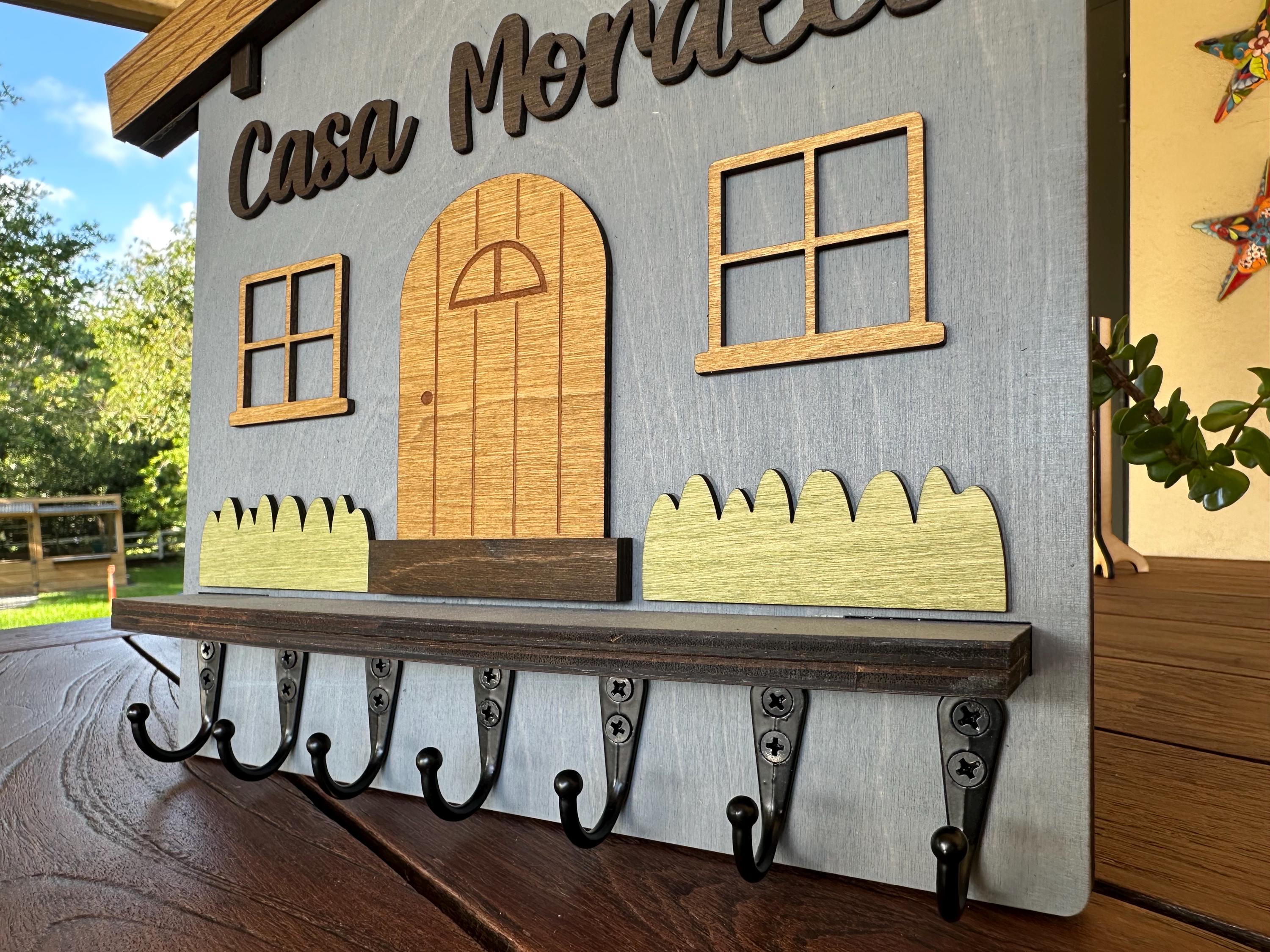 Welcome to our charming custom key holder in the shape of a home! Perfect for organizing your keys while adding a personal touch to your decor. Available in two sizes and a variety of colors, this key holder can be personalized with your family name, making it a delightful addition to any entryway. Whether you're looking for a gift or a unique piece for your home, our key holder combines function and style. Make your space feel warm and inviting today!