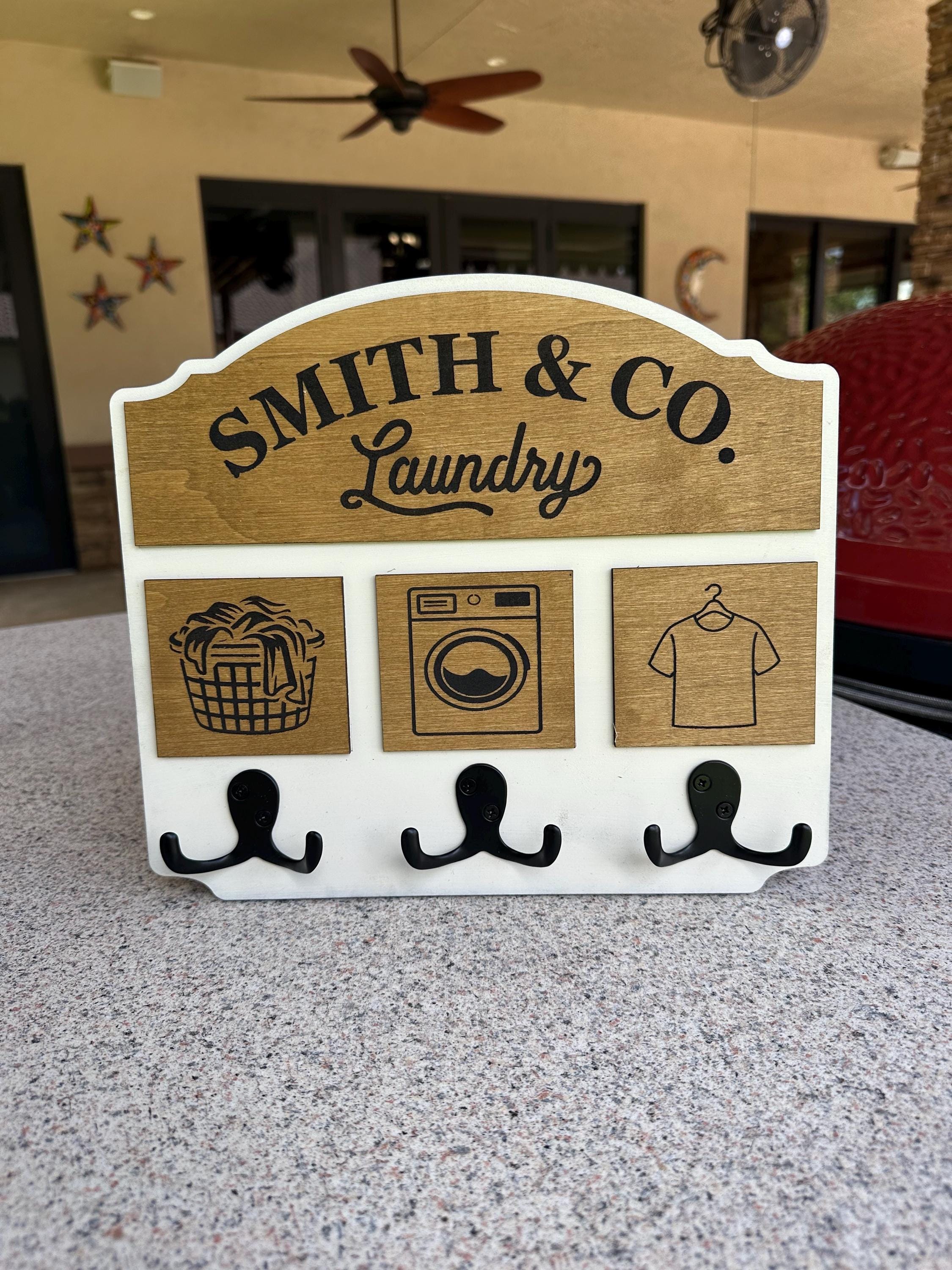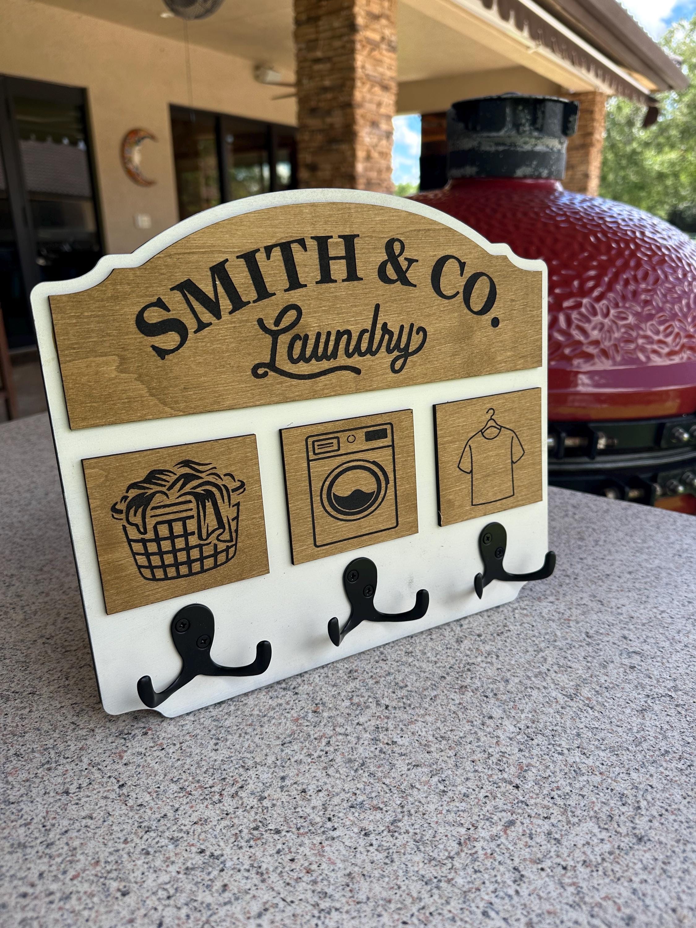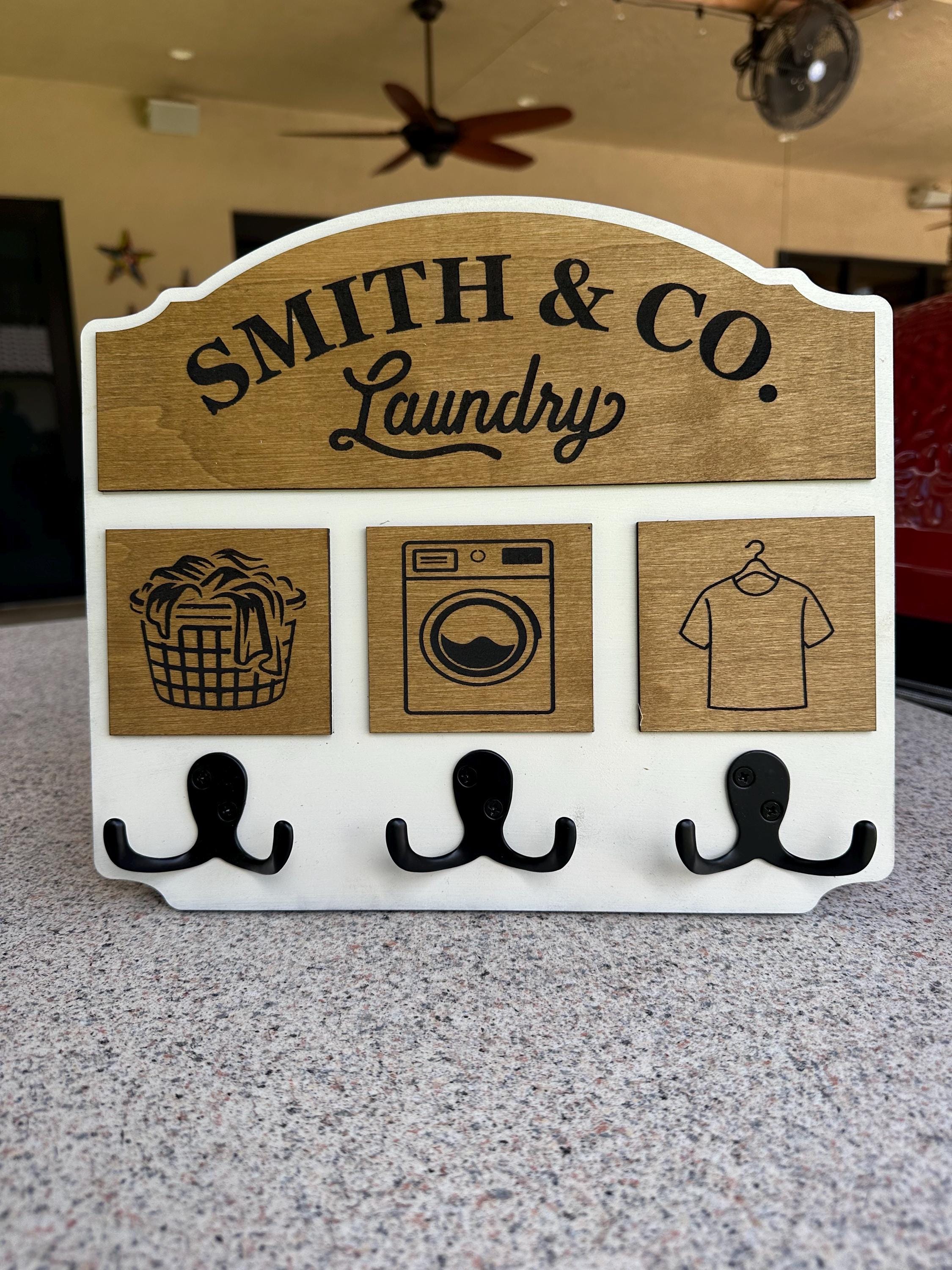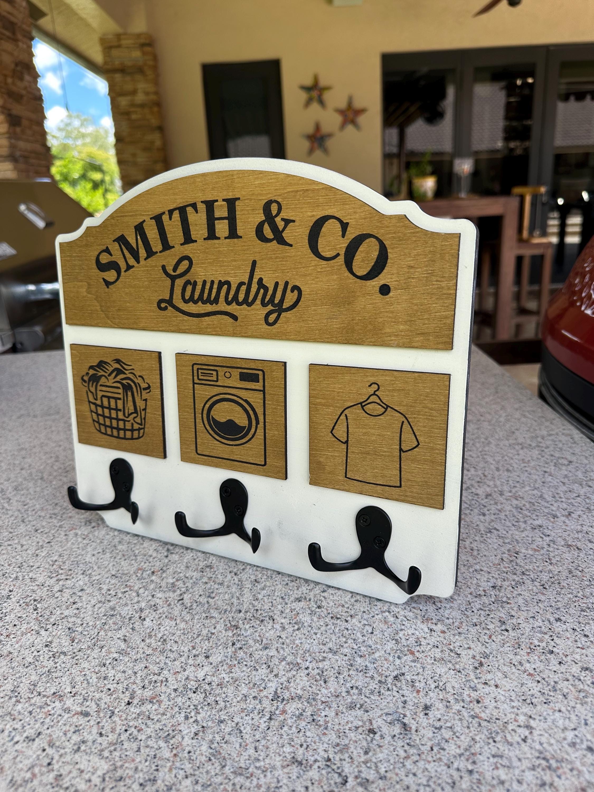 Elevate your laundry space with our handcrafted and personalized laundry room sign with hooks! This charming decor piece will add a touch of warmth and functionality to your home. Perfect for organizing your essentials, our sign is customizable to suit your style. Crafted with love from high-quality materials, it makes a thoughtful gift for housewarmings or special occasions. Make laundry day a little brighter with this delightful addition to your home. Order yours today for a unique touch!