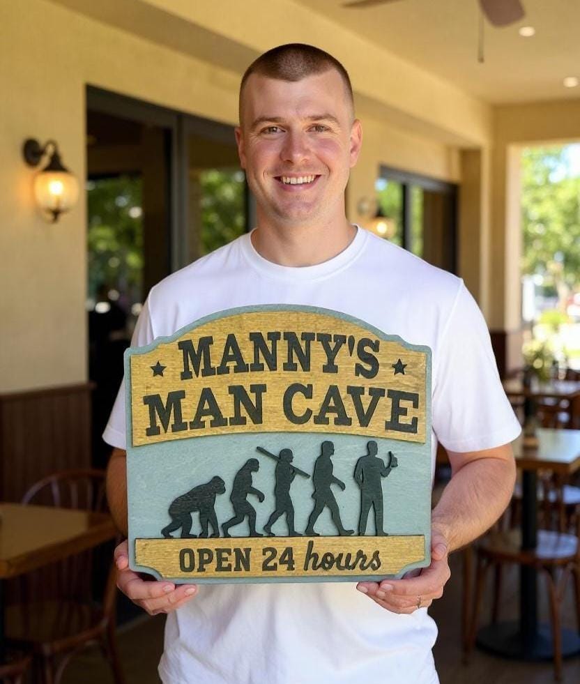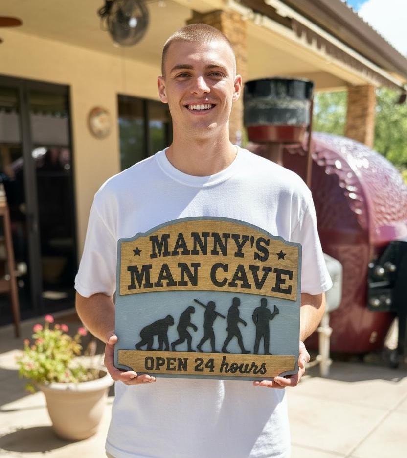 Transform your space with our personalized man cave decor sign! Crafted just for you, our 100% custom signs allow you to choose the color, text, and message that fits your style. Whether it’s for a birthday, holiday, or just because, these signs make the perfect gift for any man cave enthusiast. Available in different sizes to suit your needs, this unique decor piece will add a personal touch to your favorite spot. Order yours today and make your man cave truly one-of-a-kind!