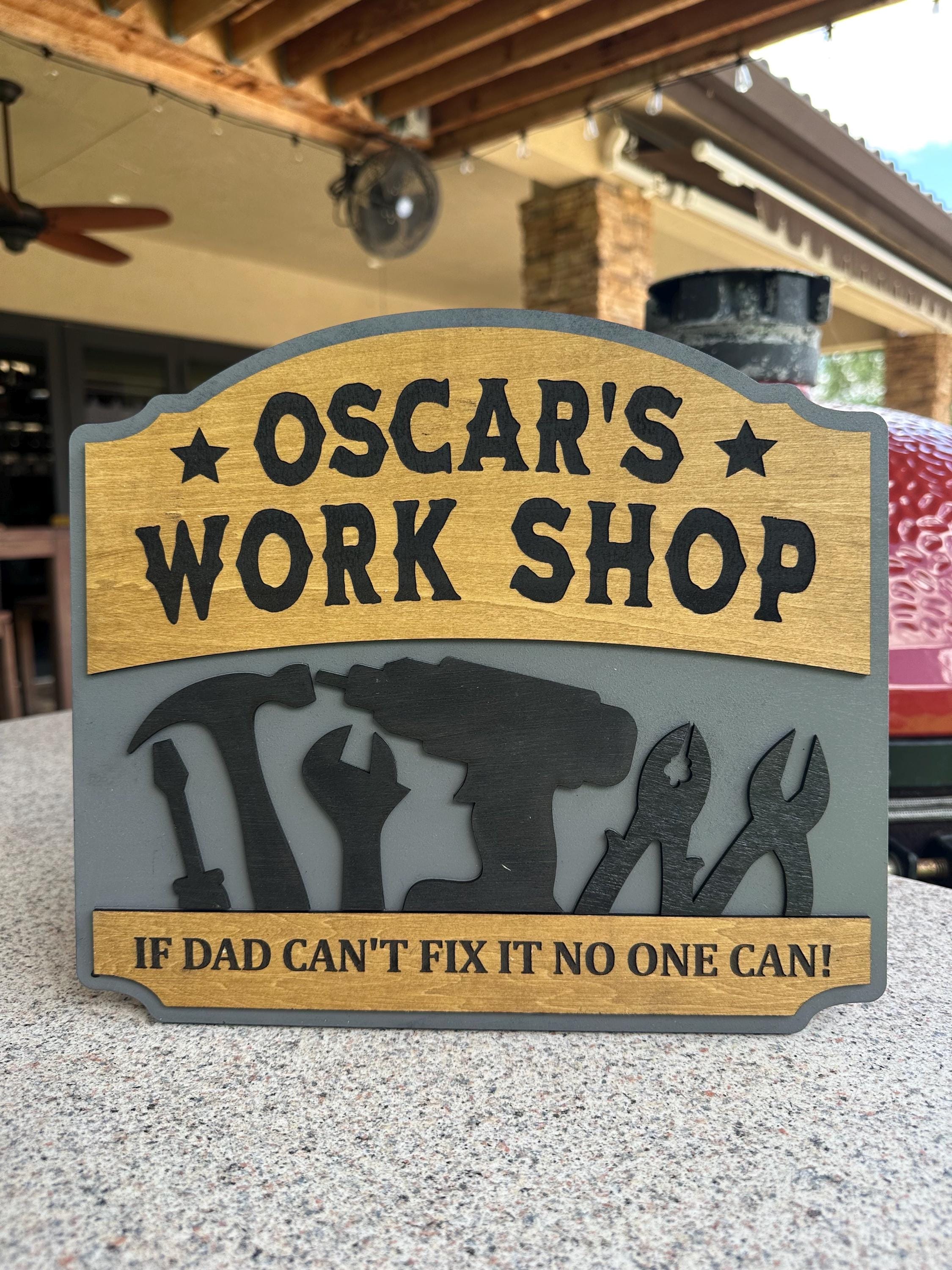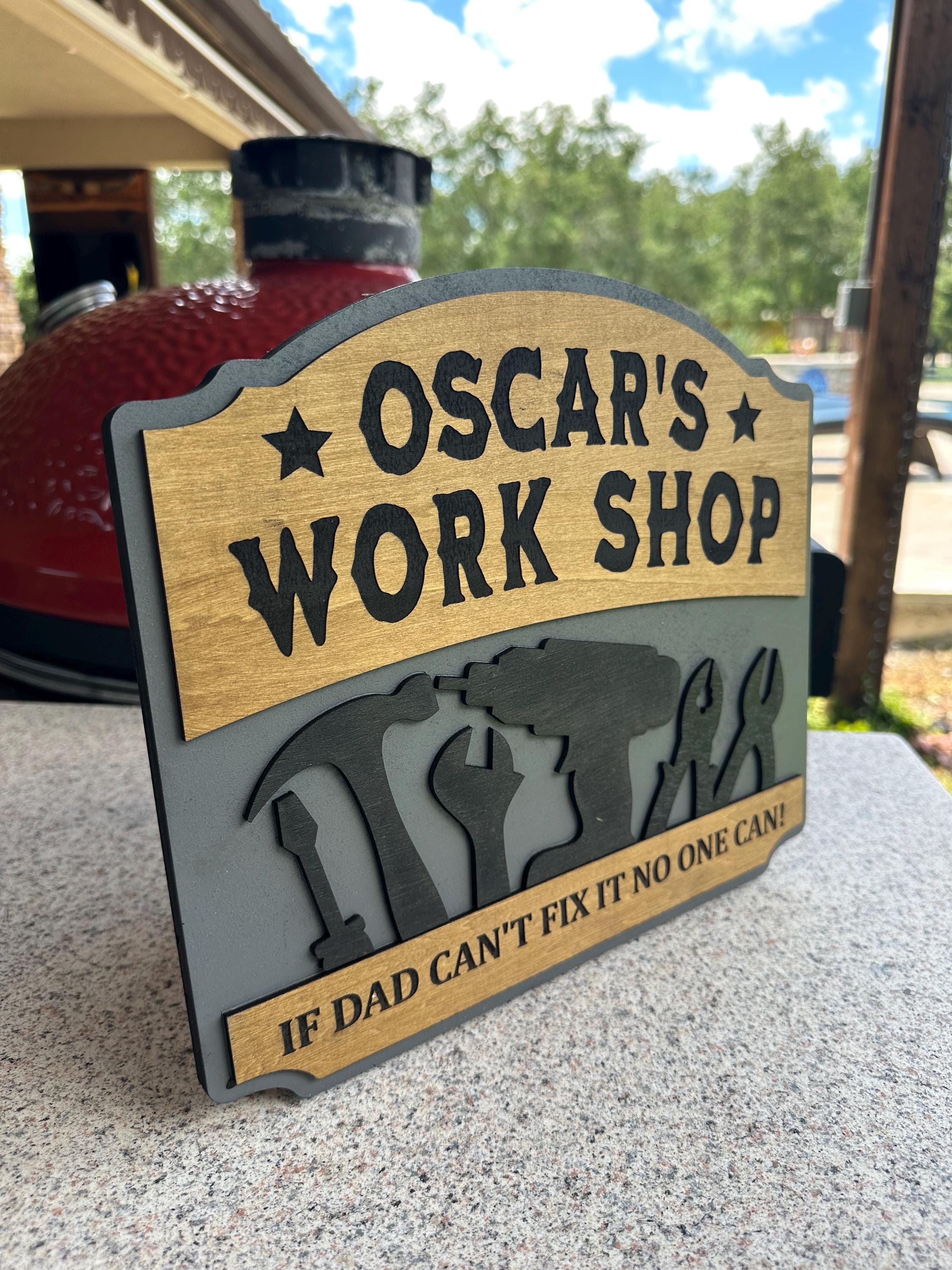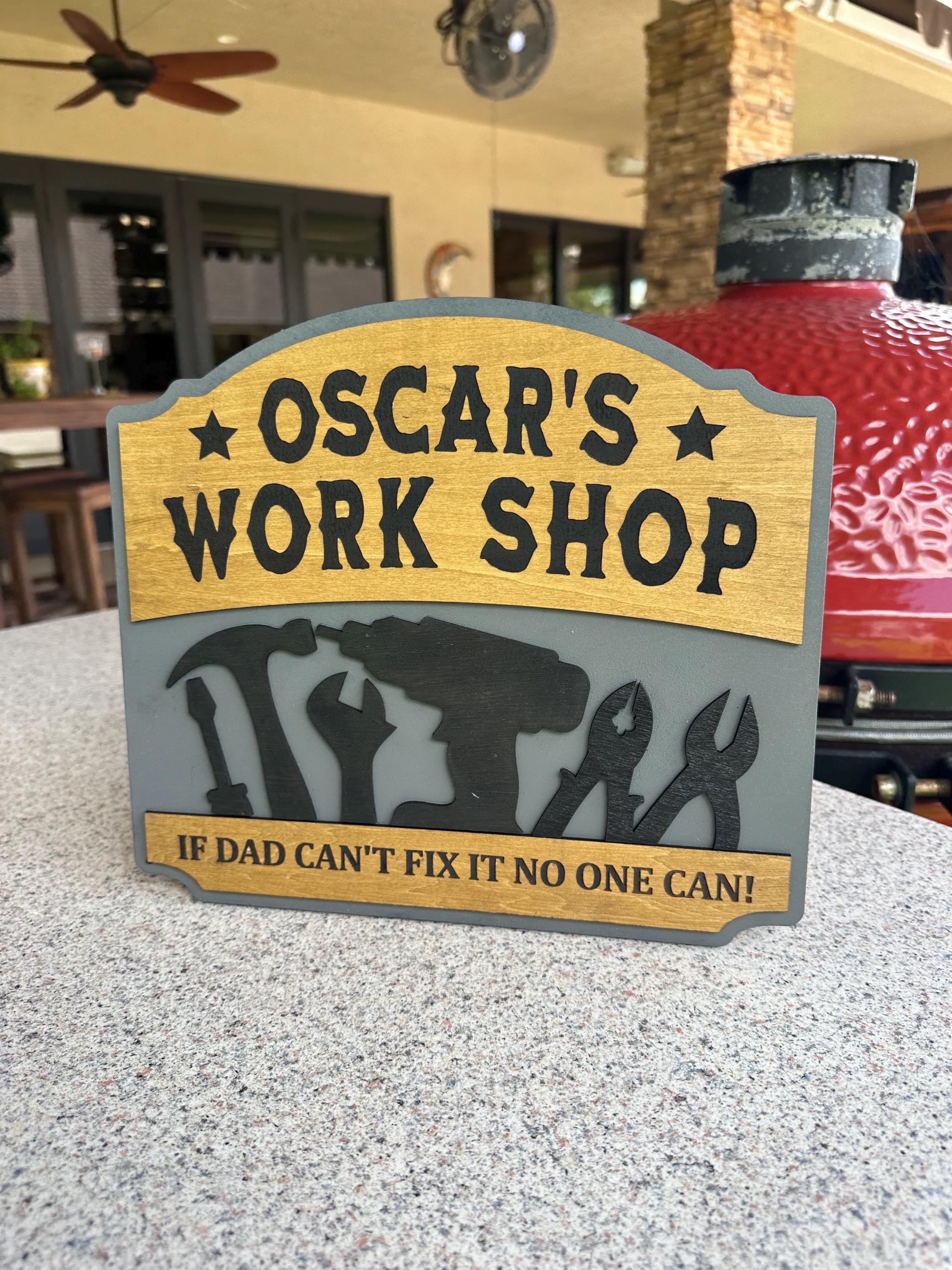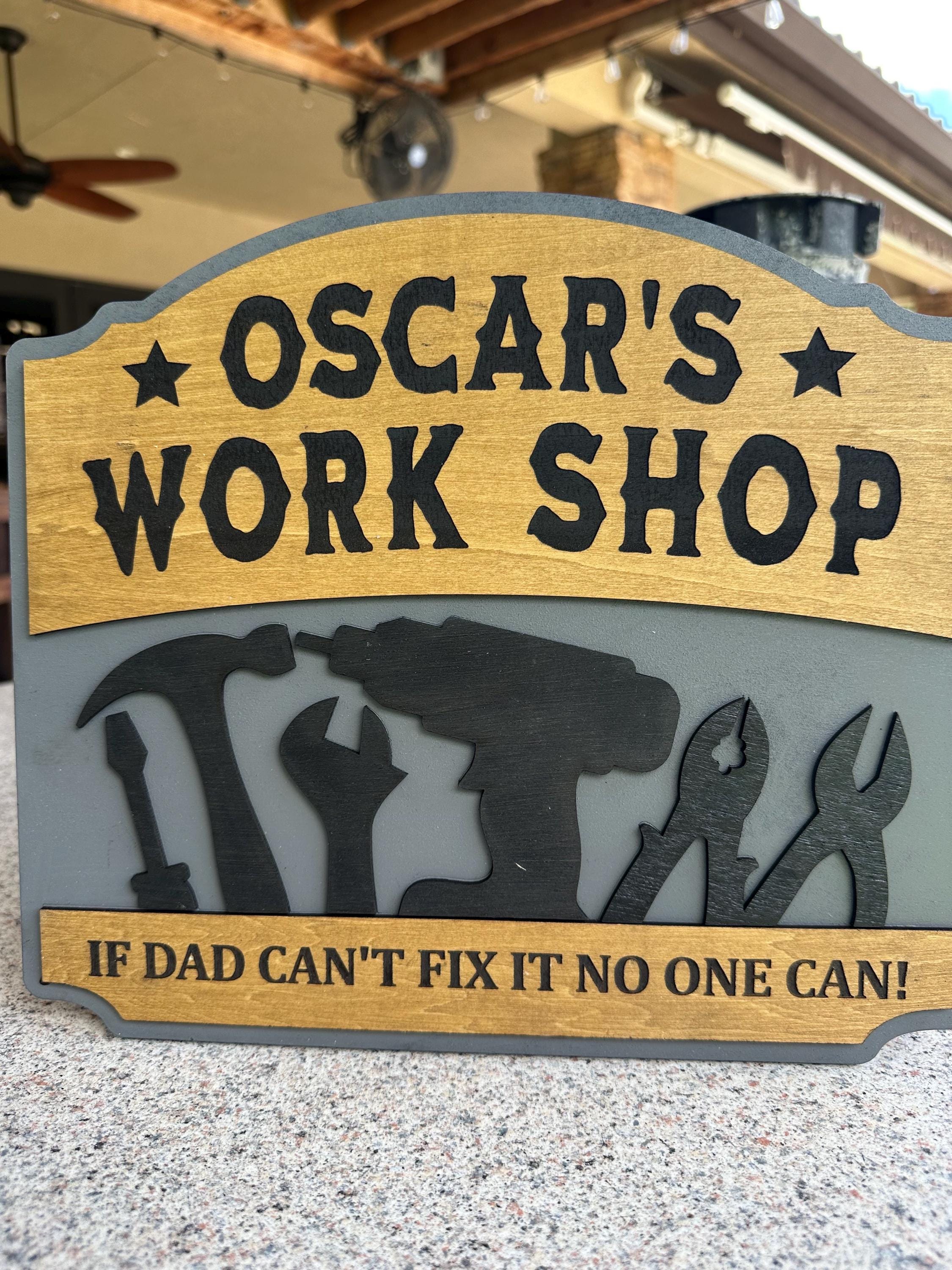 Transform your dad's workspace with a personalized workshop sign! Choose your favorite color, custom text, special message, and size for a truly unique gift. Each sign is 100% handcrafted from real wood, ensuring durability and charm. Perfect for Father's Day, birthdays, or just because! Make his workshop feel like home with a customized touch. Order now and create a memorable piece that he'll cherish forever!