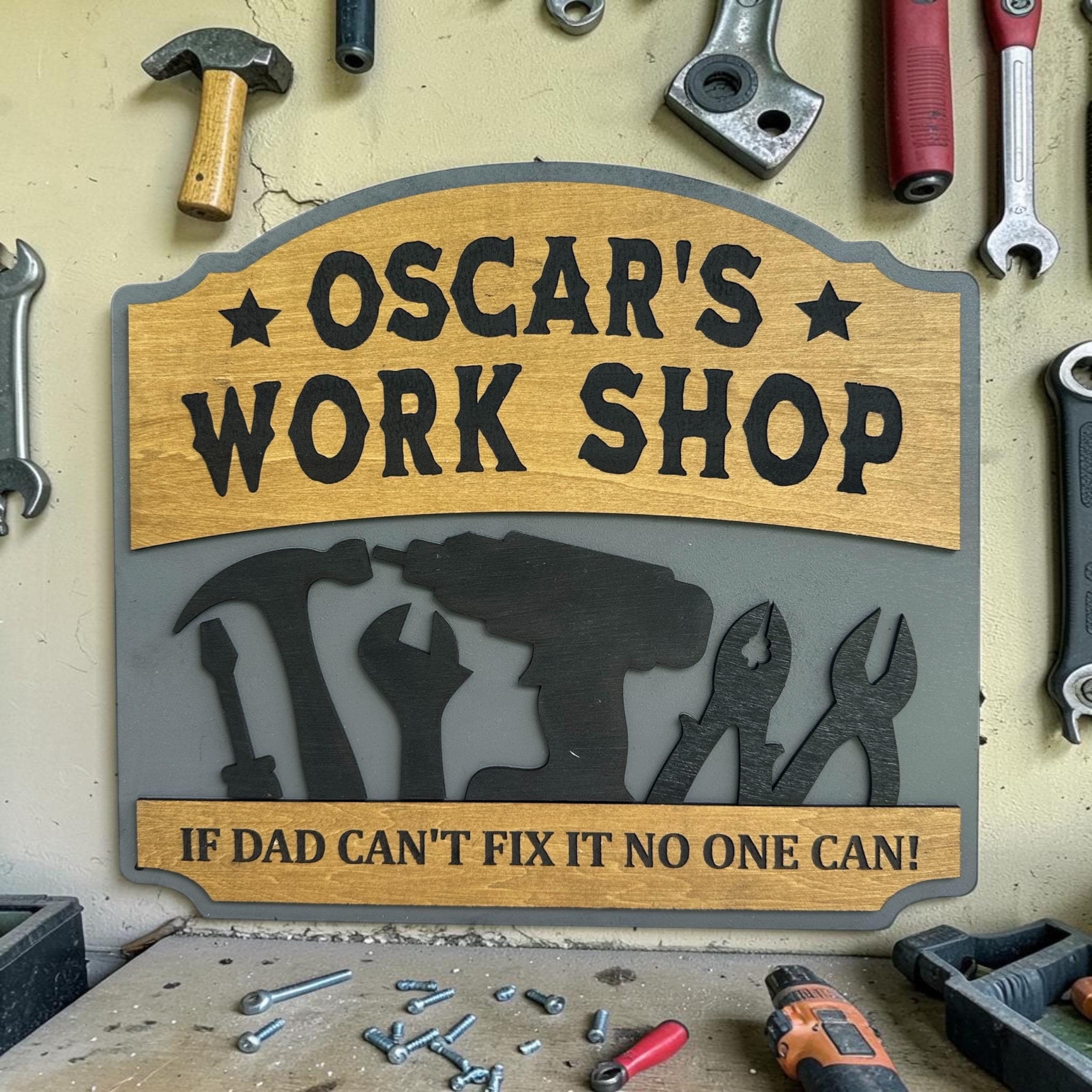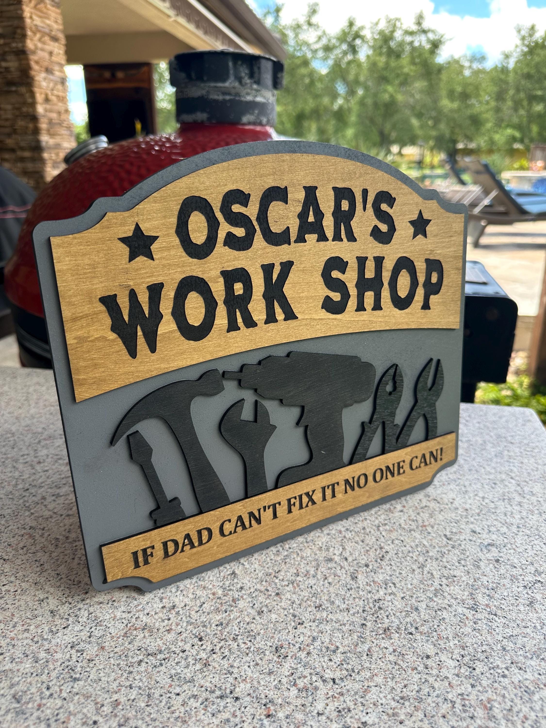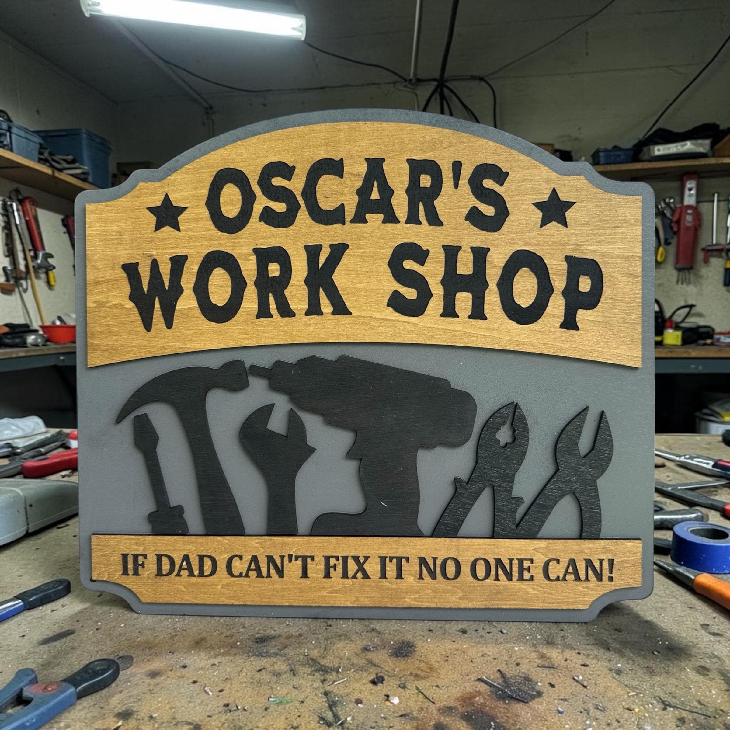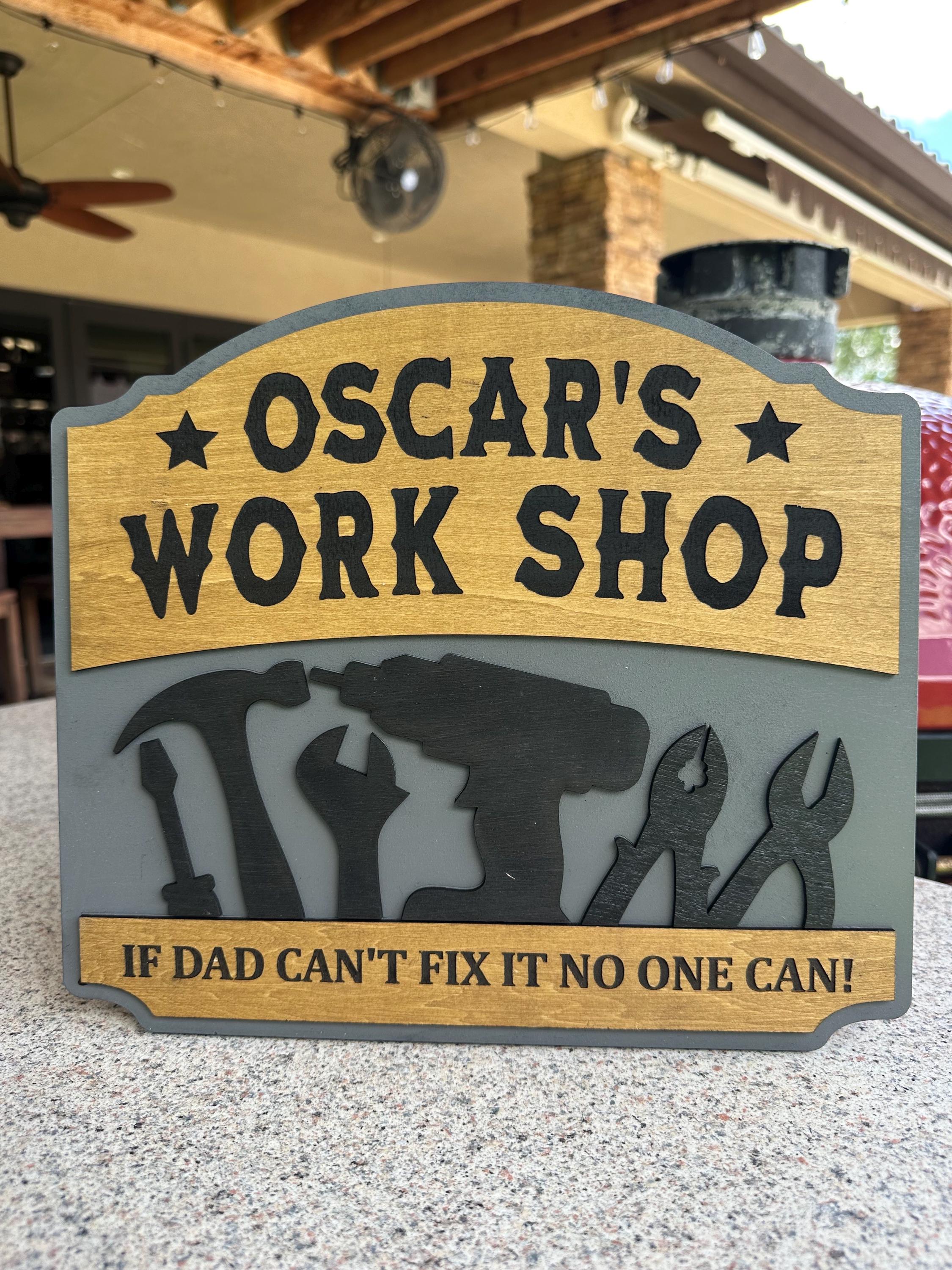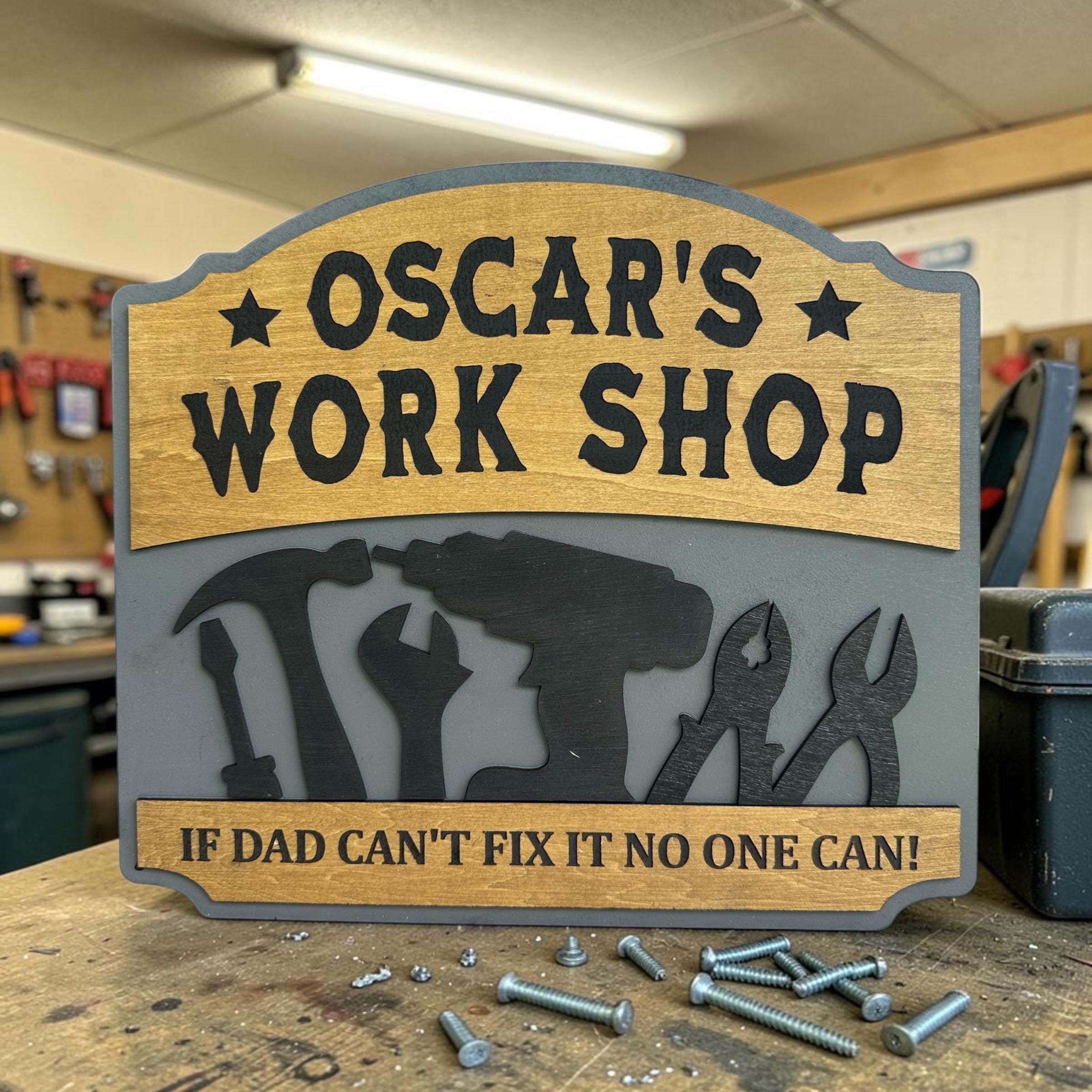 Transform your dad's workspace with a personalized workshop sign! Choose your favorite color, custom text, special message, and size for a truly unique gift. Each sign is 100% handcrafted from real wood, ensuring durability and charm. Perfect for Father's Day, birthdays, or just because! Make his workshop feel like home with a customized touch. Order now and create a memorable piece that he'll cherish forever!