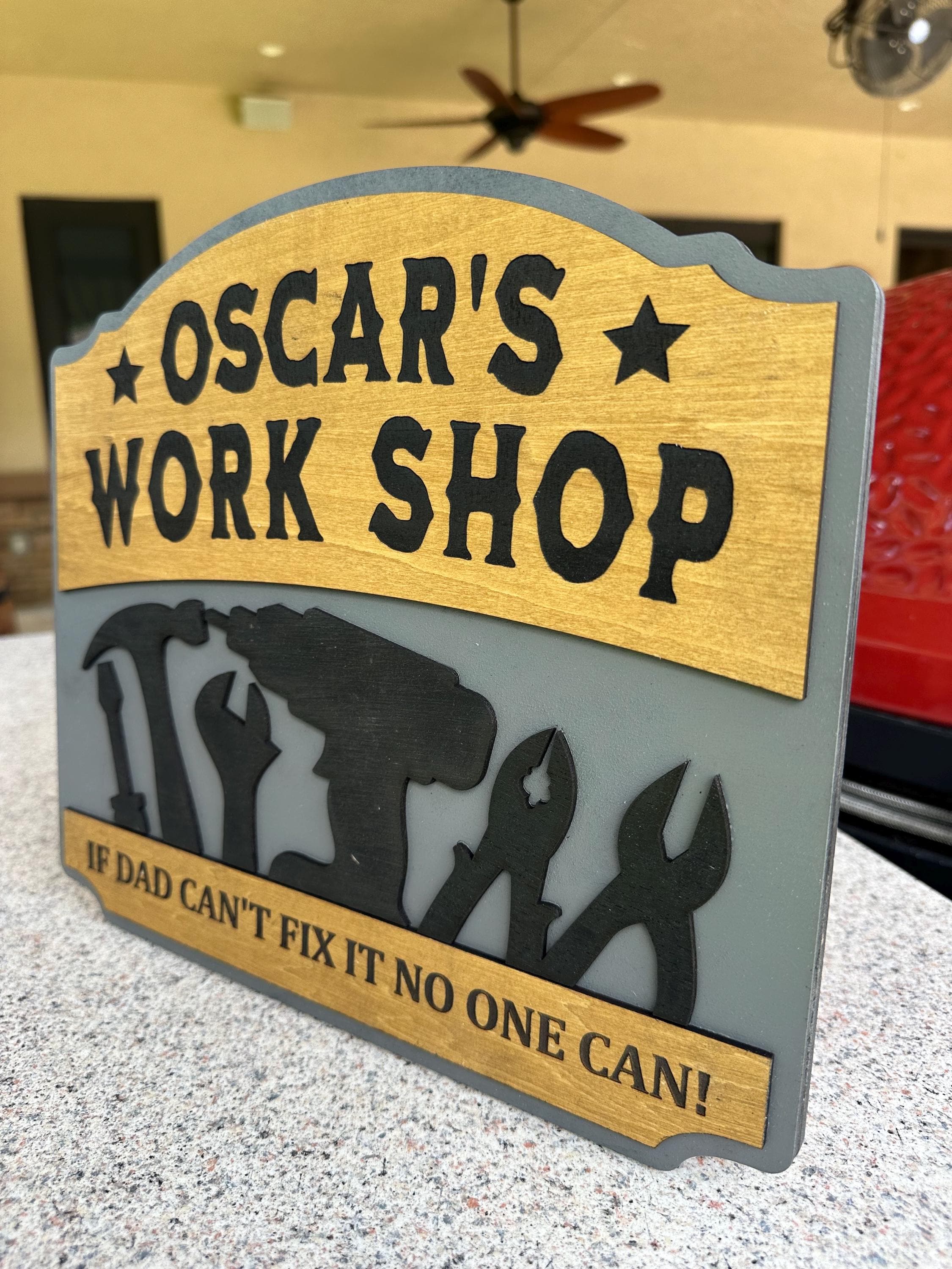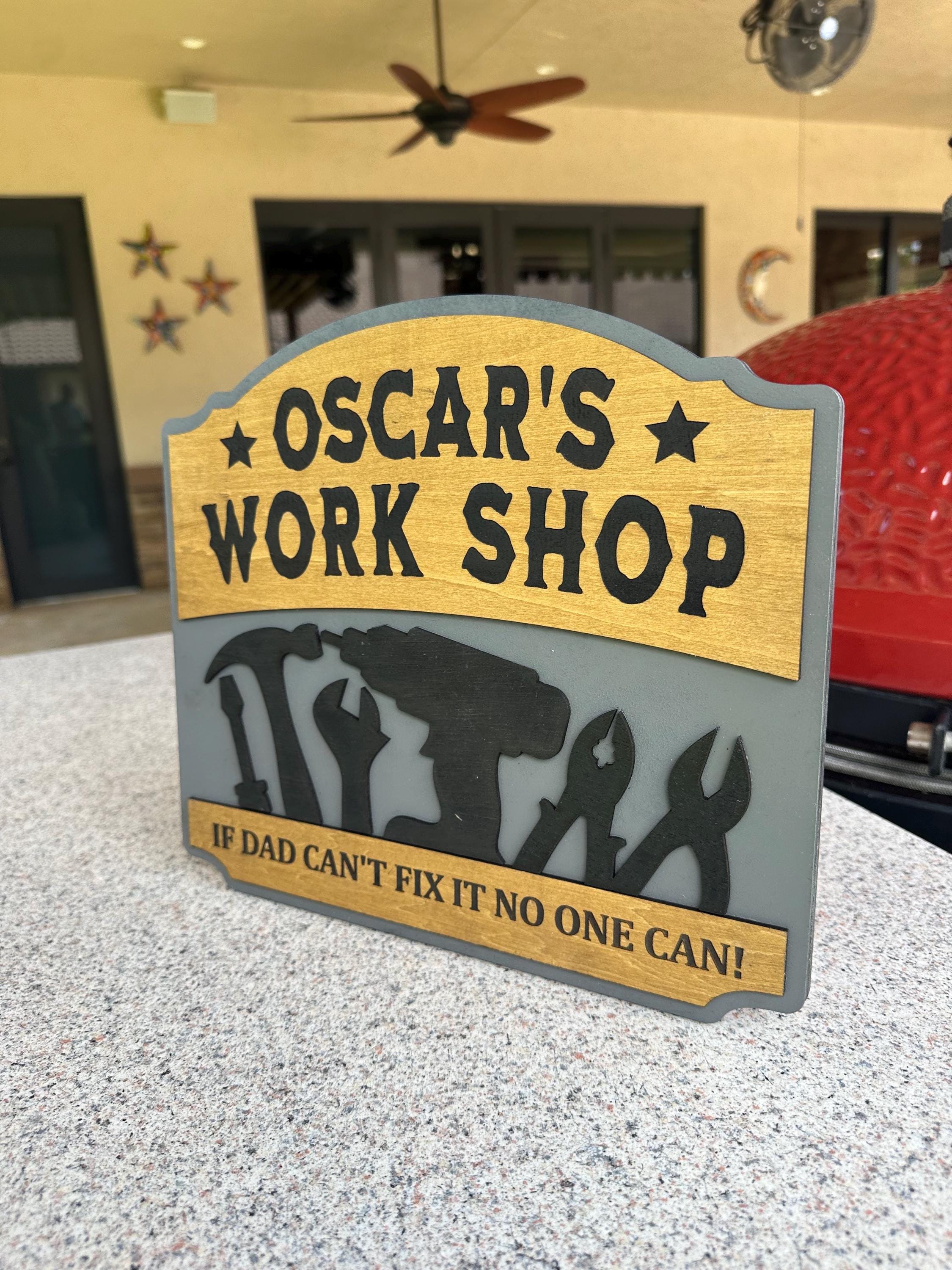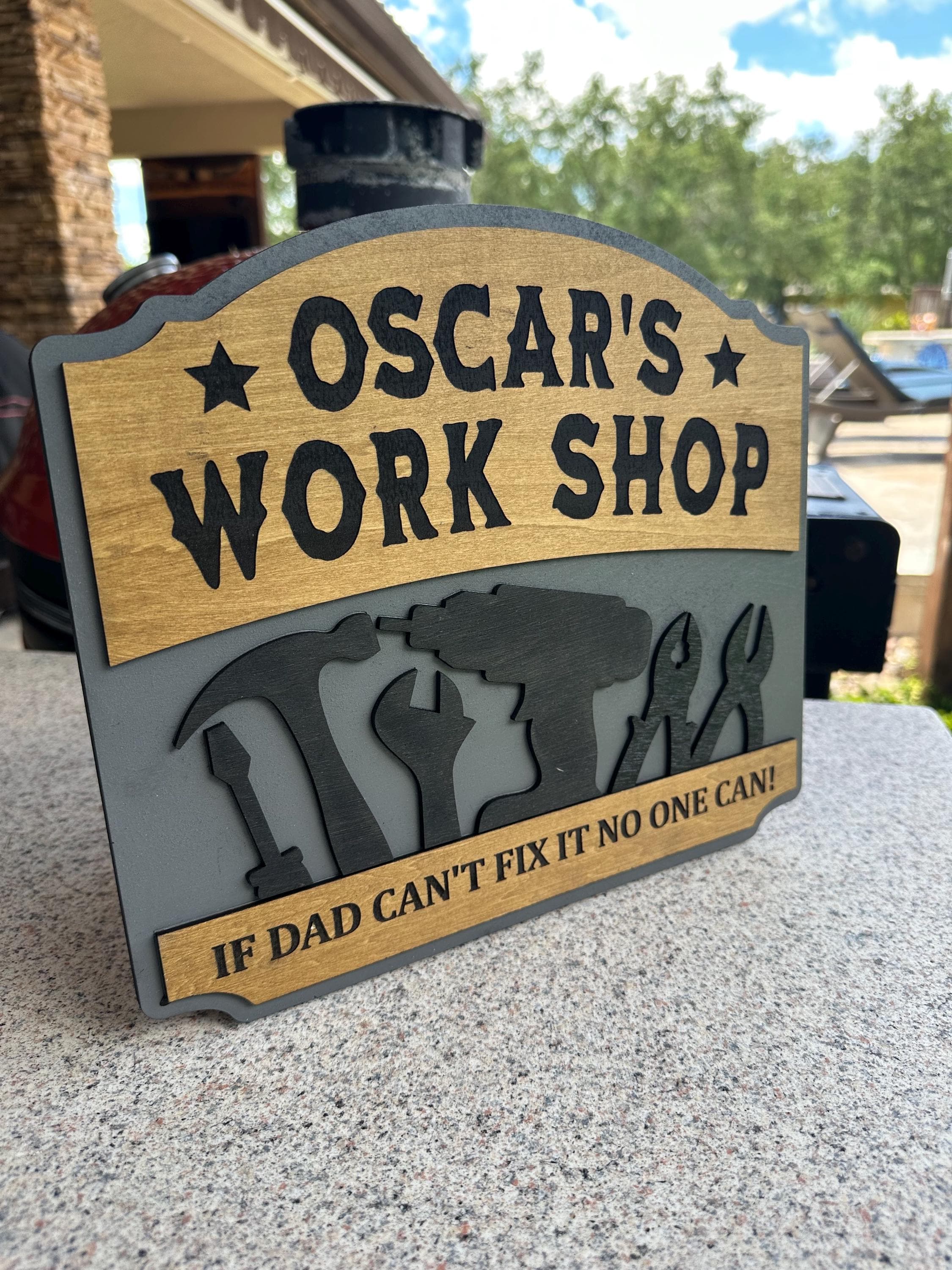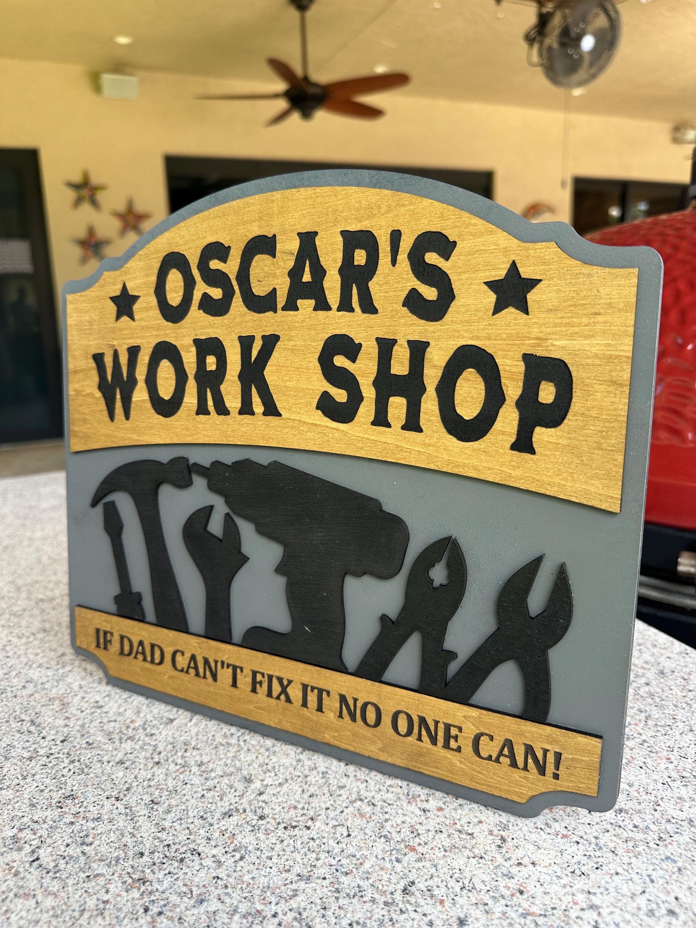 Transform your dad's workspace with a personalized workshop sign! Choose your favorite color, custom text, special message, and size for a truly unique gift. Each sign is 100% handcrafted from real wood, ensuring durability and charm. Perfect for Father's Day, birthdays, or just because! Make his workshop feel like home with a customized touch. Order now and create a memorable piece that he'll cherish forever!